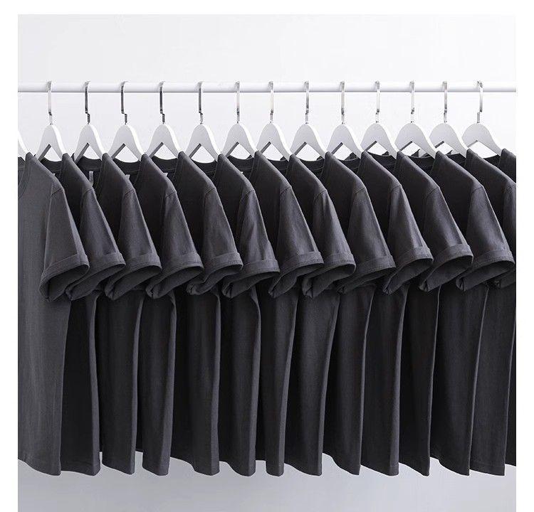 400g 헤비 더블 원사 퓨어 코튼 남성용 반소매 티셔츠 두껍고 불투명 한 반소매 조커 남성용 반소매 티셔츠 여름스토어 가기