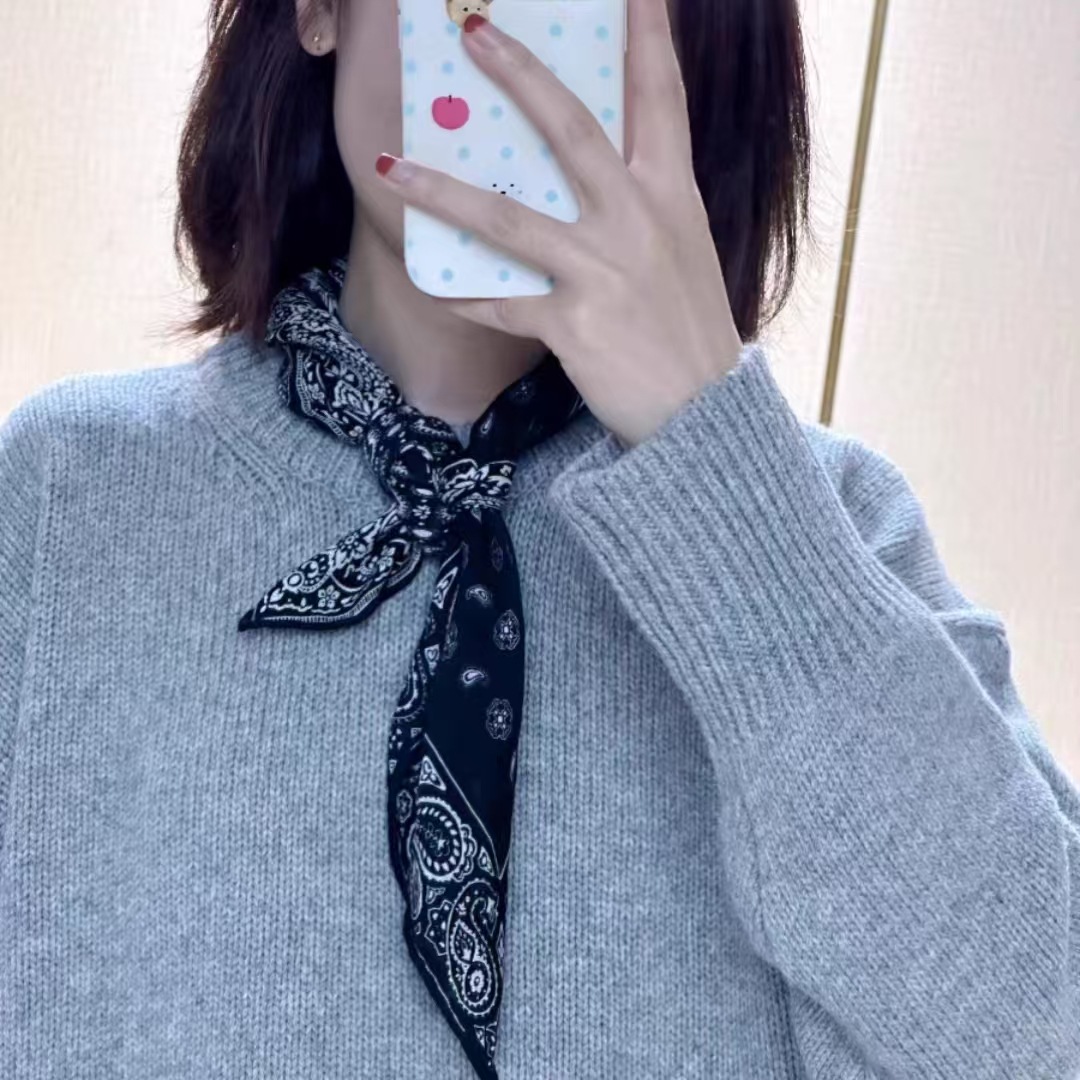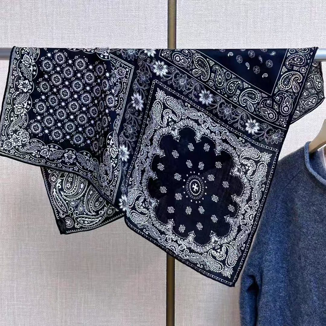• [흑백 캐슈넛 약 63*63cm] 실크 울 스퀘어 스카프