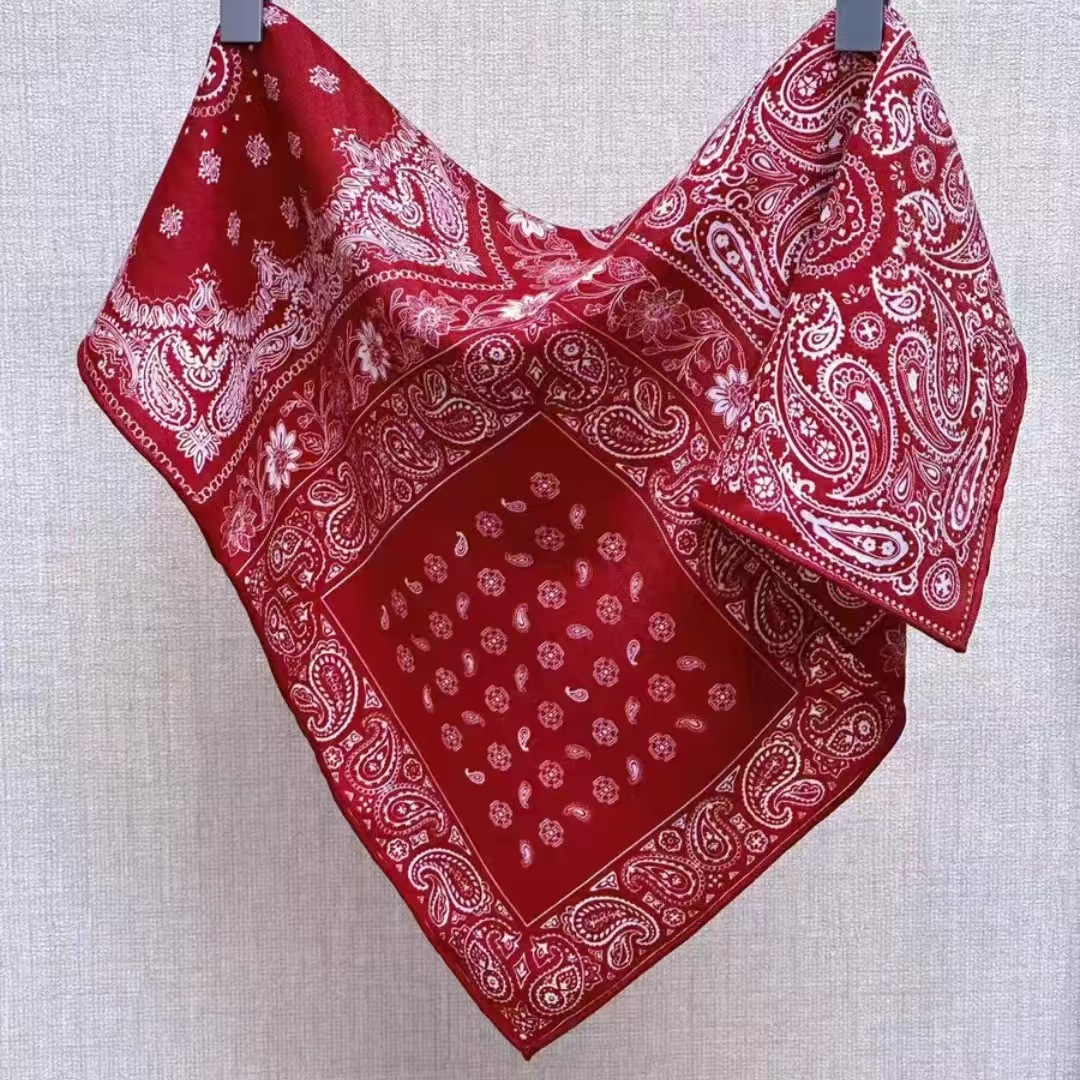 • [빨간색과 흰색 캐슈넛 약 63*63cm] 실크 울 스퀘어 스카프