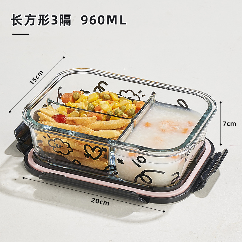 • 직사각형 3칸 960ml [윤두오 도시락 고붕규산유리]