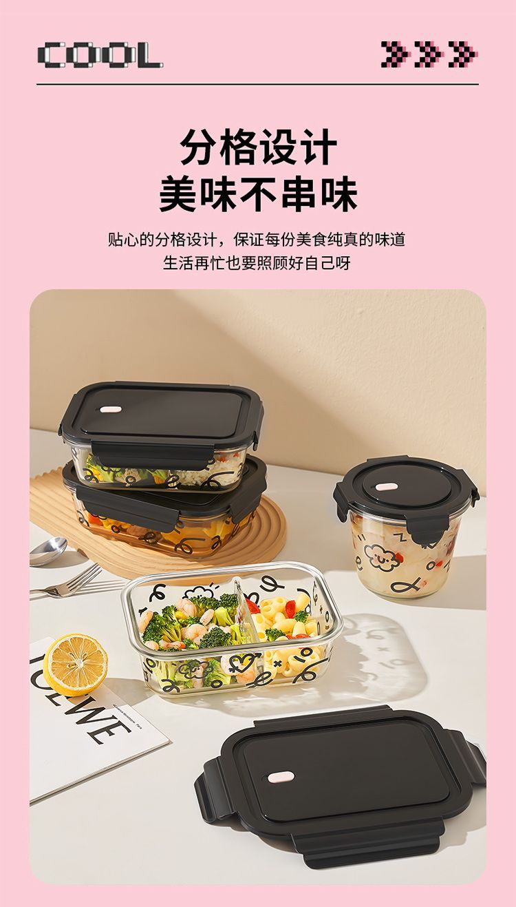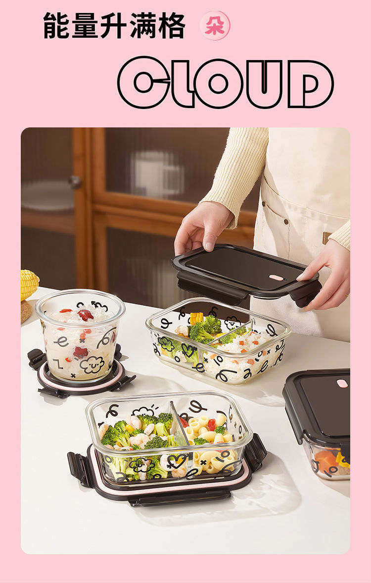 전자 레인지 가열 유리 도시락 2025 새로운 식품 등급 신선한 유지 그릇 업무 도시락 과일 도시락스토어 가기
