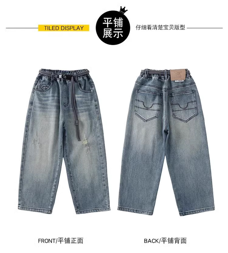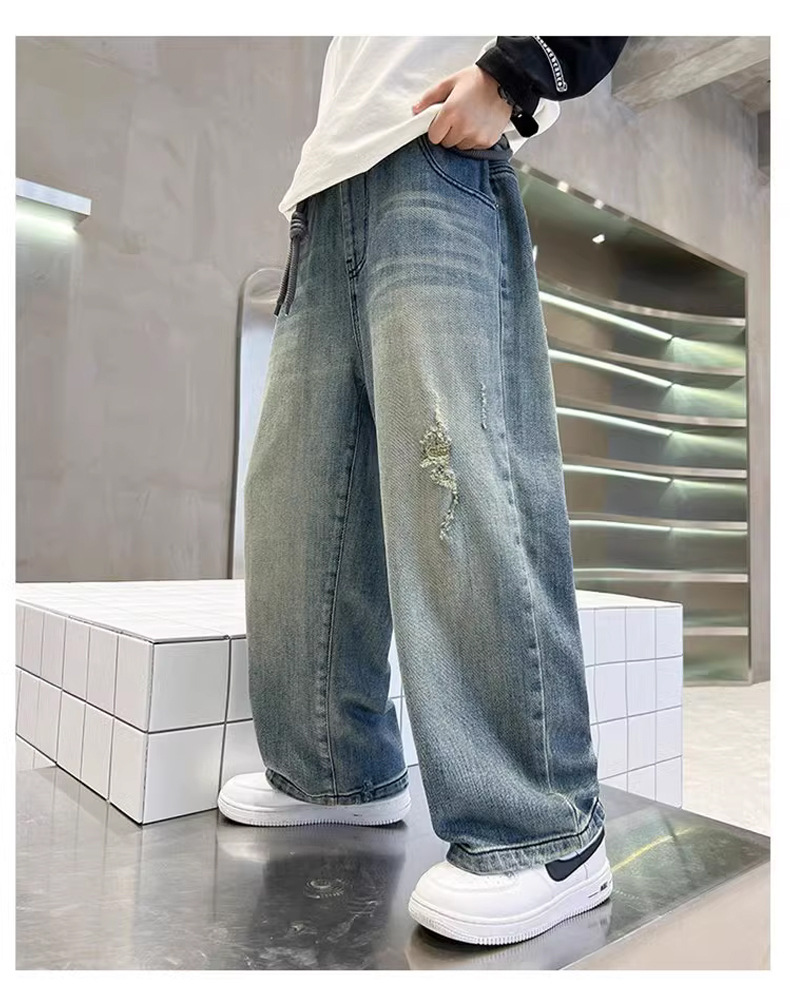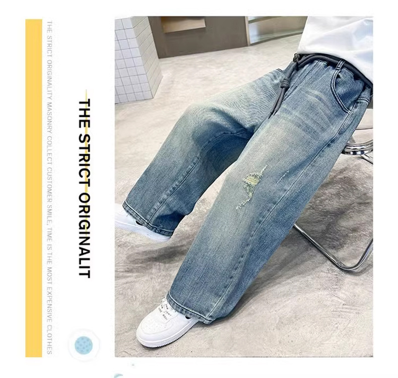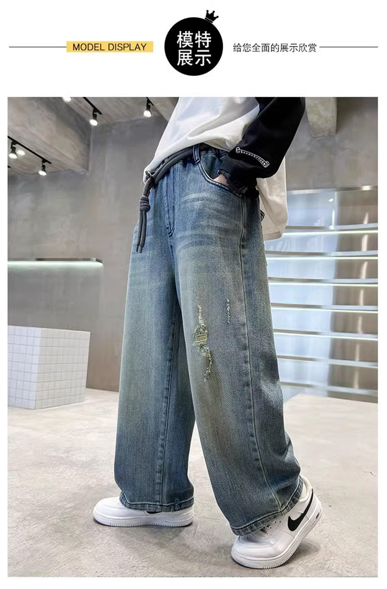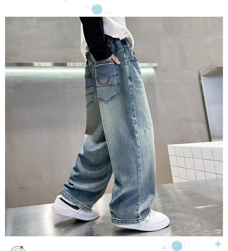 어린이 소년 봄 바지 2025 새로운 소년 청바지 큰 어린이 봄과 가을 스포츠 바지스토어 가기