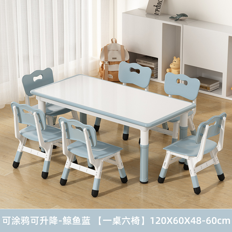 • 120*60 화이트 고래 블루(테이블 1개, 의자 6개)