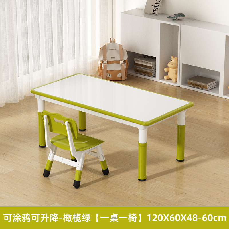 • 120*60 흰색 표면 올리브 그린(테이블 1개, 의자 1개)