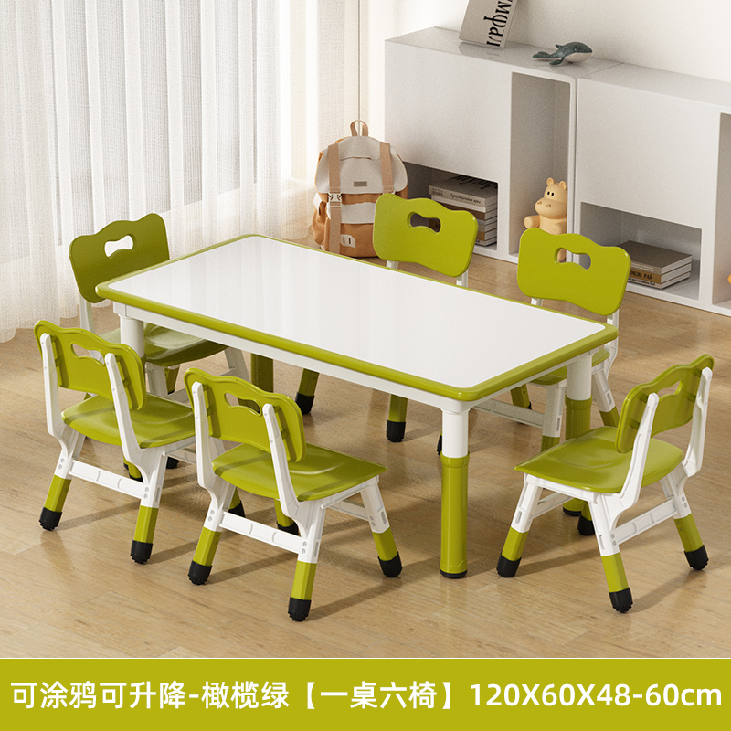 • 120*60 흰색 표면 올리브 그린(테이블 1개, 의자 6개)