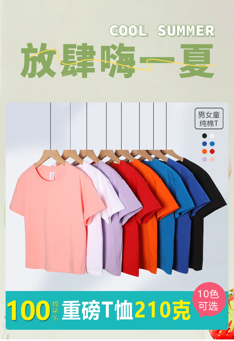헤비웨이트 220g 아동용 티셔츠, 라운드넥, 루즈핏, 반팔, 야외 활동복, 유치원 교복, 단색 공연복
