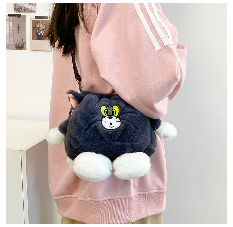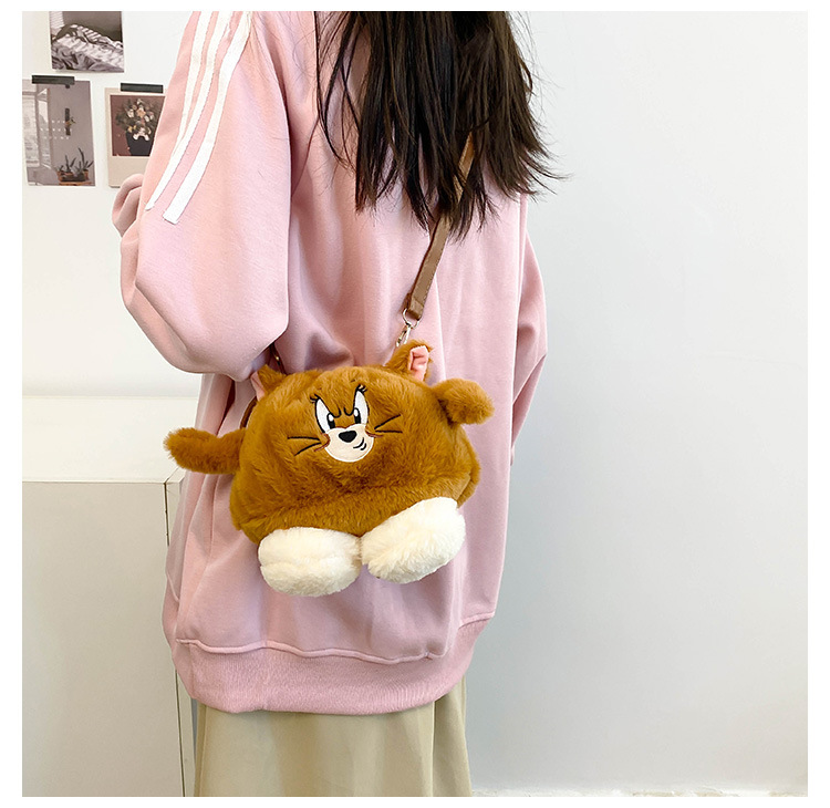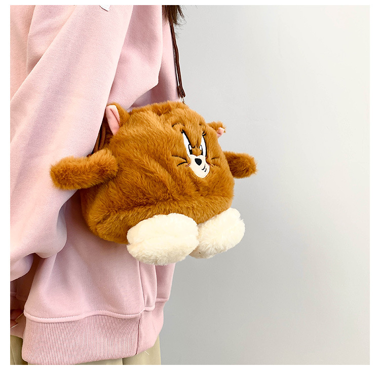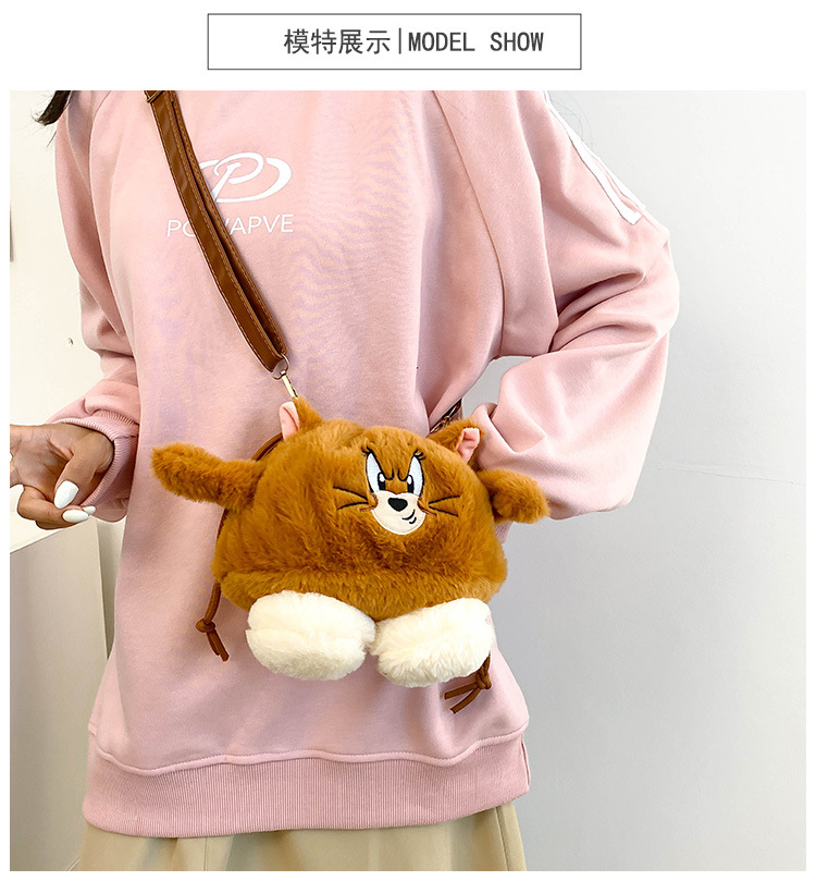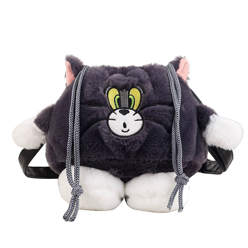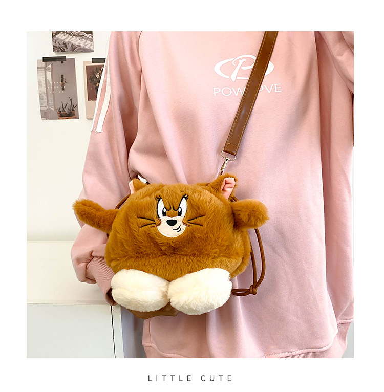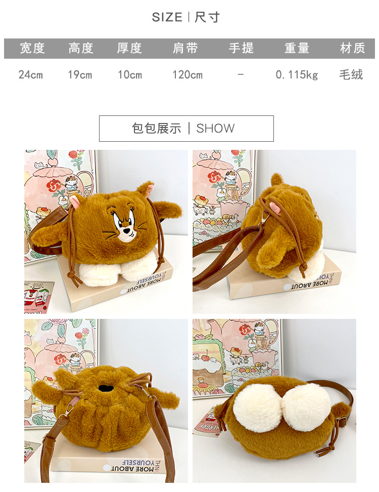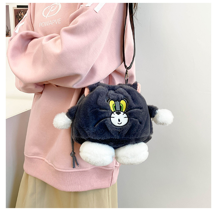 새로운 귀여운 만화 드로스트링 봉제 크로스 백 여성 유행 올 매치 소녀 스타일 어깨 가방 다기능 보관 가방