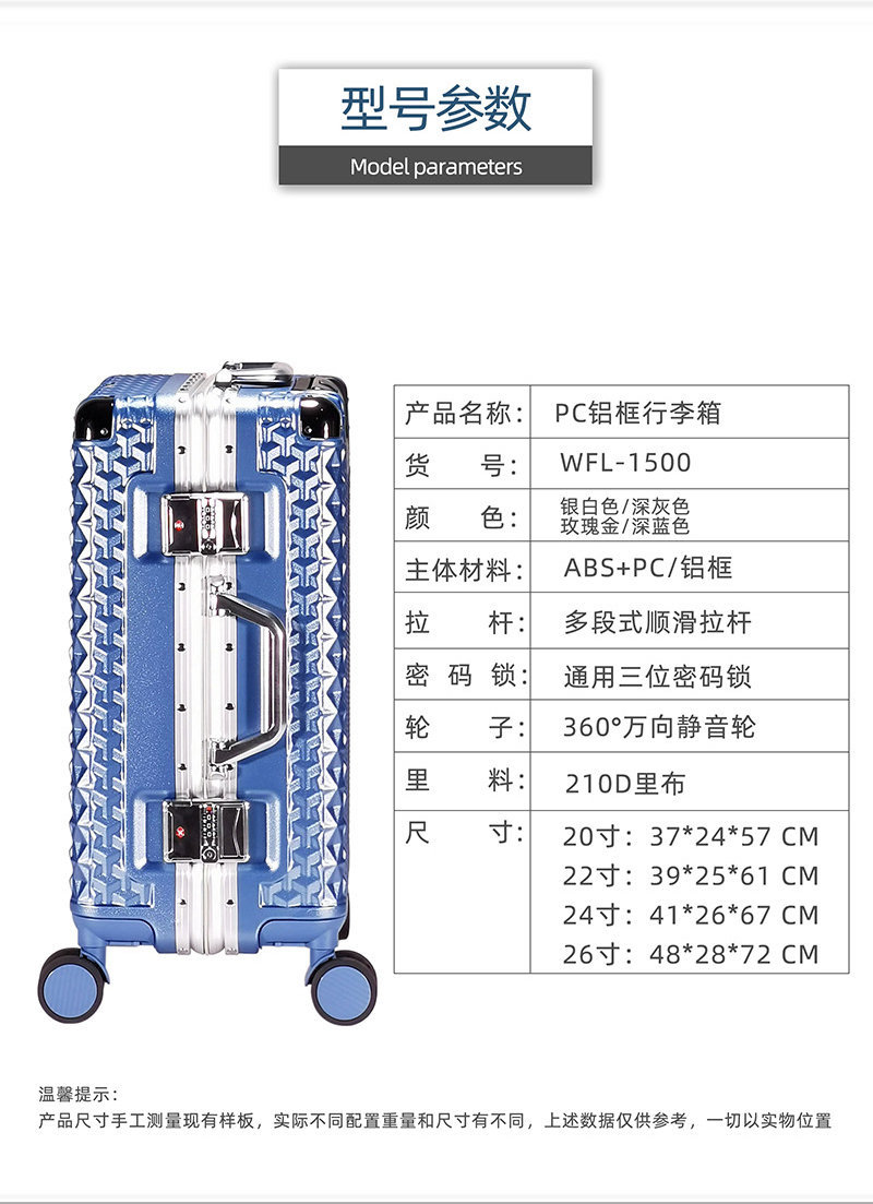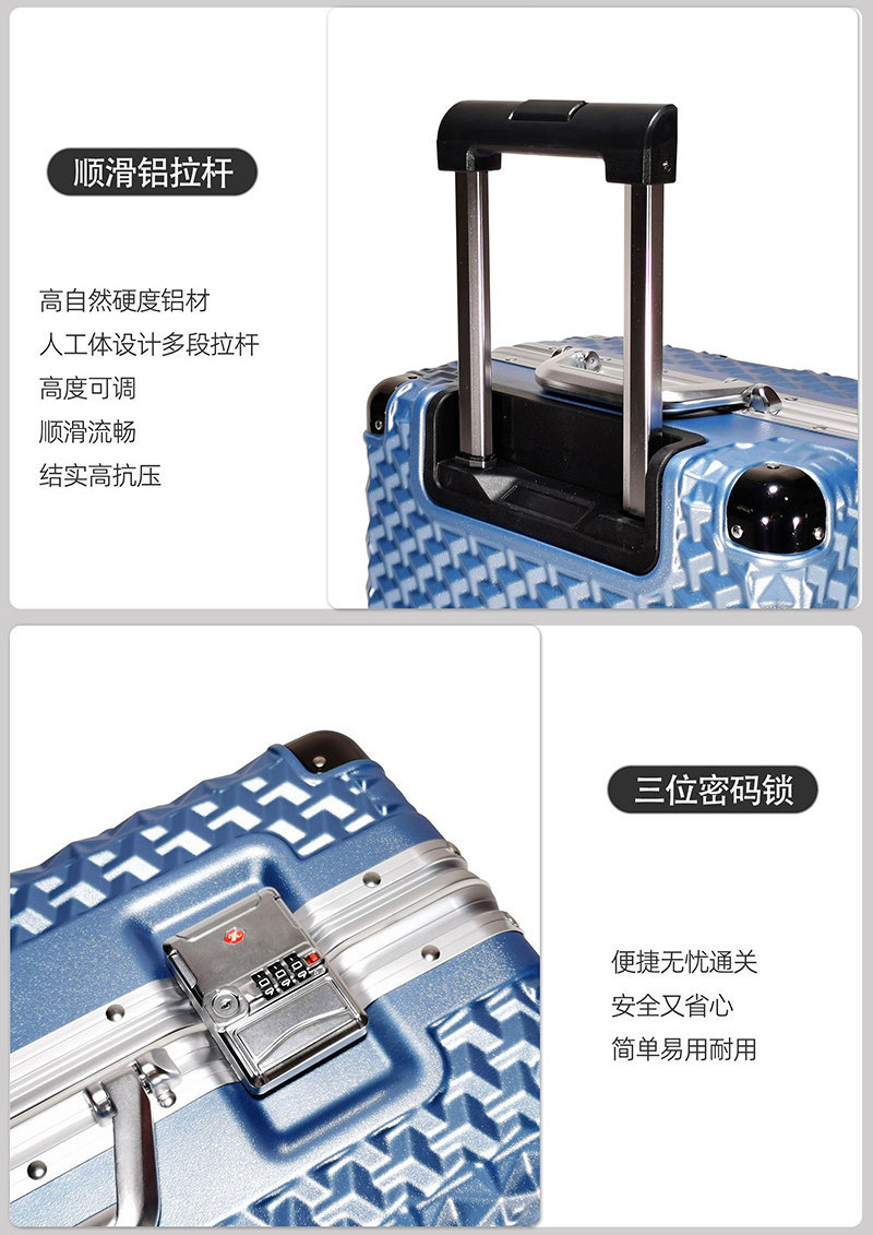 Wenfeng 가방 마름모꼴 젖빛 PC 알루미늄 프레임 20inch 세관 잠금 보드 케이스 알루미늄 트롤리 자동 범용 휠