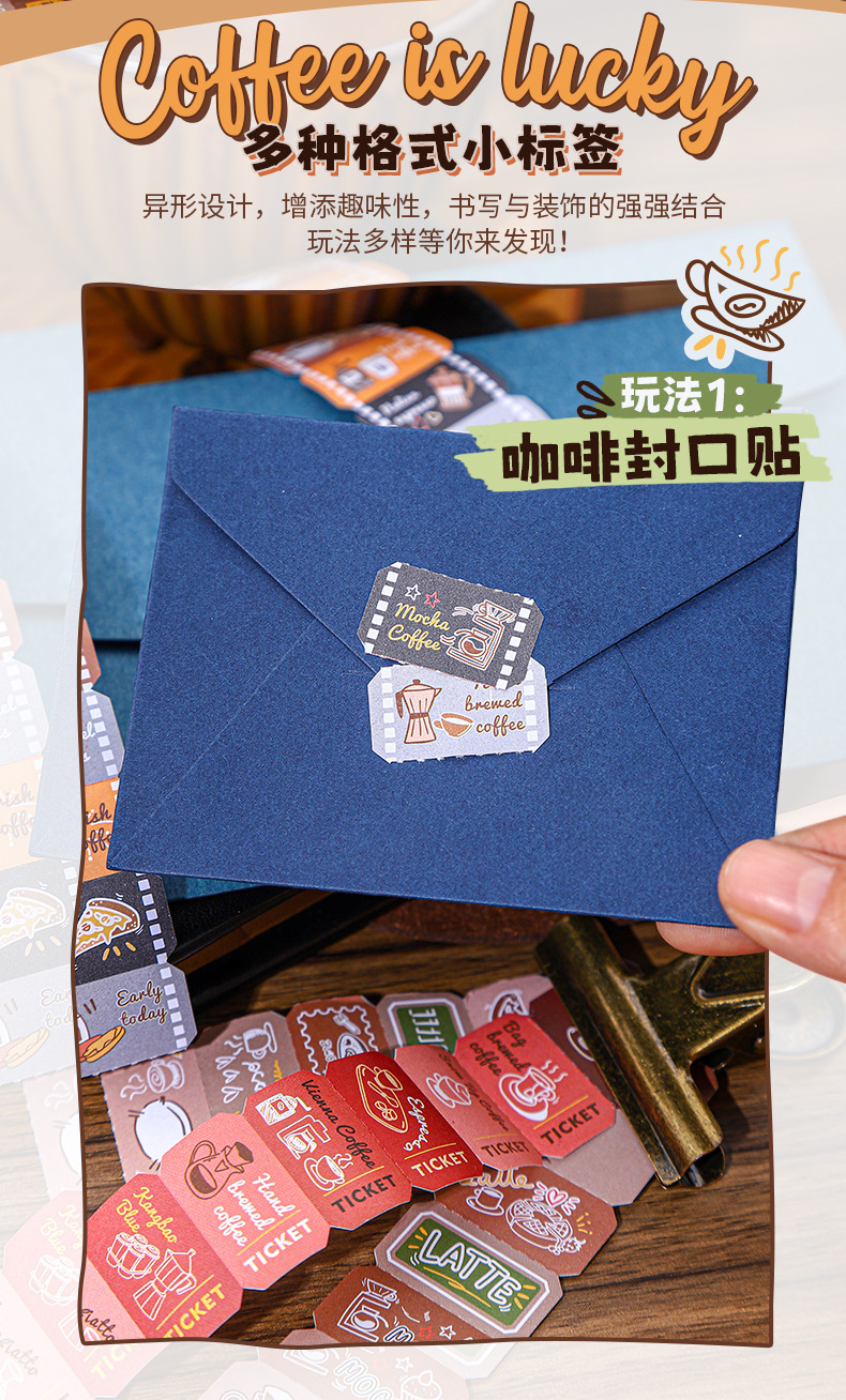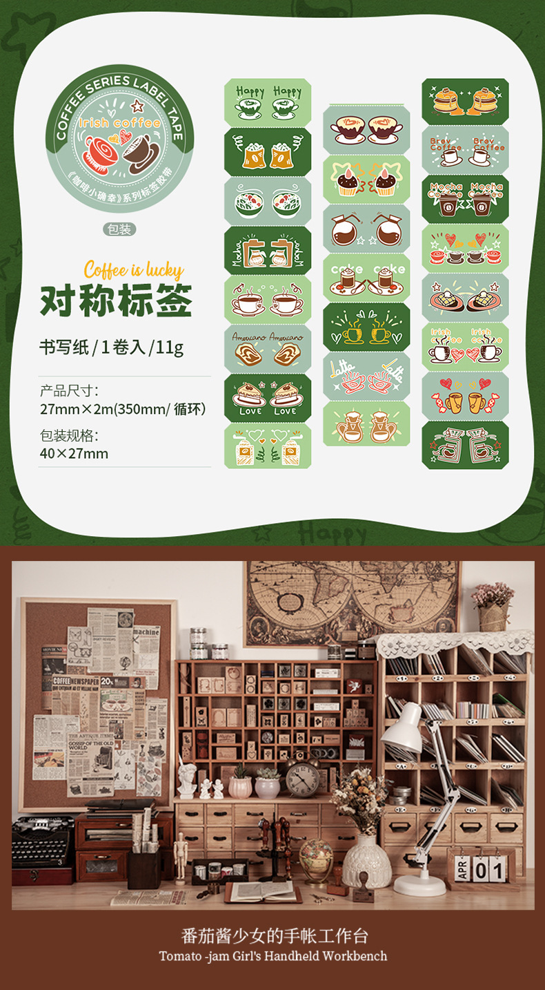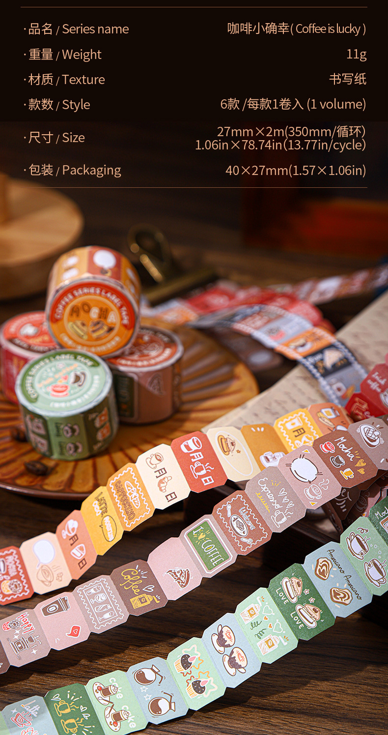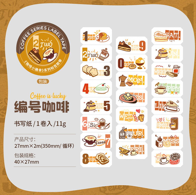 케첩 소녀 라벨 테이프 커피 작은 행운의 시리즈 복고풍 다기능 쓰기 가능한 손 계정 소재 스티커