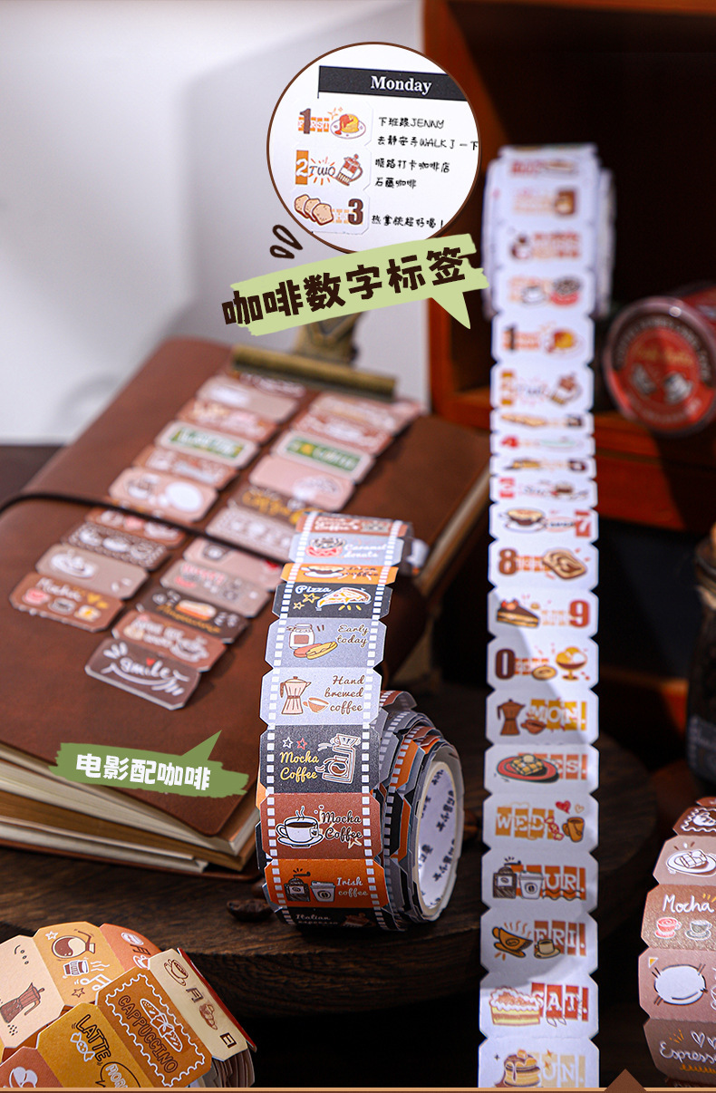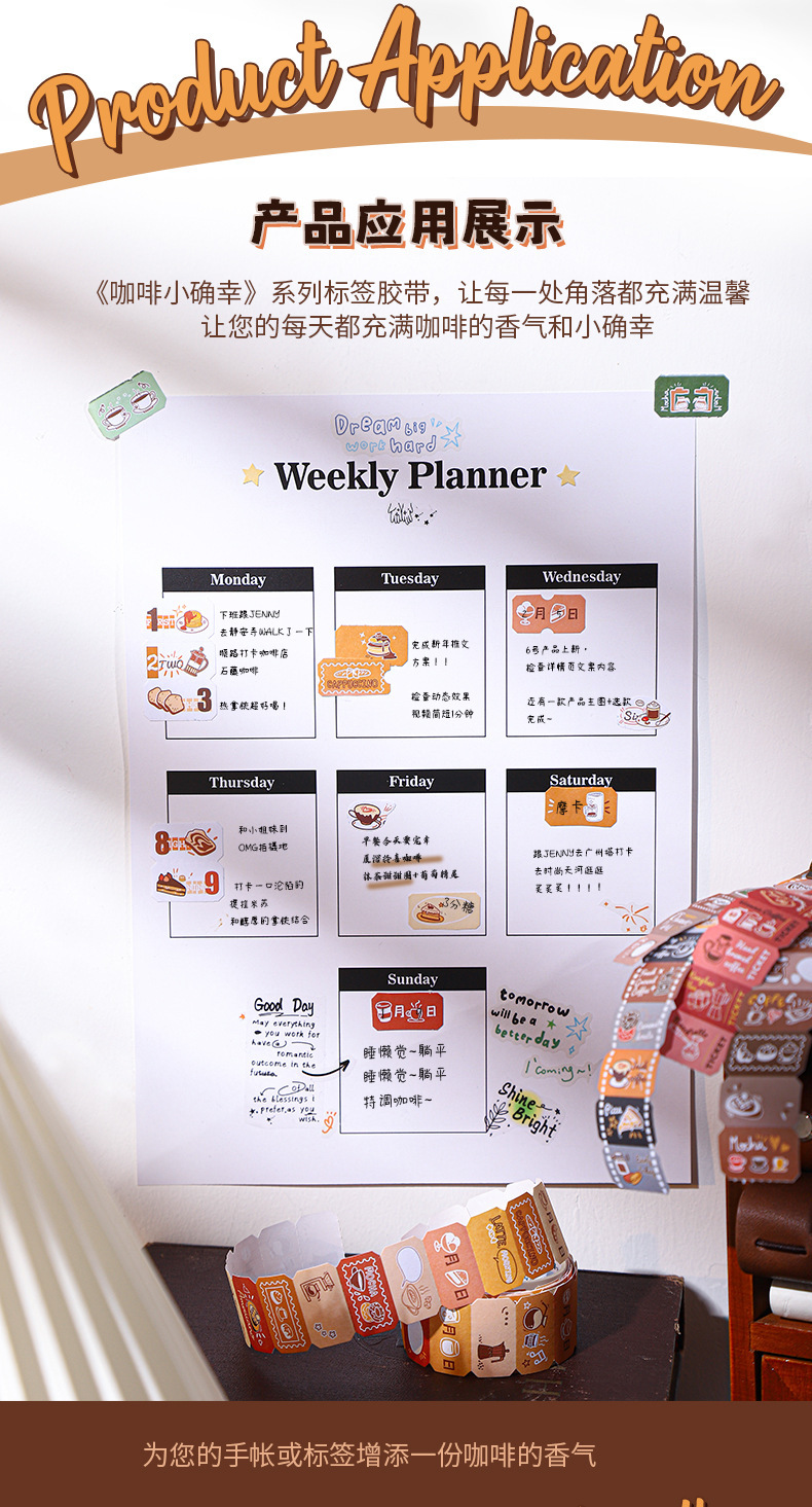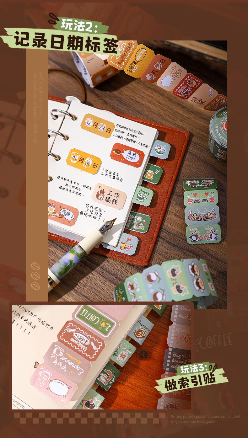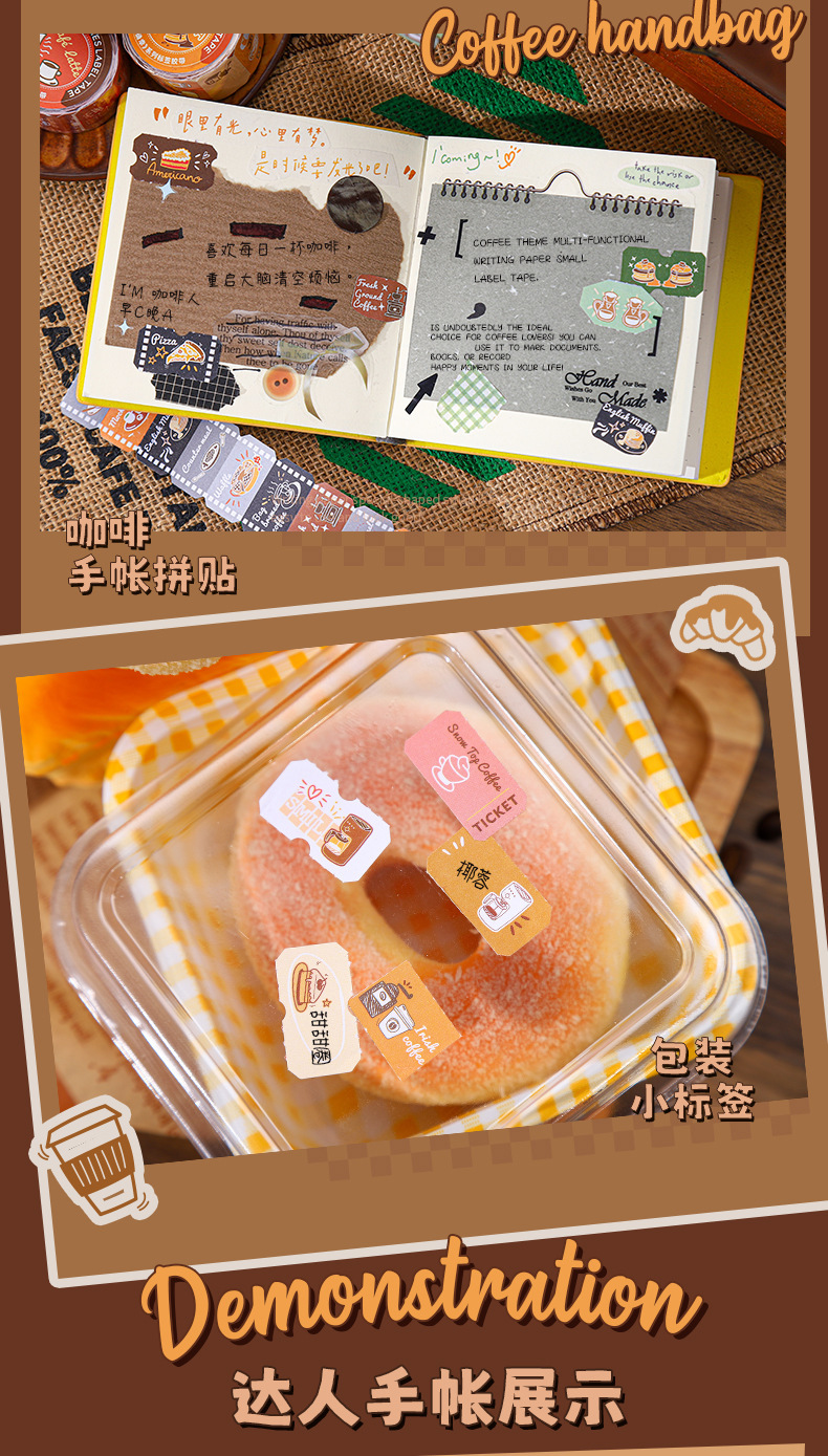 케첩 소녀 라벨 테이프 커피 작은 행운의 시리즈 복고풍 다기능 쓰기 가능한 손 계정 소재 스티커