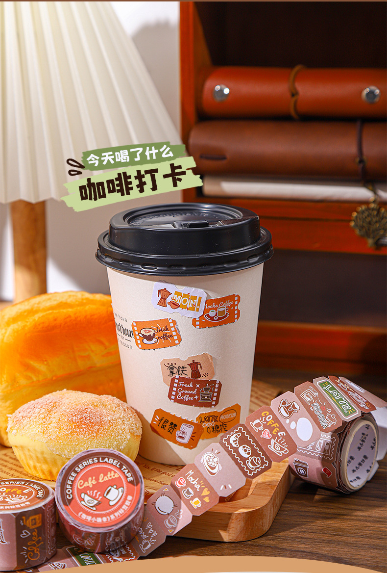 케첩 소녀 라벨 테이프 커피 작은 행운의 시리즈 복고풍 다기능 쓰기 가능한 손 계정 소재 스티커스토어 가기