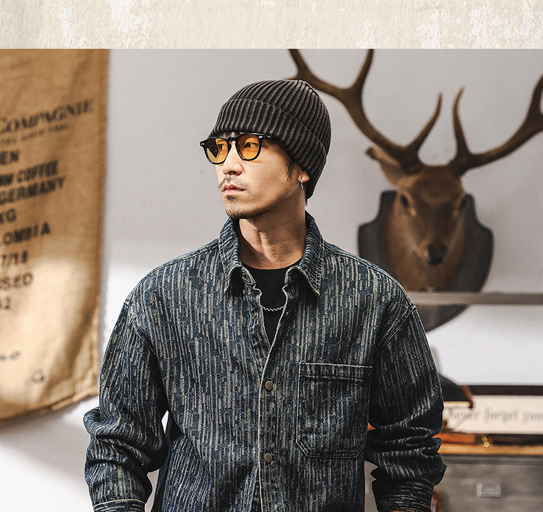 고급 자카드 데님 셔츠 남자 봄 2025 새로운 미국 복고풍 느슨한 셔츠 재킷 남자의 봄과 가을