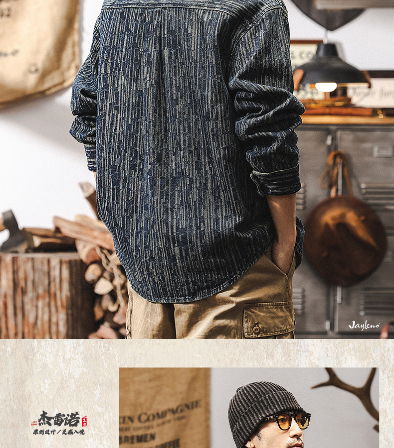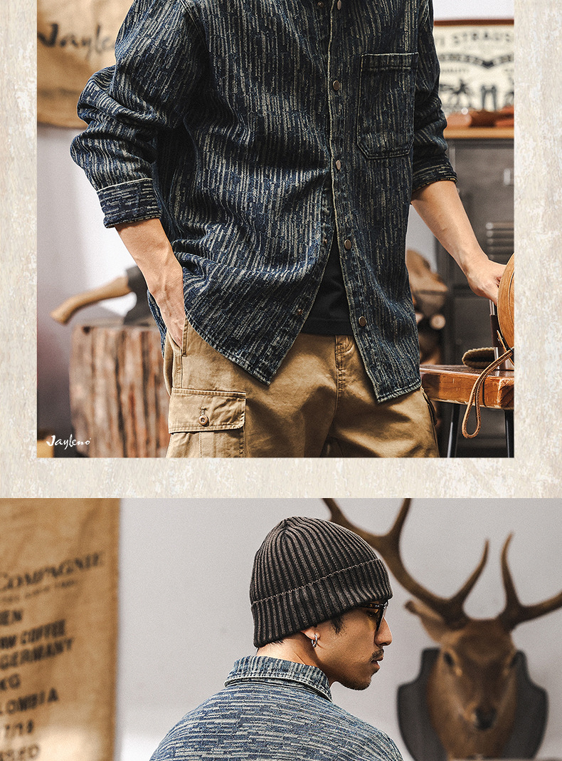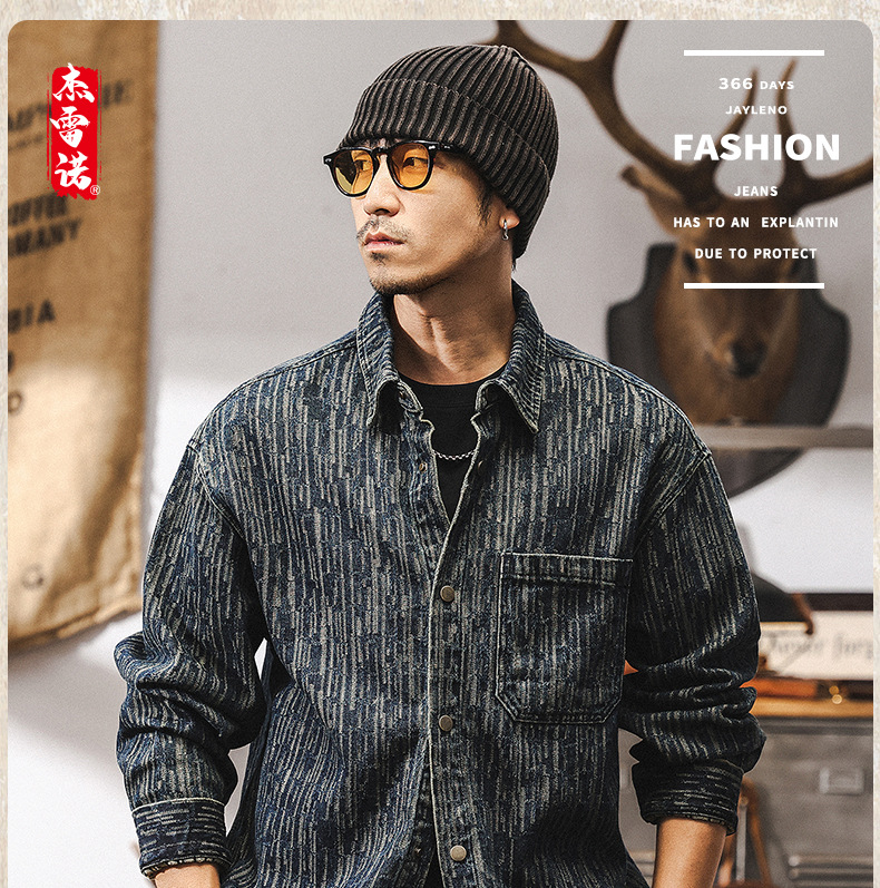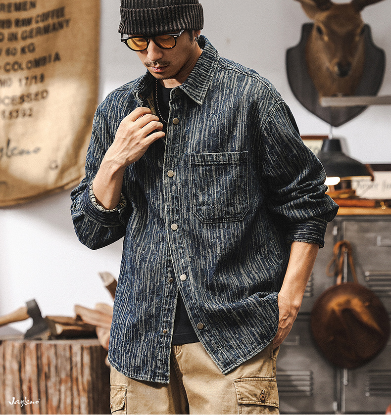 고급 자카드 데님 셔츠 남자 봄 2025 새로운 미국 복고풍 느슨한 셔츠 재킷 남자의 봄과 가을스토어 가기