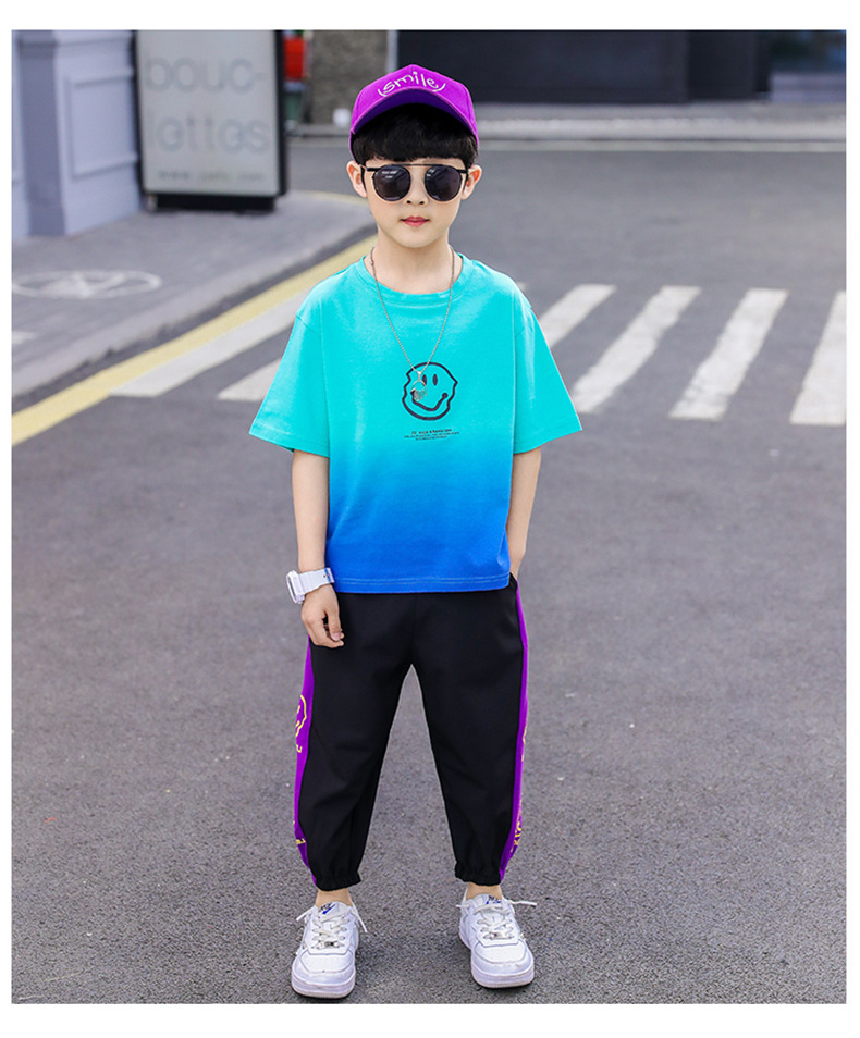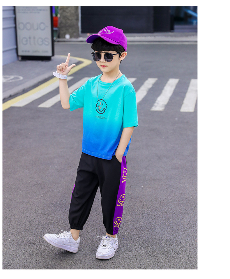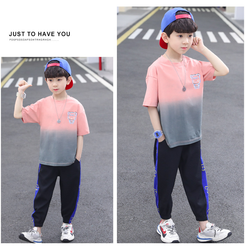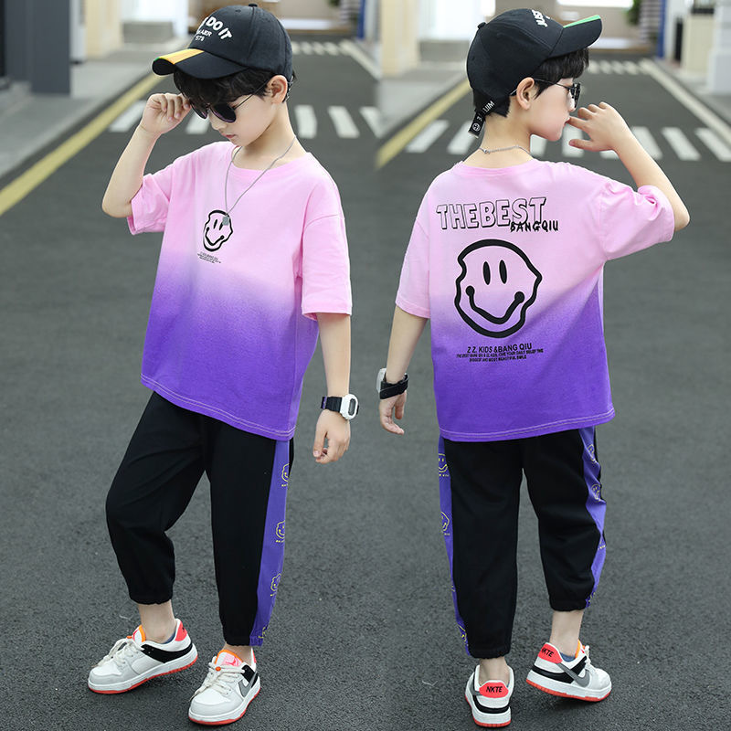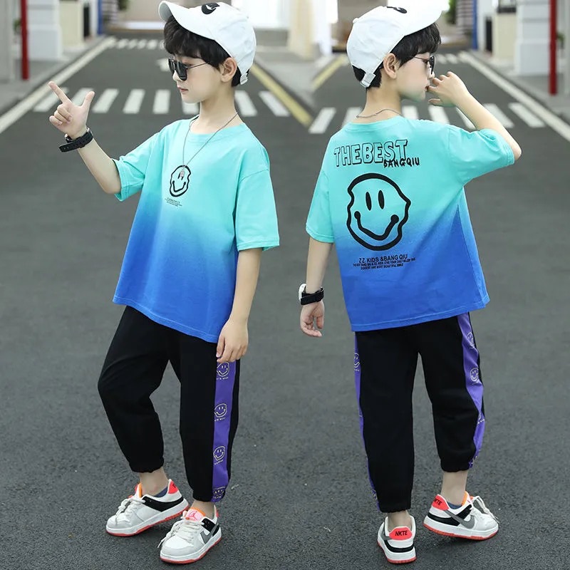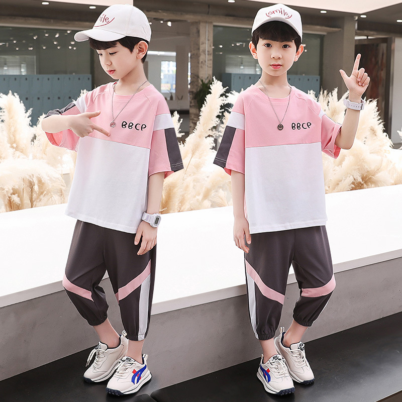 어린이 착용 소년 여름 착용 세트 2025 새로운 여름 잘 생긴 중대형 어린이 얇은 반팔 운동복 투피스 유행 세트