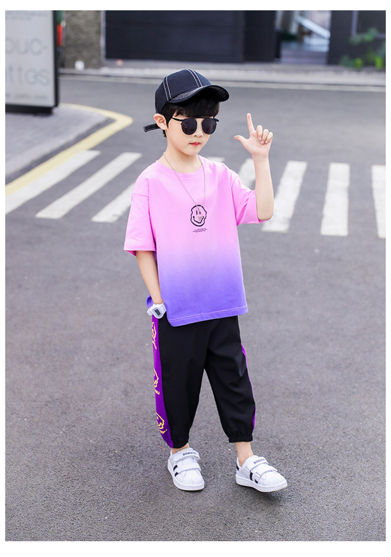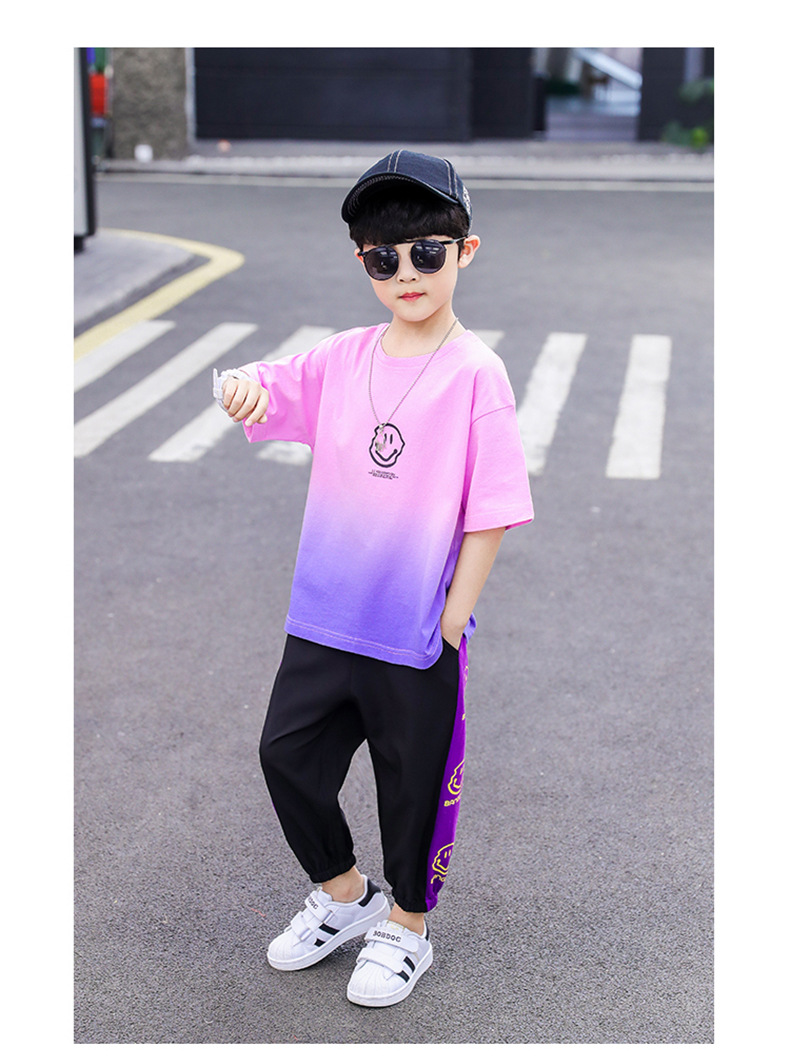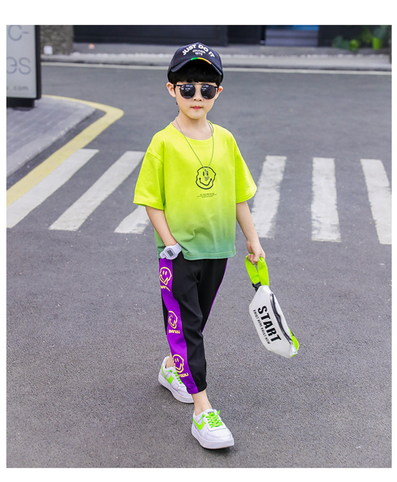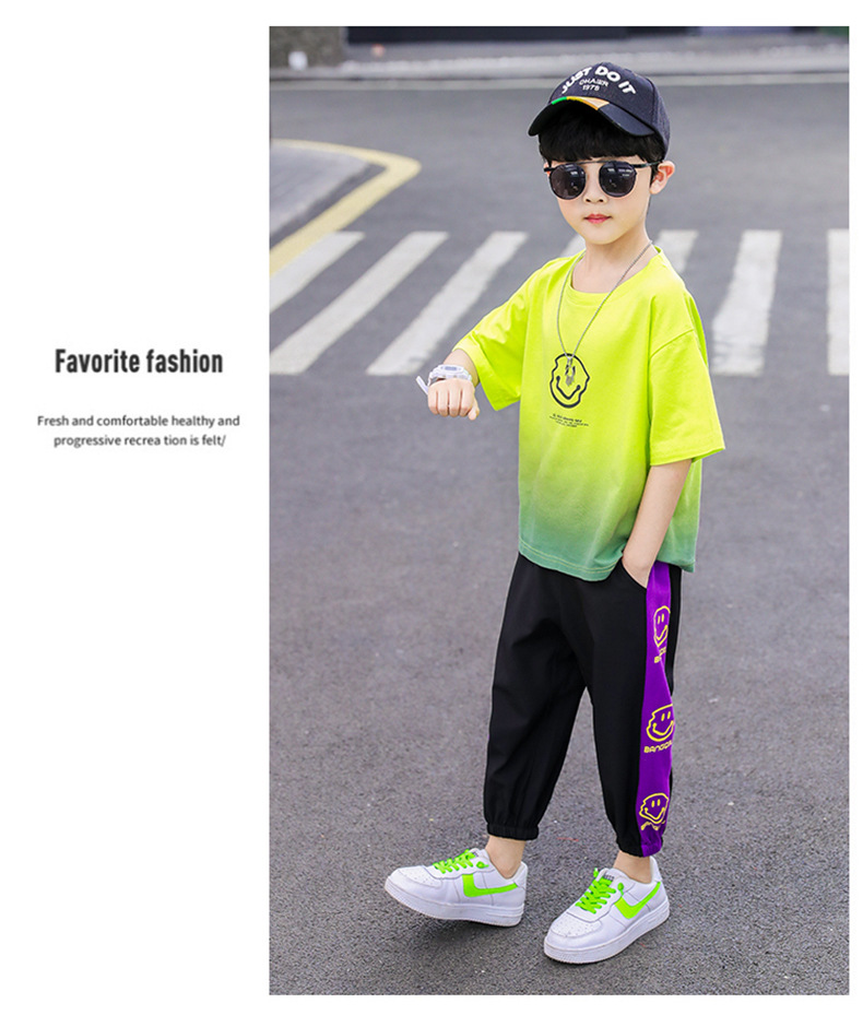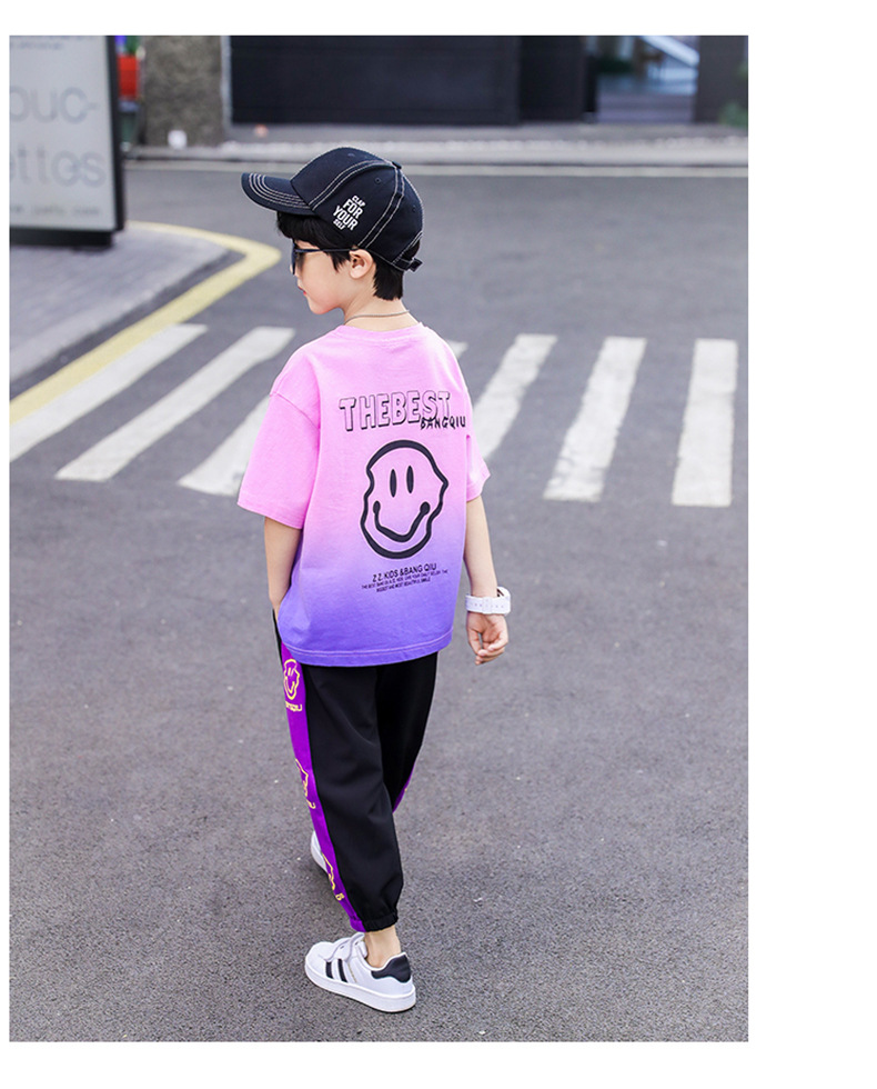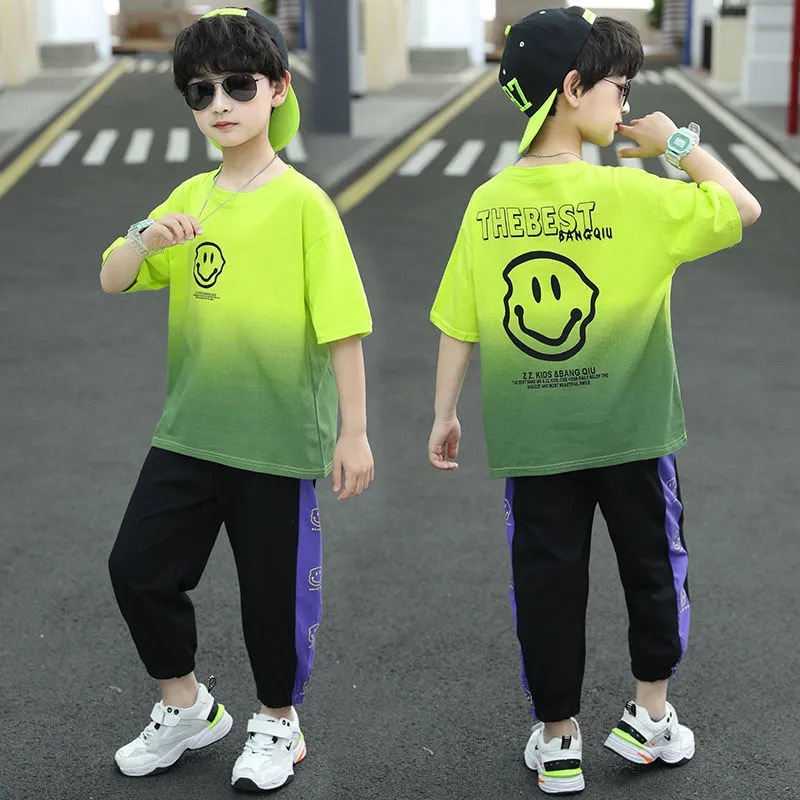 어린이 착용 소년 여름 착용 세트 2025 새로운 여름 잘 생긴 중대형 어린이 얇은 반팔 운동복 투피스 유행 세트