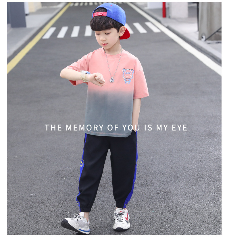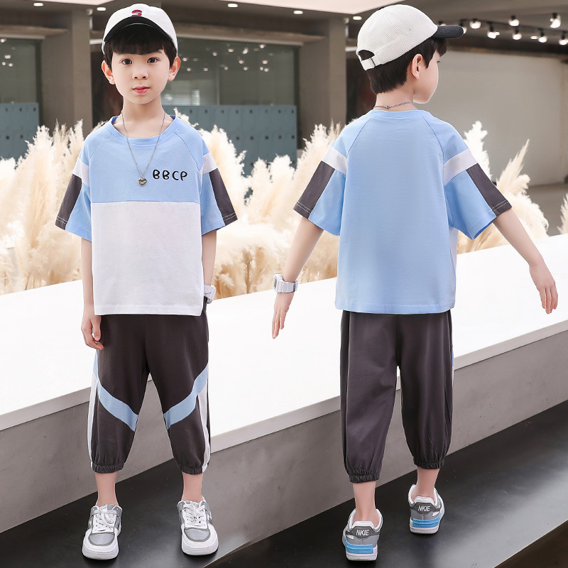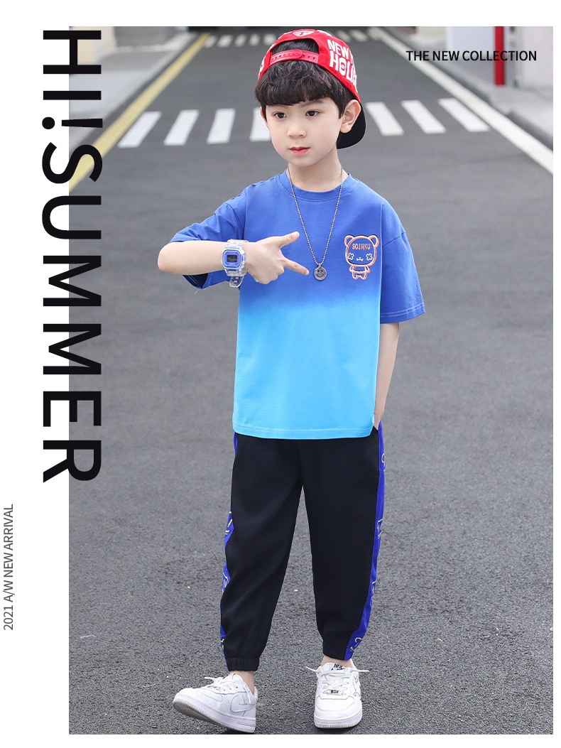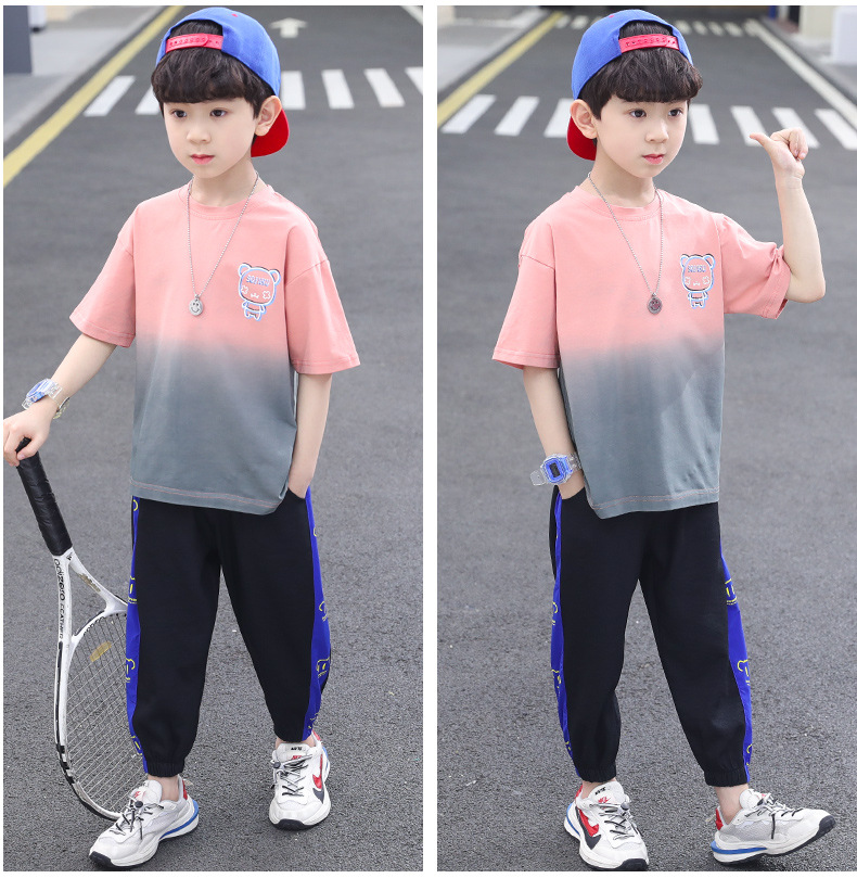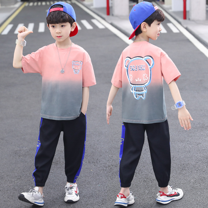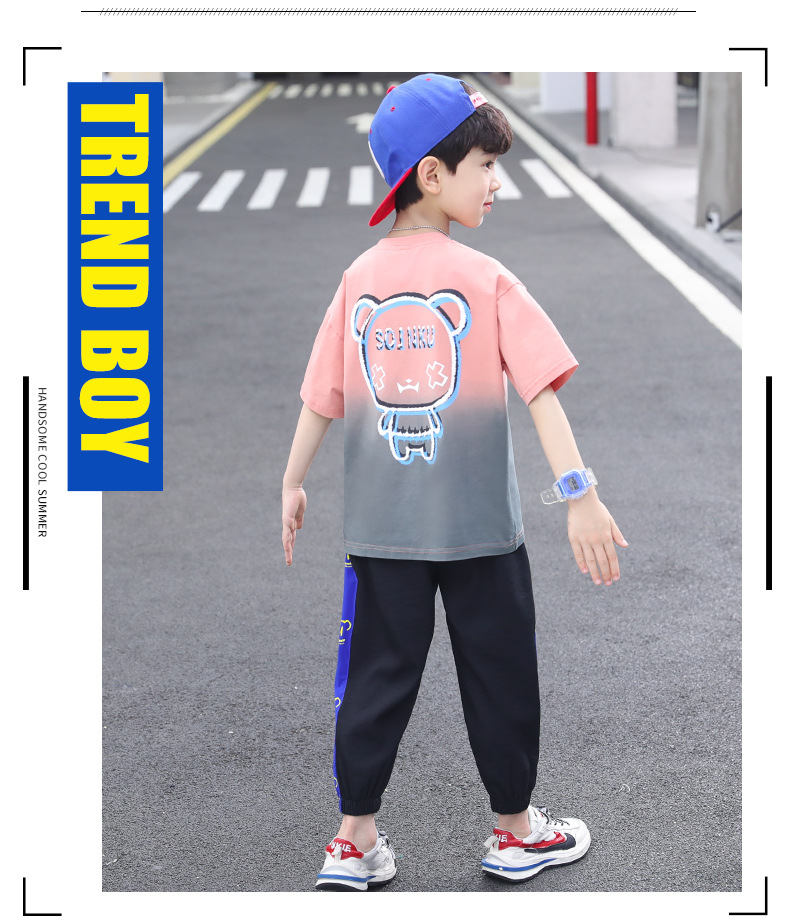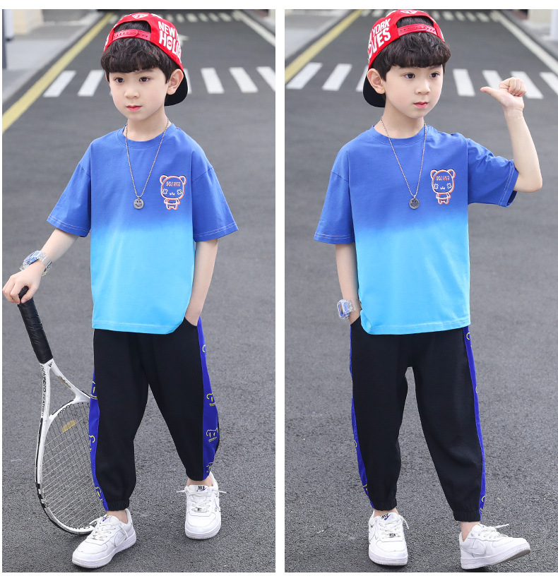 어린이 착용 소년 여름 착용 세트 2025 새로운 여름 잘 생긴 중대형 어린이 얇은 반팔 운동복 투피스 유행 세트스토어 가기