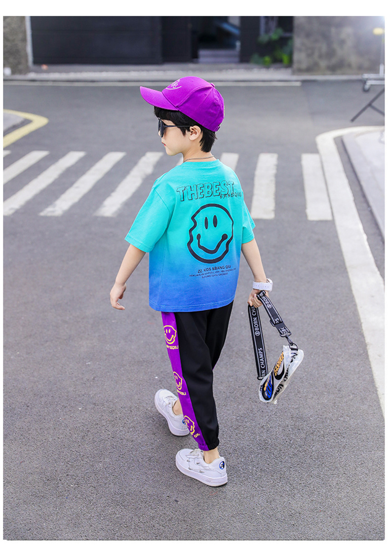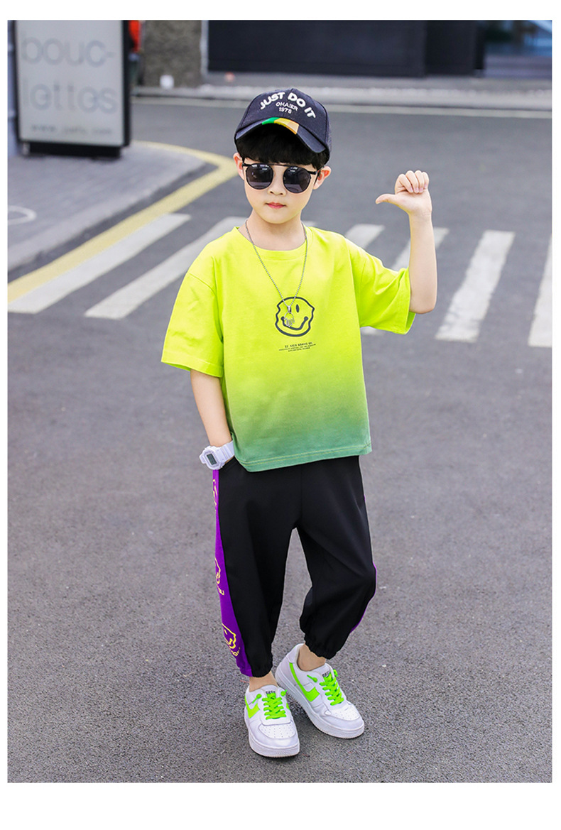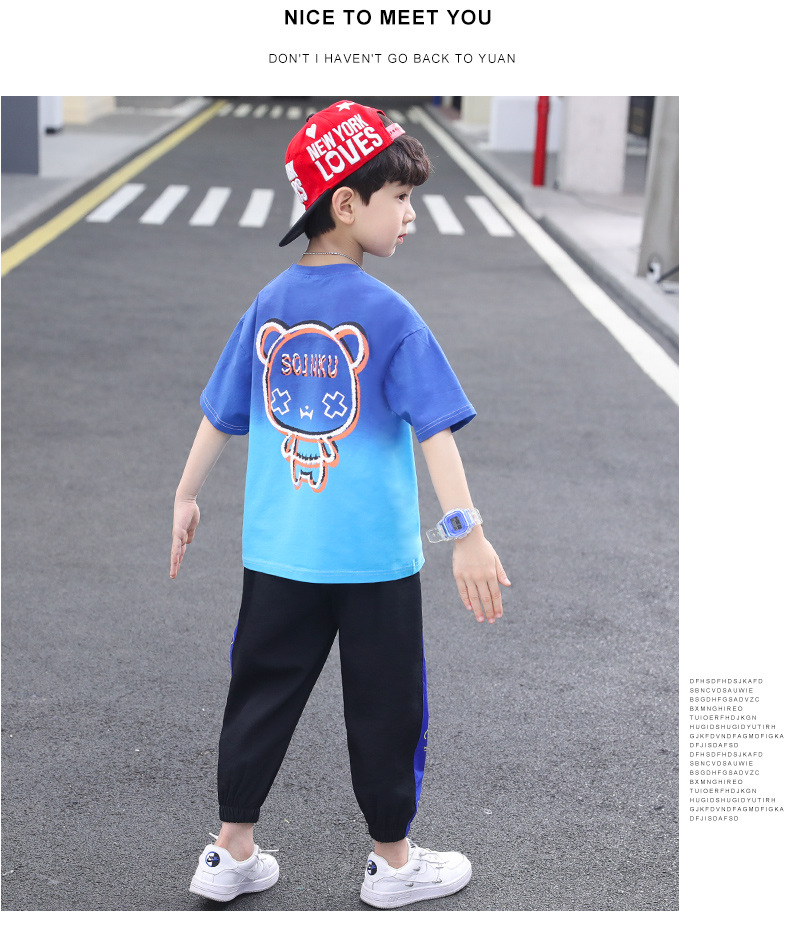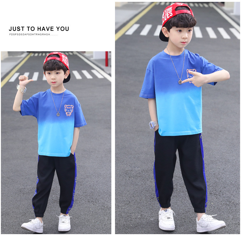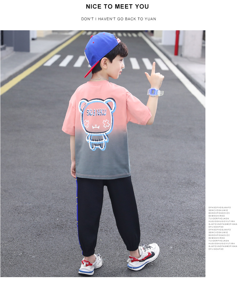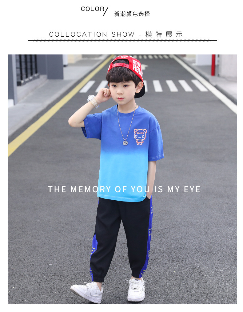 어린이 착용 소년 여름 착용 세트 2025 새로운 여름 잘 생긴 중대형 어린이 얇은 반팔 운동복 투피스 유행 세트스토어 가기