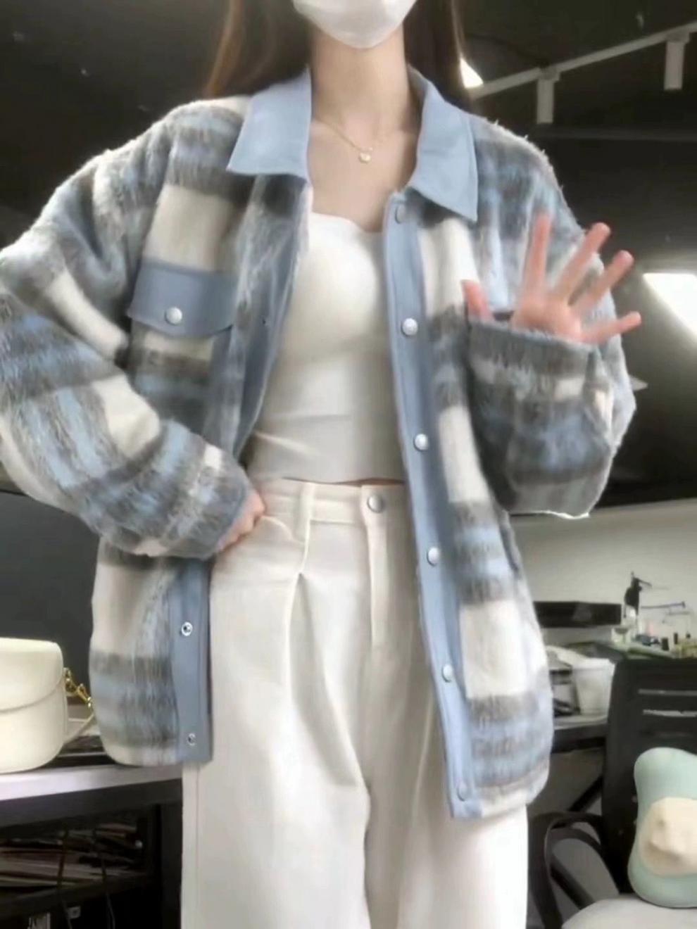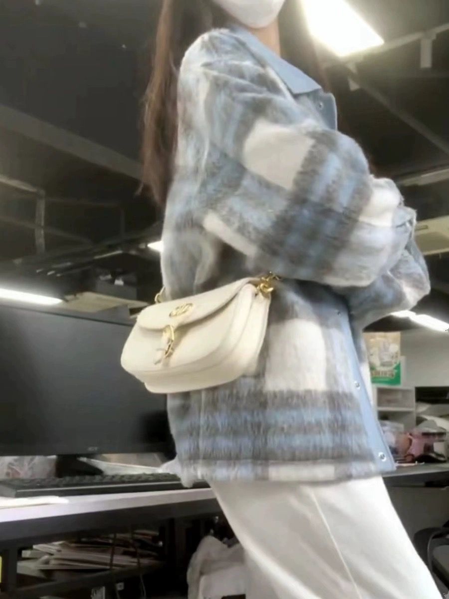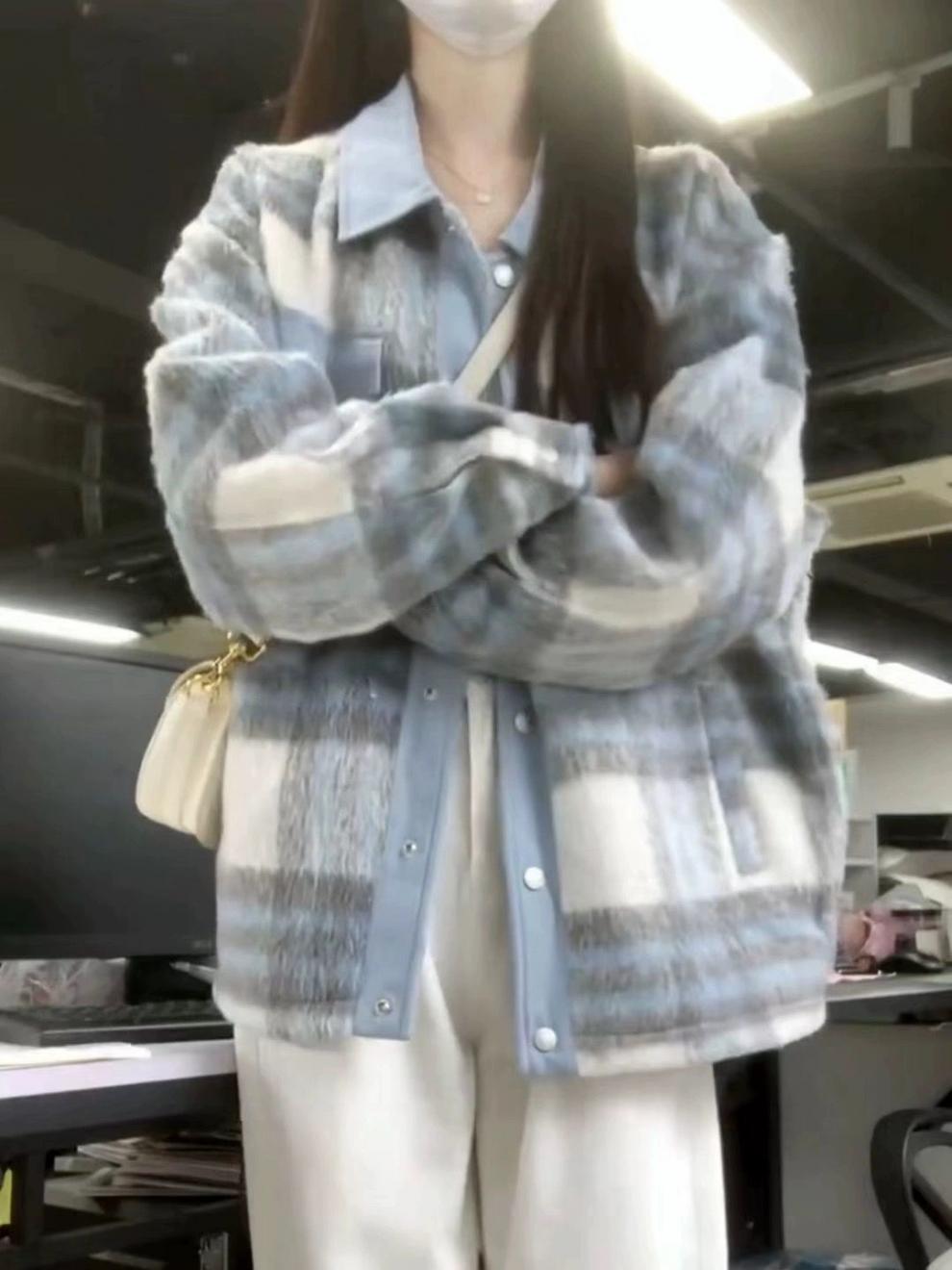 2024 새로운 스타일 작은 하이 엔드 소녀의 봄과 가을 코트 작은 샤넬 스타일 우아한 스키니 체크 무늬 모직 재킷스토어 가기