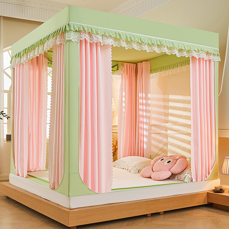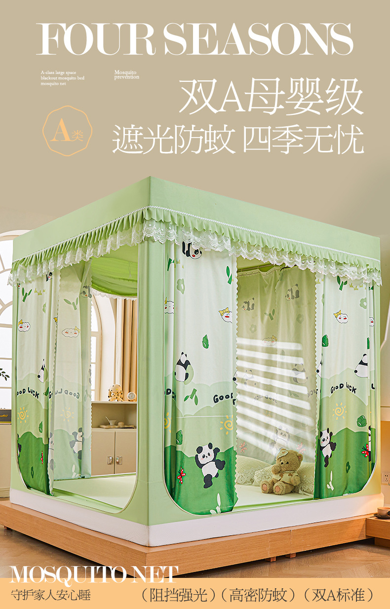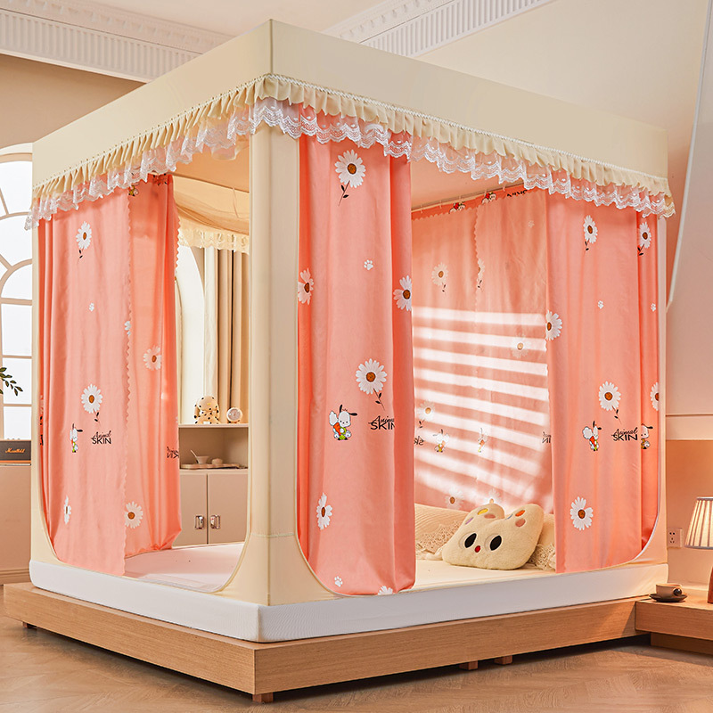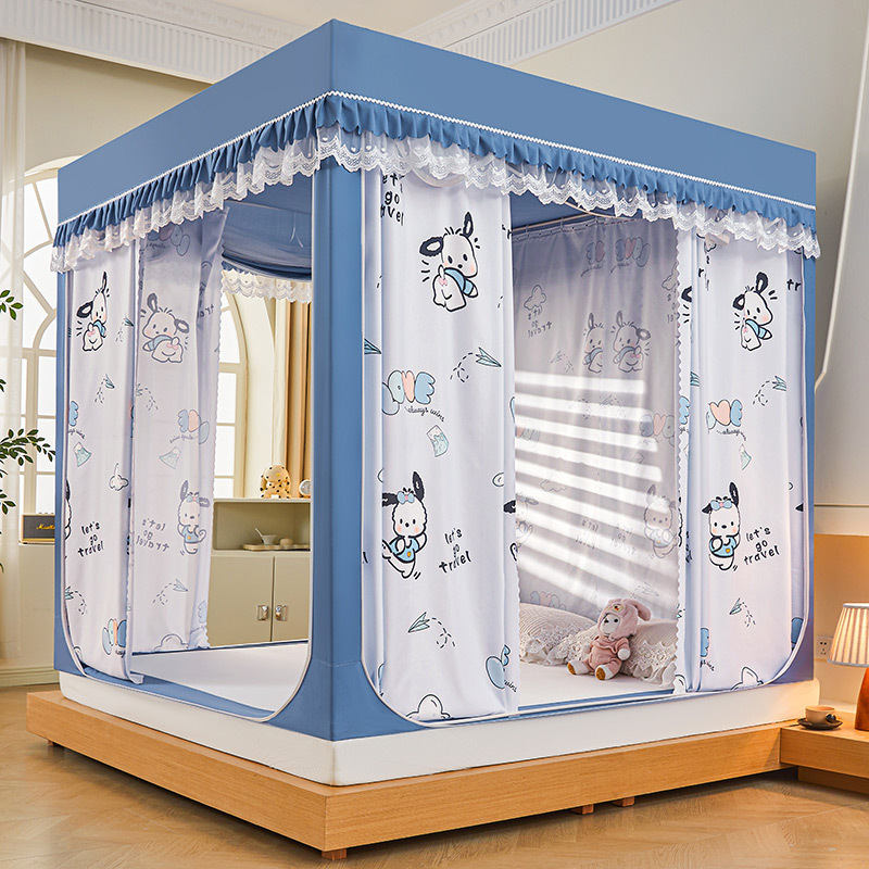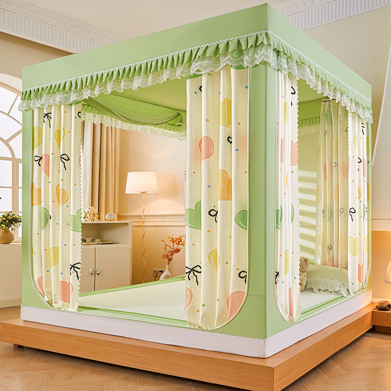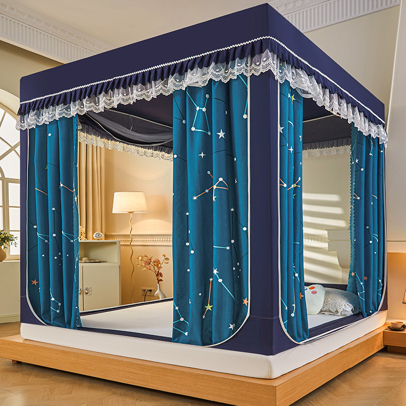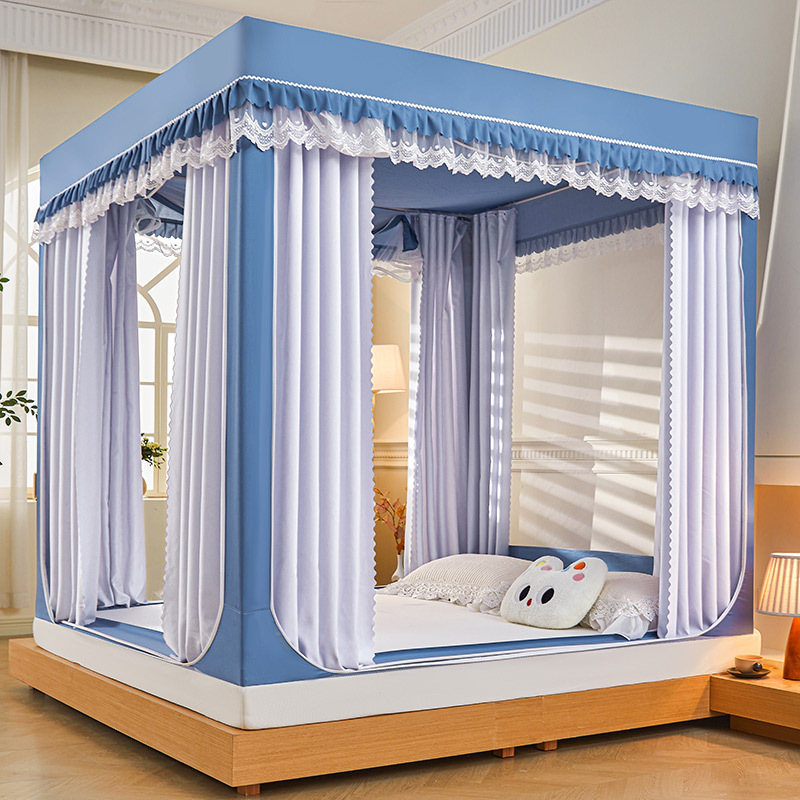 새로운 음영 오사카 인쇄 침대 3 도어 지퍼 모기장 통합 낙상 커튼 모기장 대외 무역 도매스토어 가기