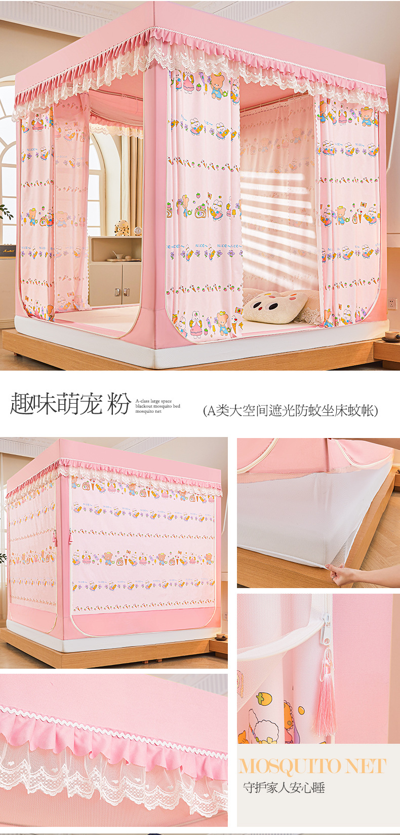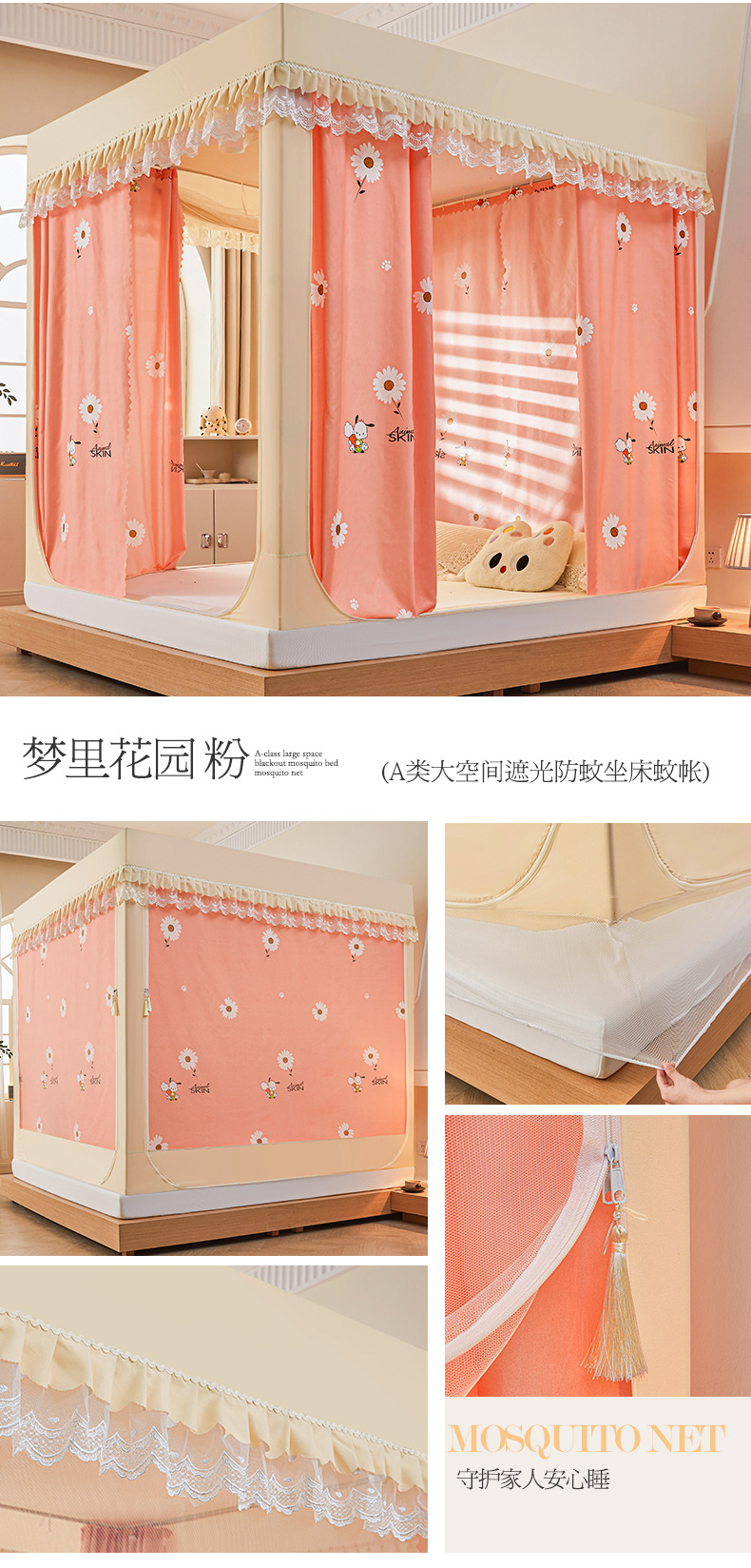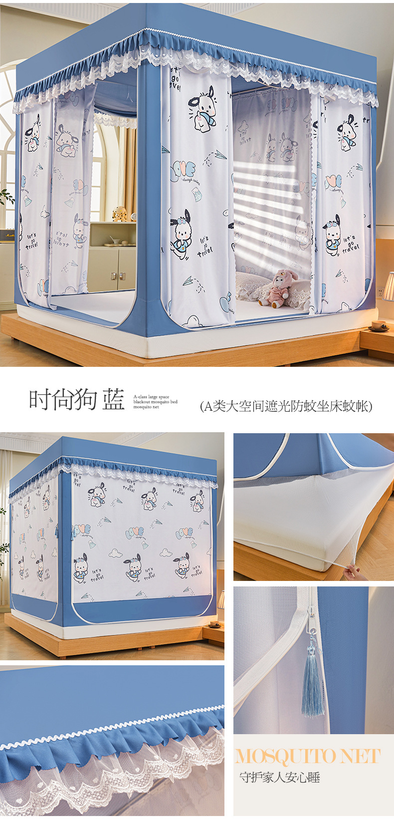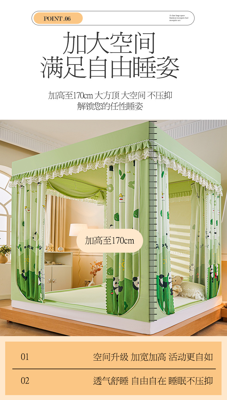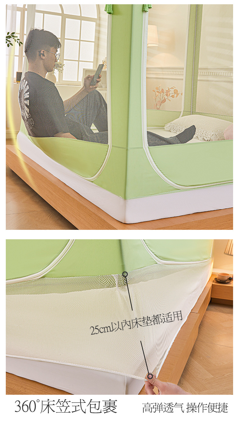 새로운 음영 오사카 인쇄 침대 3 도어 지퍼 모기장 통합 낙상 커튼 모기장 대외 무역 도매스토어 가기