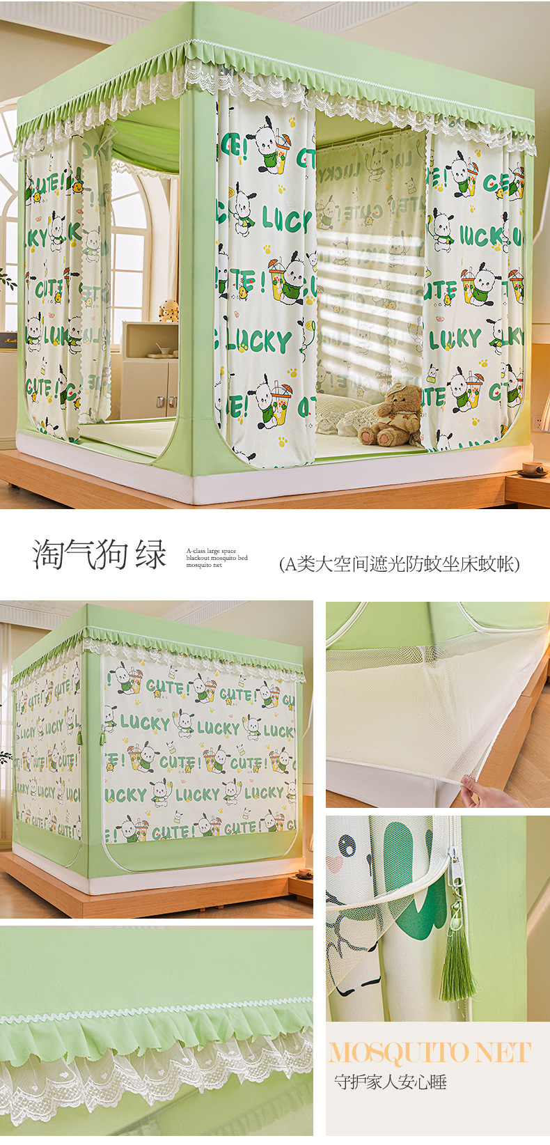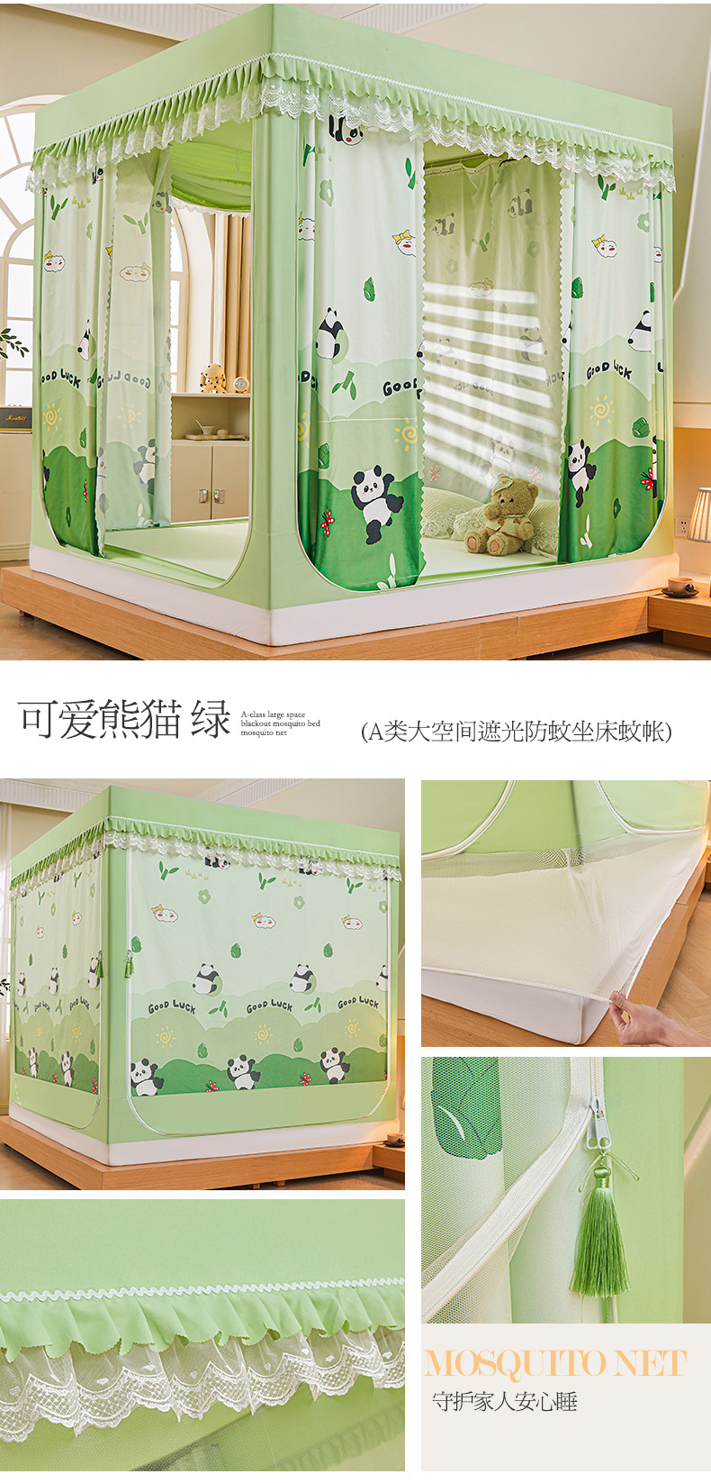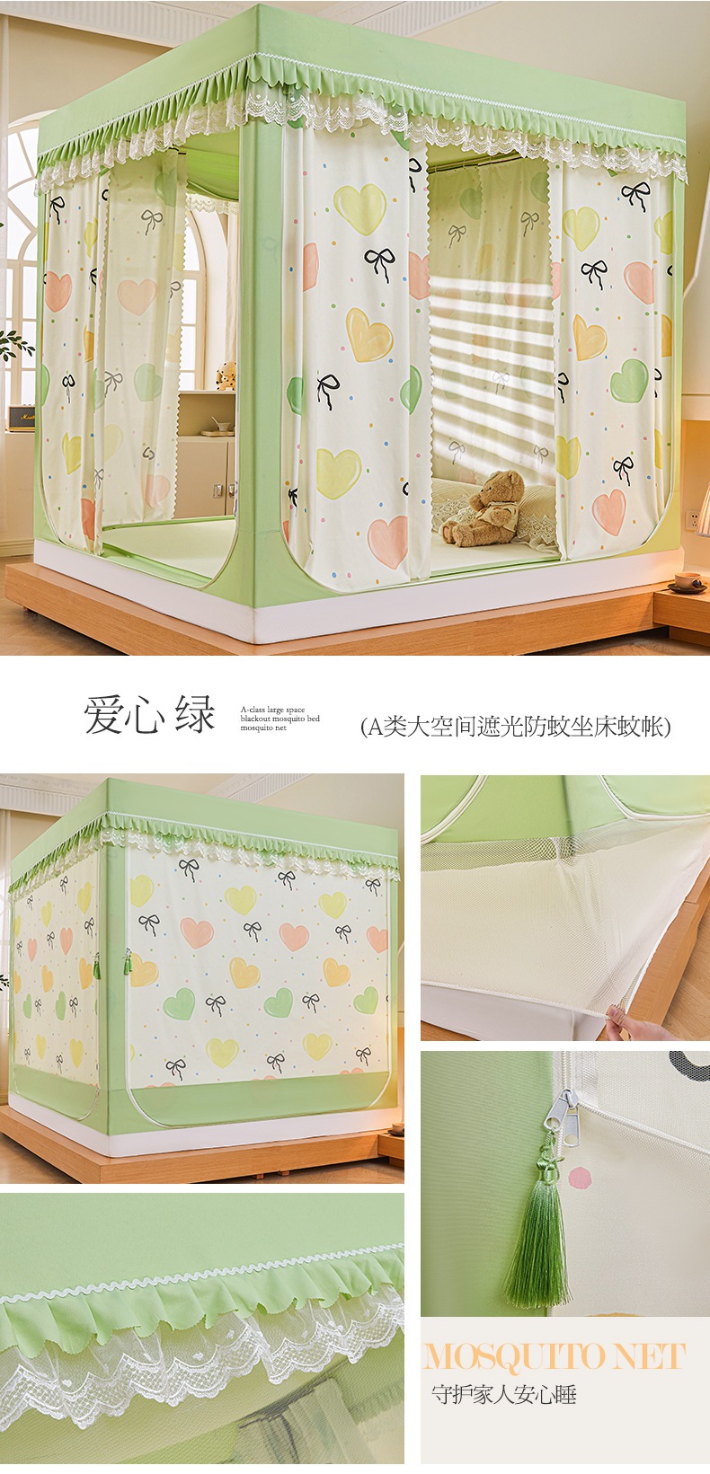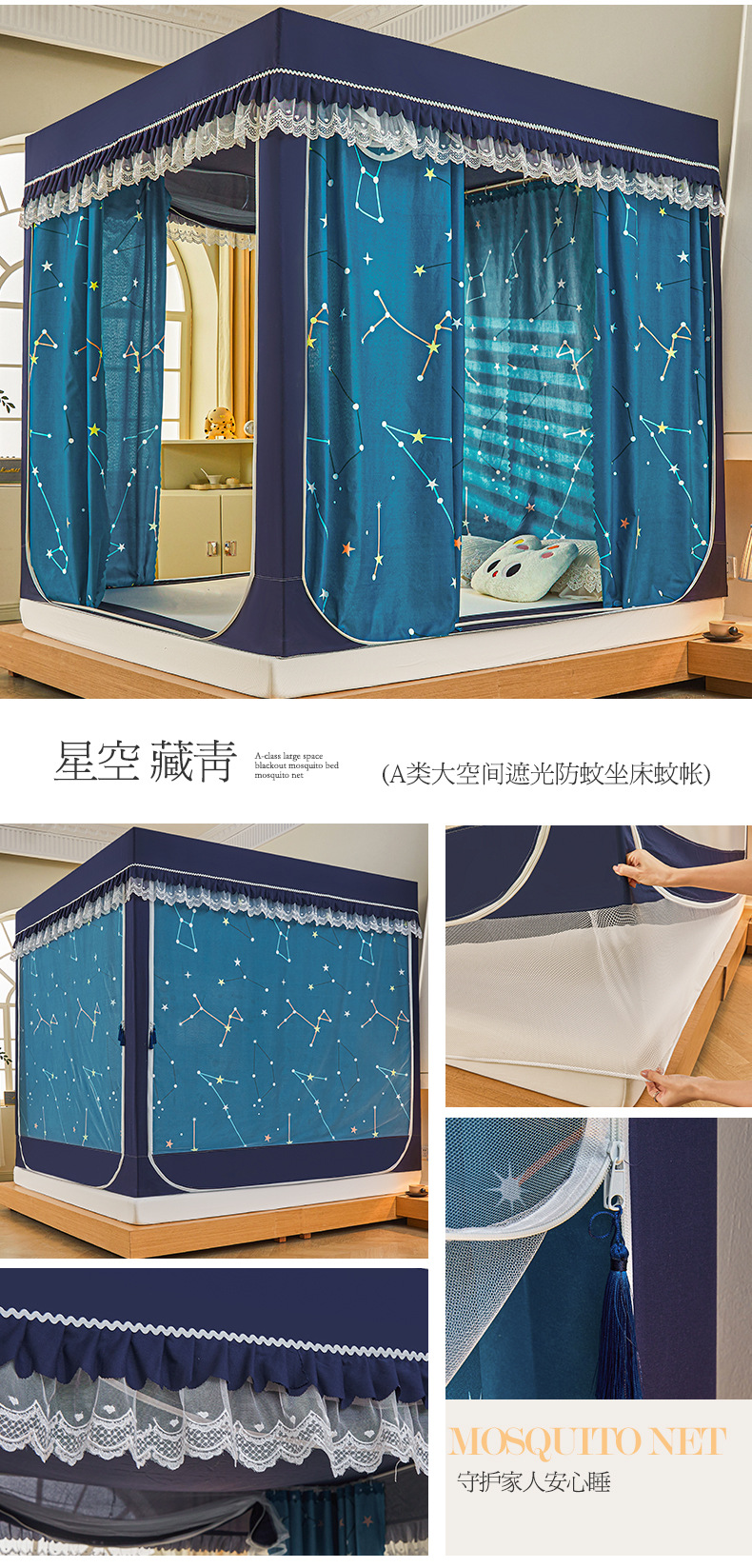 새로운 음영 오사카 인쇄 침대 3 도어 지퍼 모기장 통합 낙상 커튼 모기장 대외 무역 도매스토어 가기