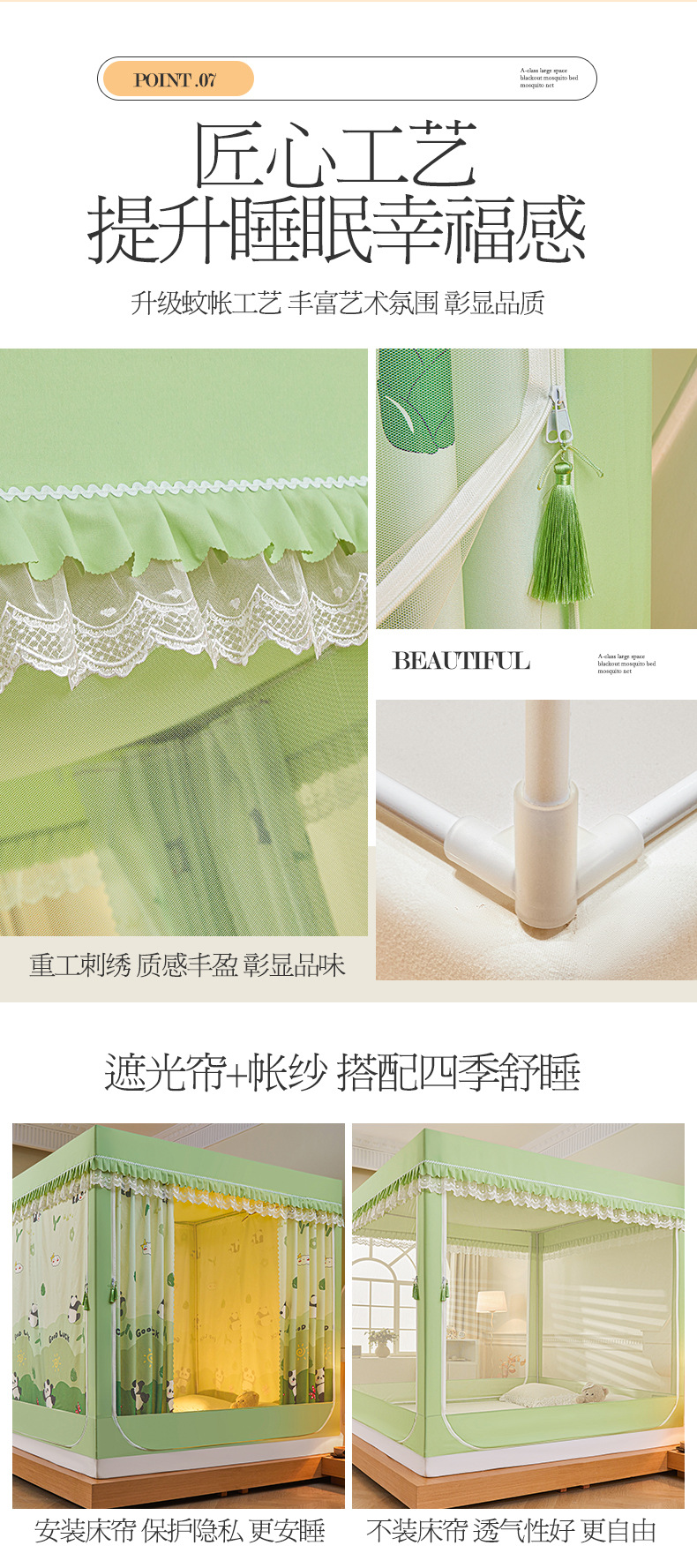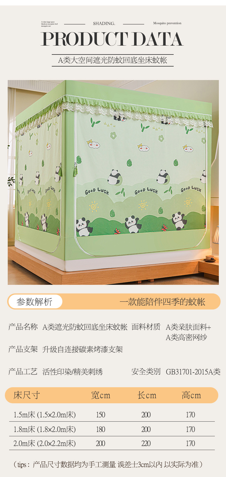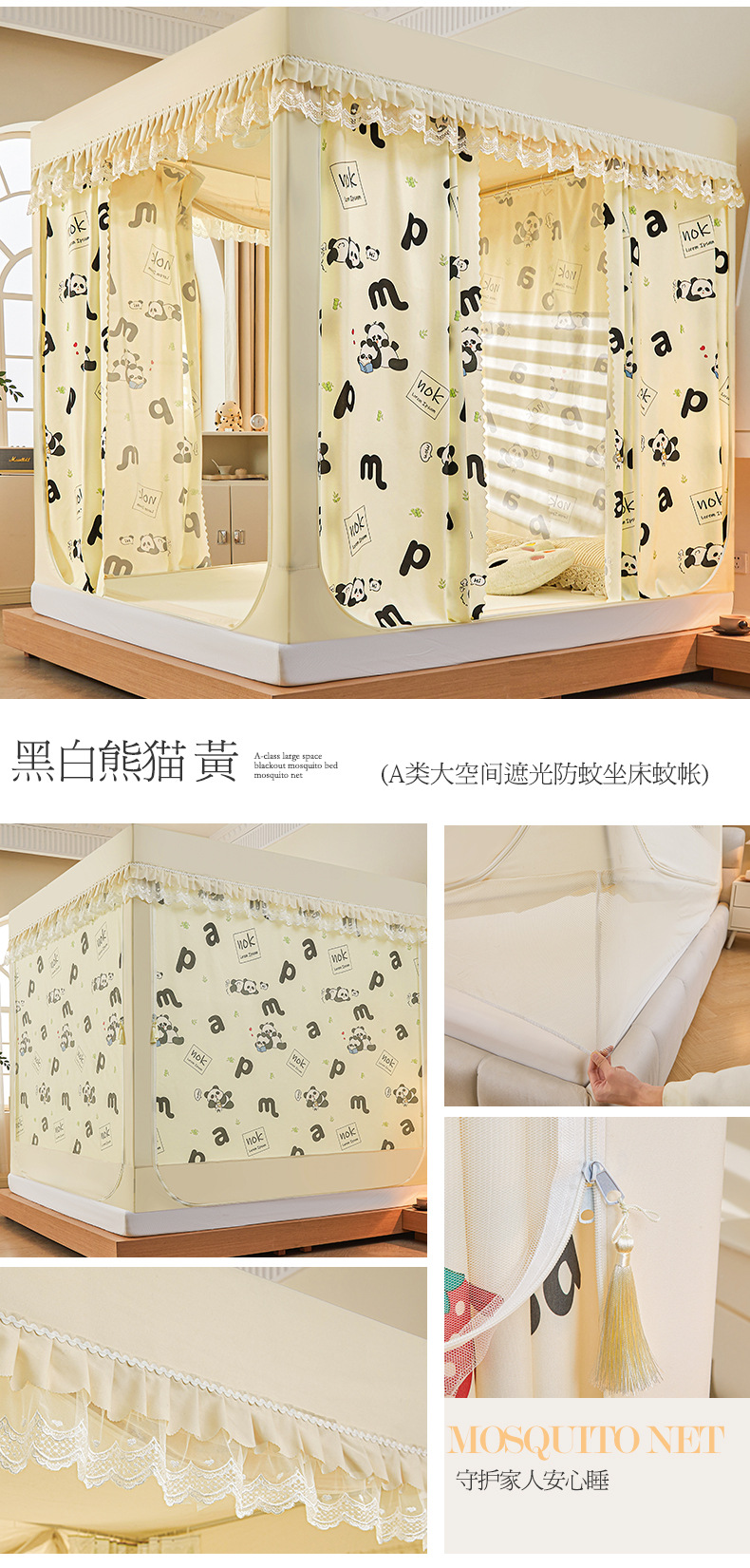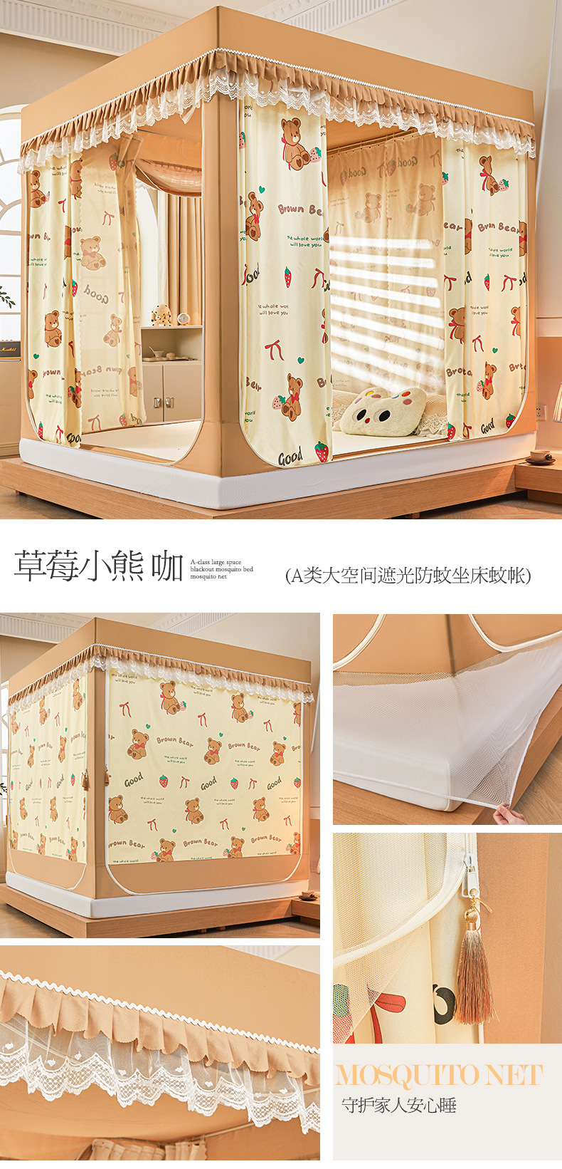 새로운 음영 오사카 인쇄 침대 3 도어 지퍼 모기장 통합 낙상 커튼 모기장 대외 무역 도매스토어 가기