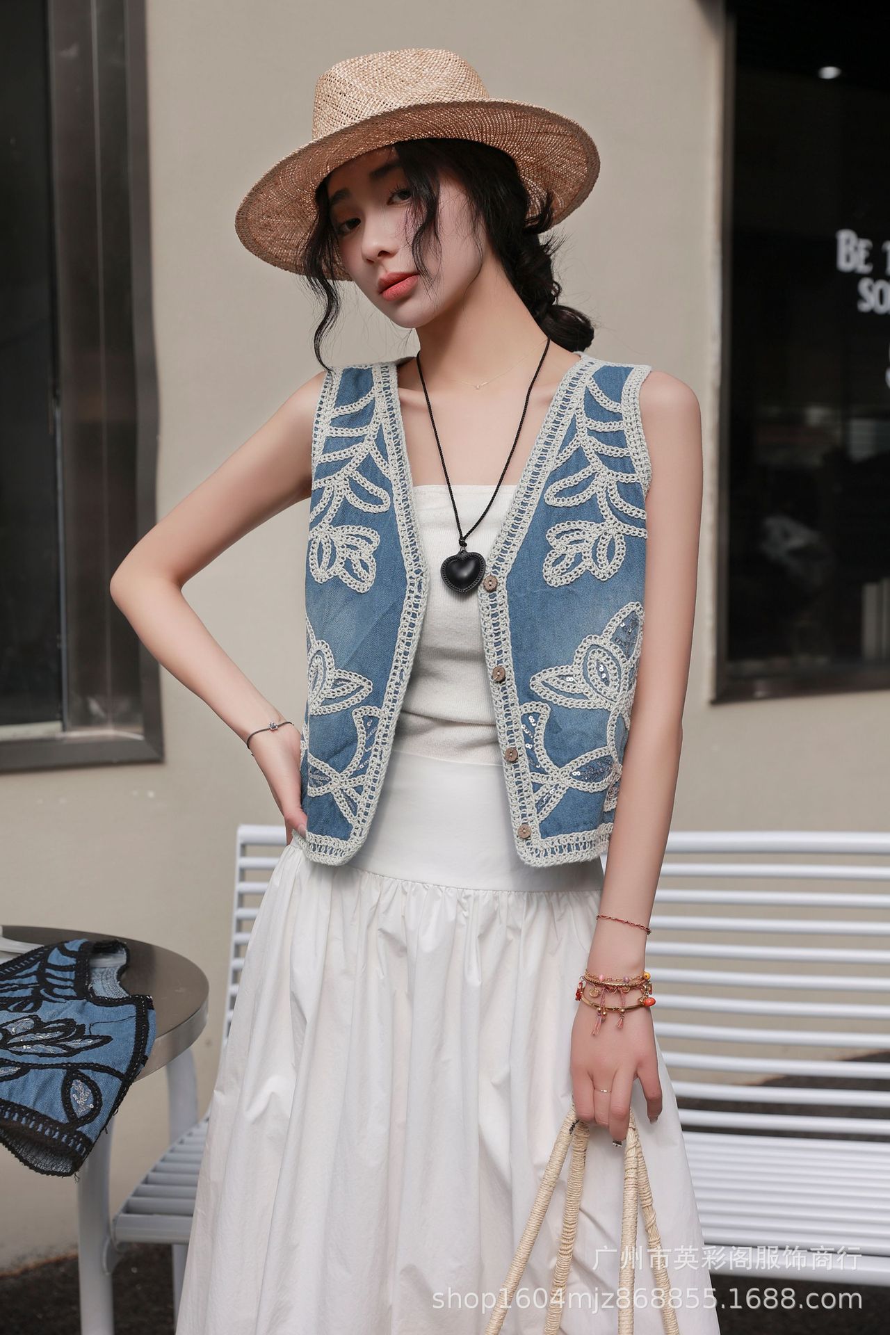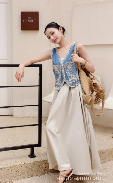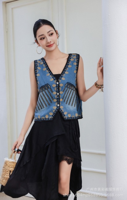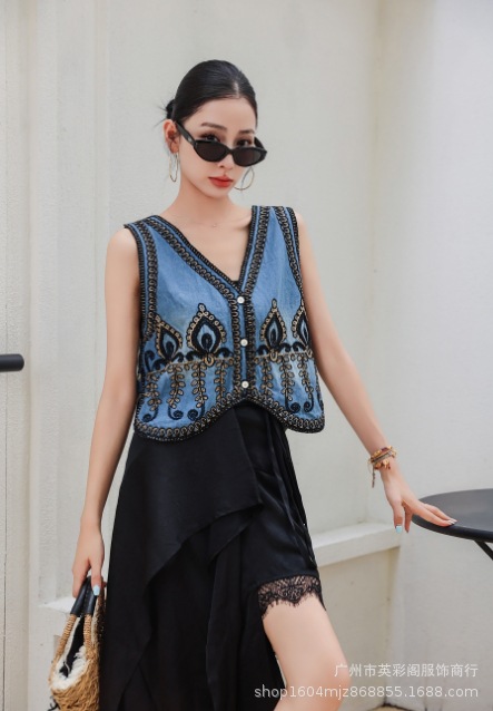 새로운 봄 중공업 자카드 작은 조끼 여성 빈티지 민족 스타일 중공 여성을위한 민소매 조끼 탑스토어 가기