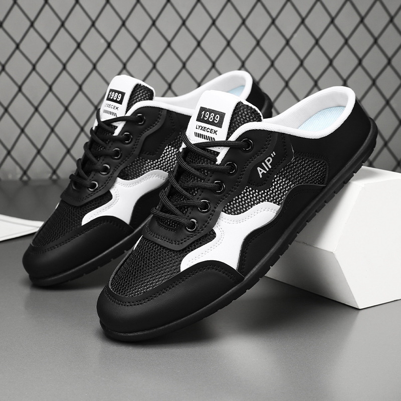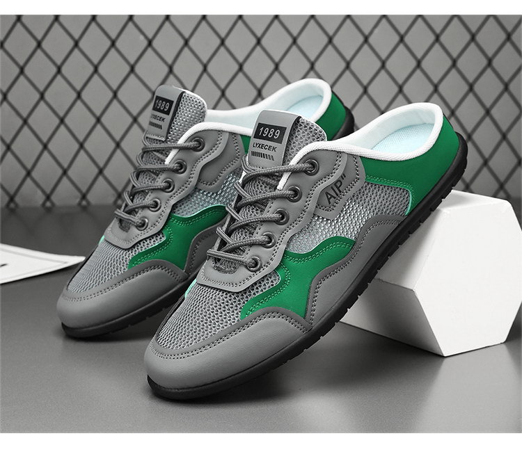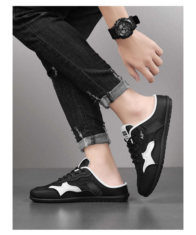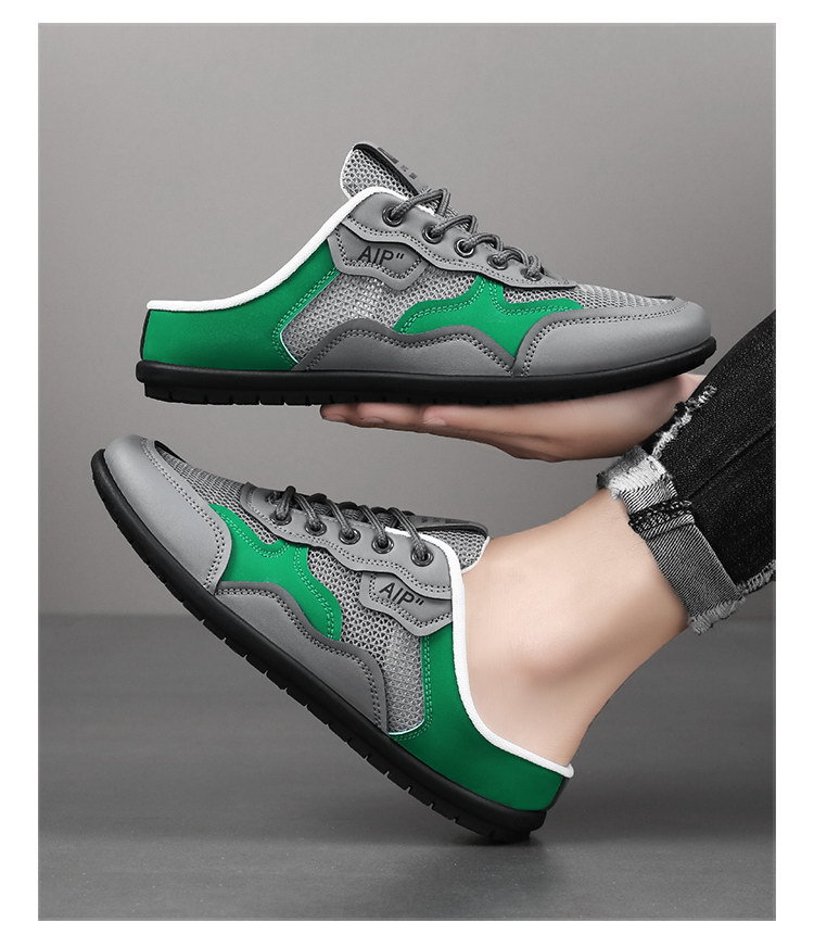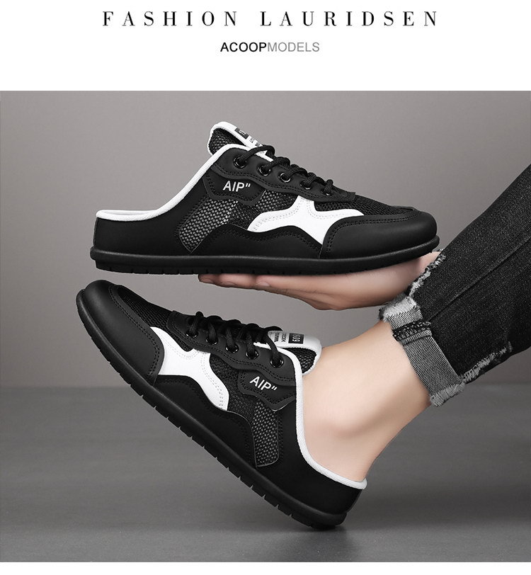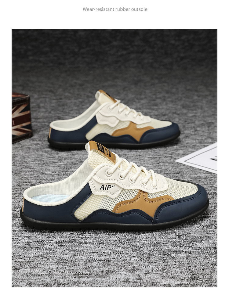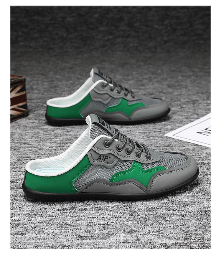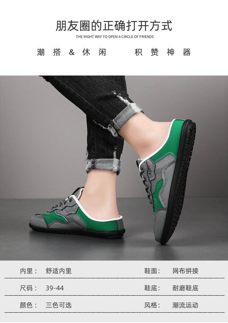 플러스 사이즈 Baotou 하프 슬리퍼 남성용 통기성 얇은 메쉬 아우터 착용 슬립 온 스포츠 부드러운 밑창 비치 샌들