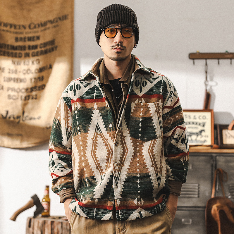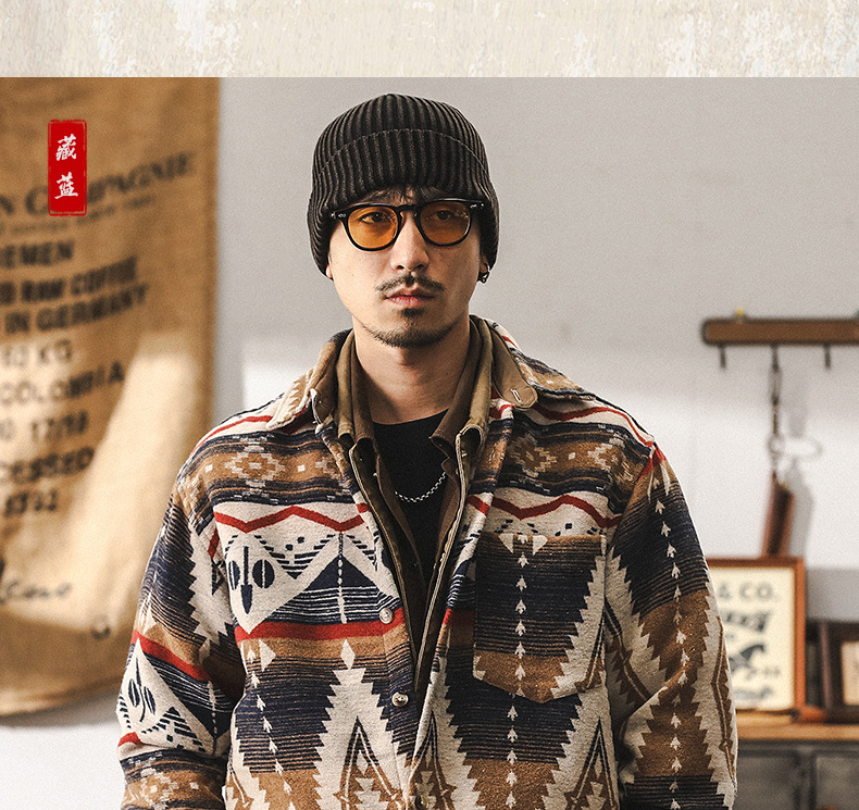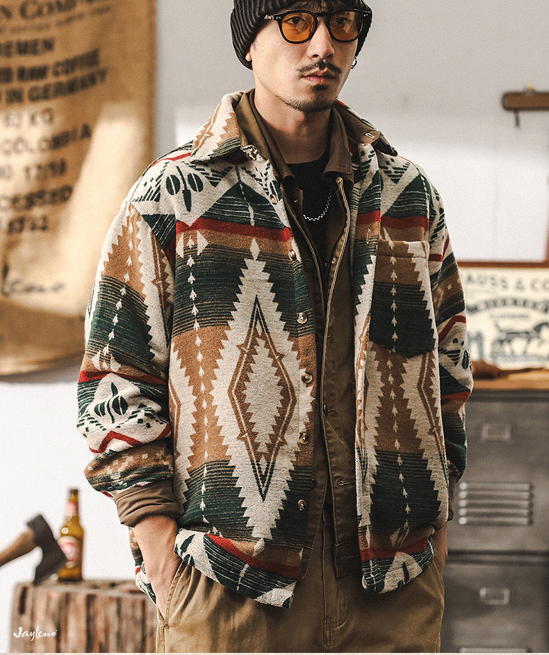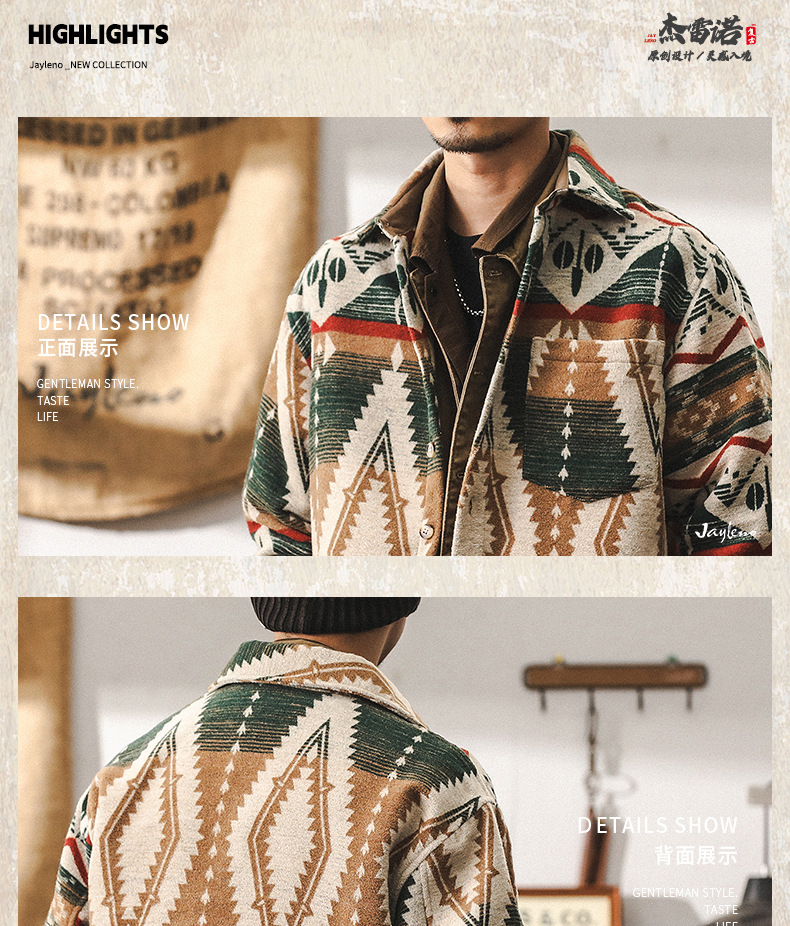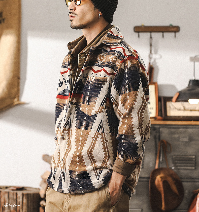 미국 스타일 레트로 무거운 민족 스타일 긴 소매 셔츠 남자 봄 2025 새로운 패션 브랜드 캐주얼 셔츠 코트 봄과 가을