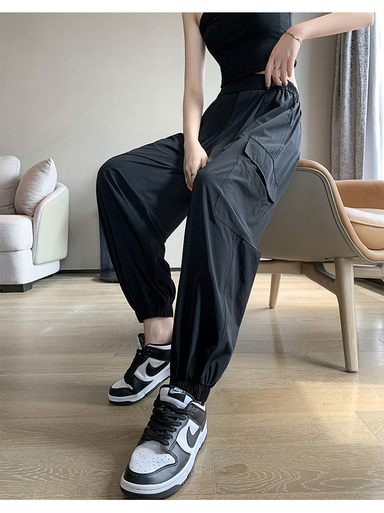 여성의 봄과 가을 여름 새로운 높은 허리 슬리밍 미국 스타일 등산 바지 할란 스포츠 발 바지
