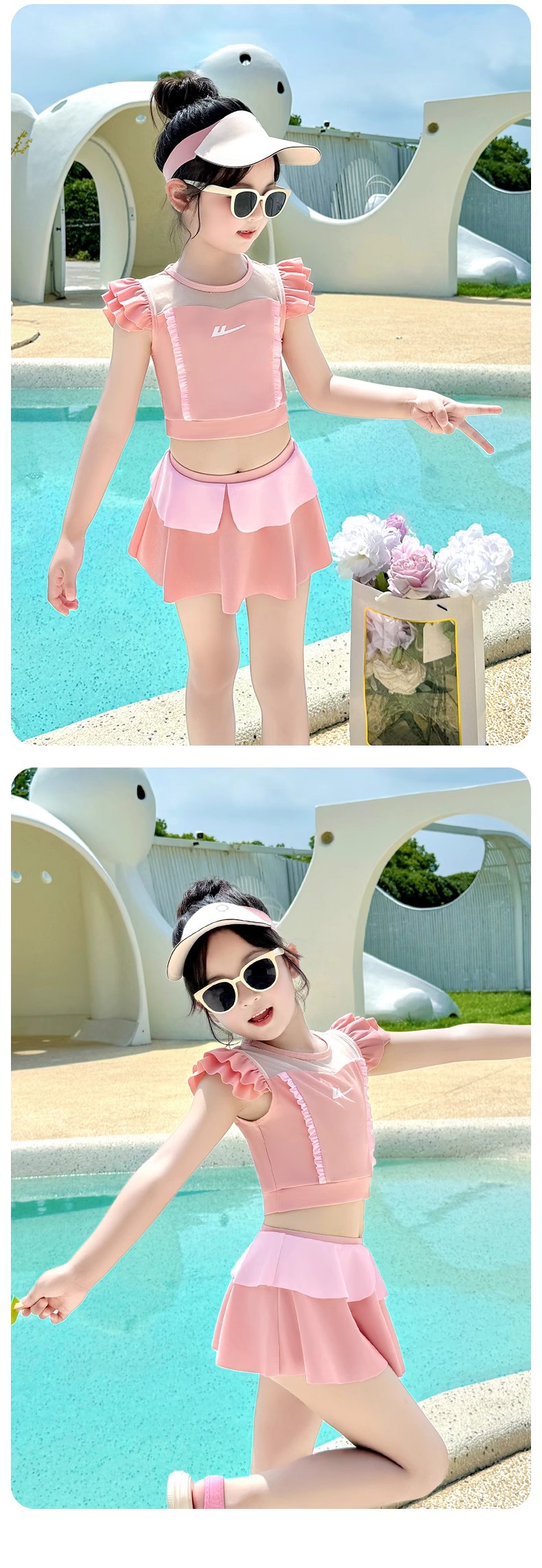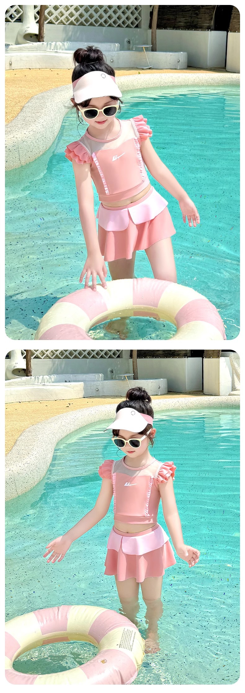 Huili 어린이 수영복 소녀 2025 새로운 소녀 아기 짧은 소매 자외선 차단제 소녀 귀여운 수영 세트