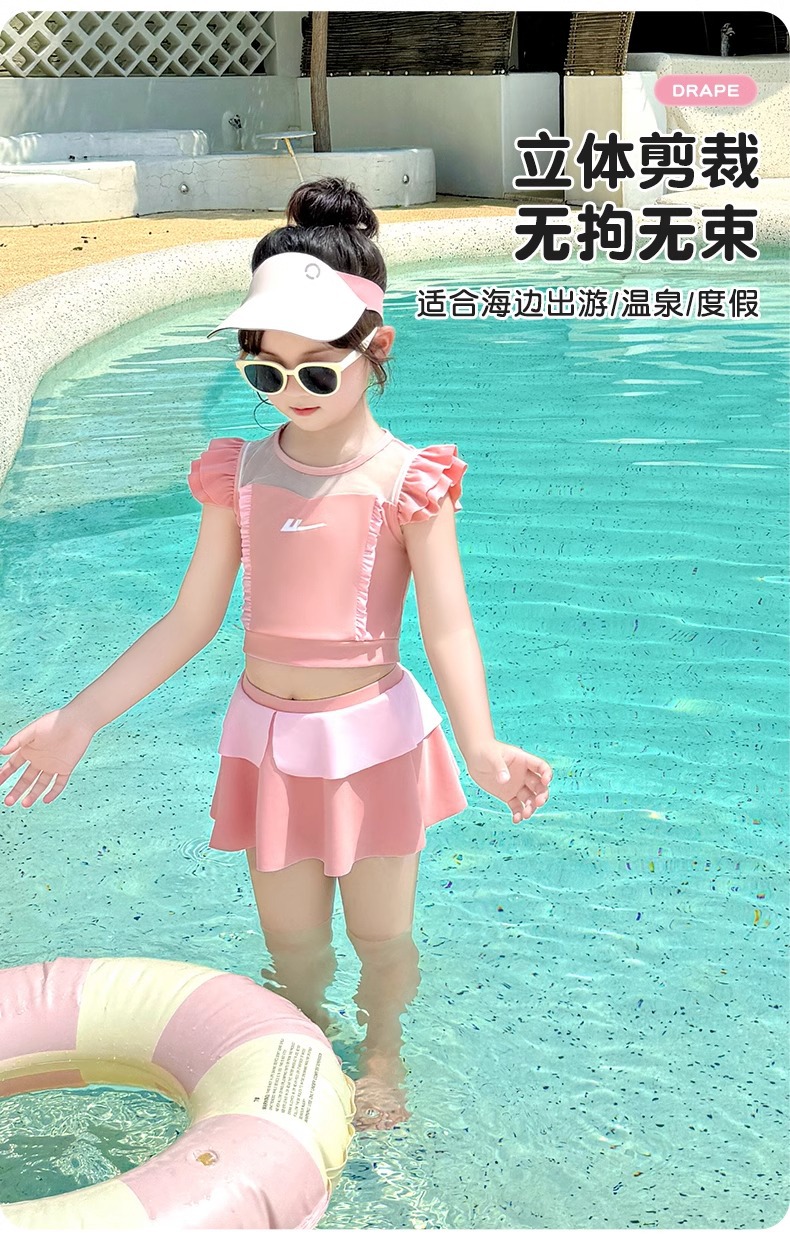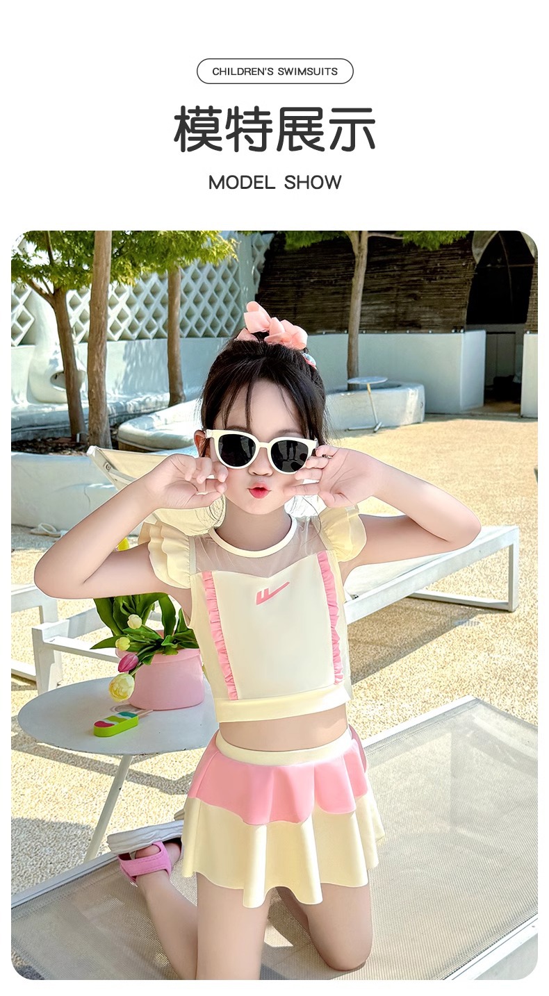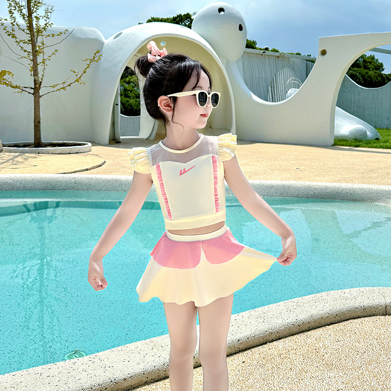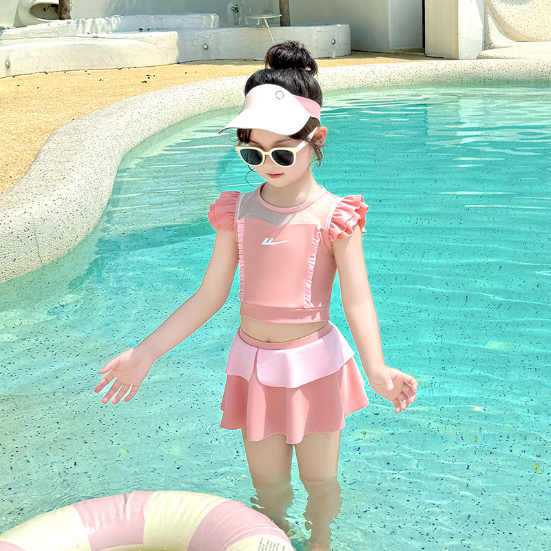Huili 어린이 수영복 소녀 2025 새로운 소녀 아기 짧은 소매 자외선 차단제 소녀 귀여운 수영 세트스토어 가기