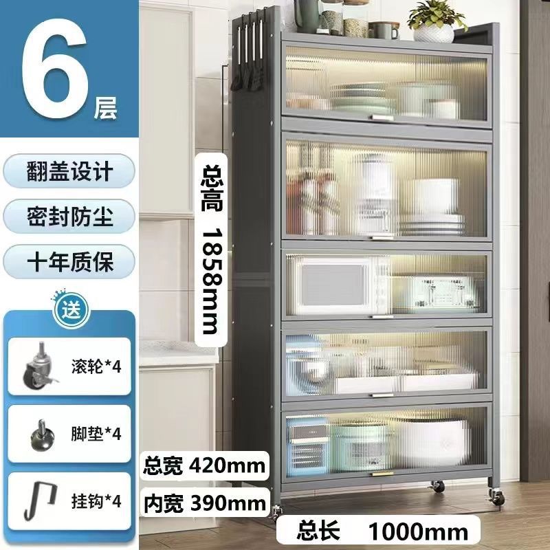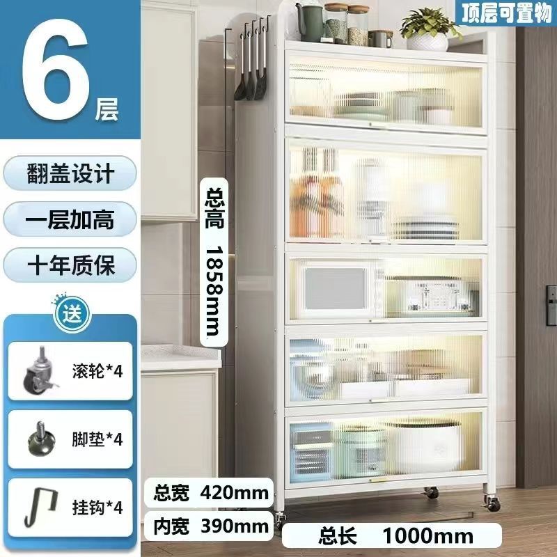 가정용 플립 주방 보관 랙 바닥 서 다층 보관 캐비닛 그릇 전자 레인지 다기능 보관 선반