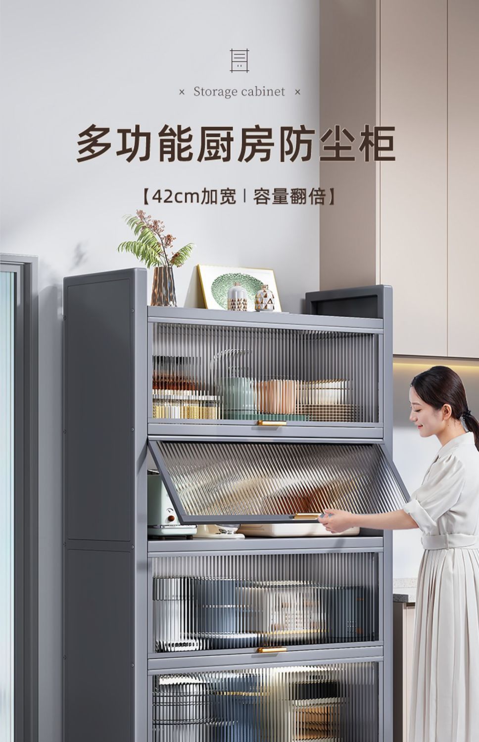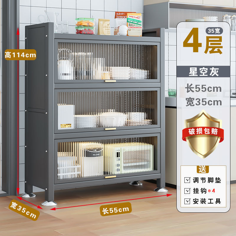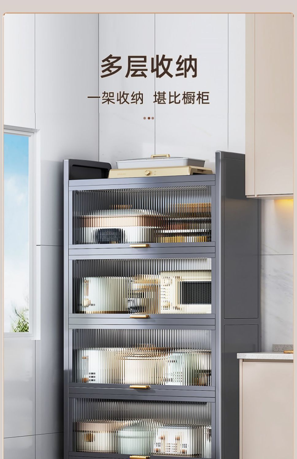 가정용 플립 주방 보관 랙 바닥 서 다층 보관 캐비닛 그릇 전자 레인지 다기능 보관 선반스토어 가기