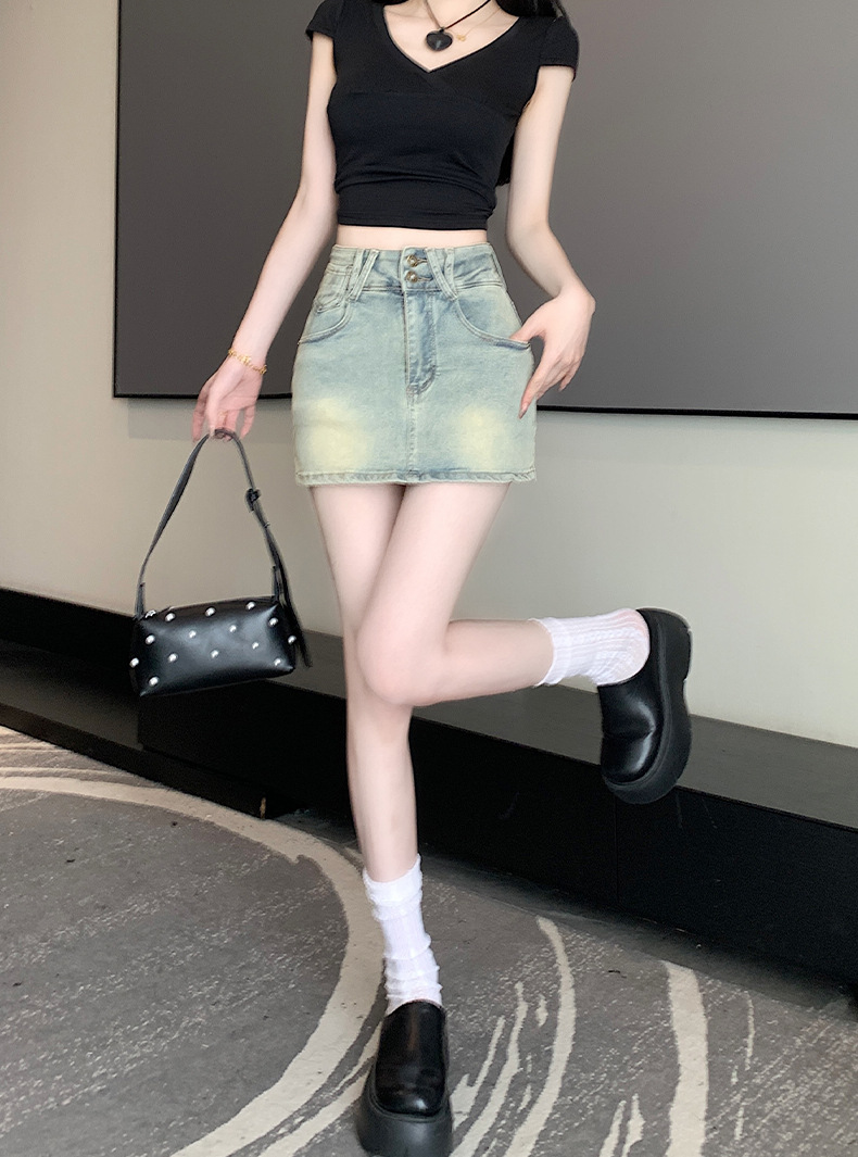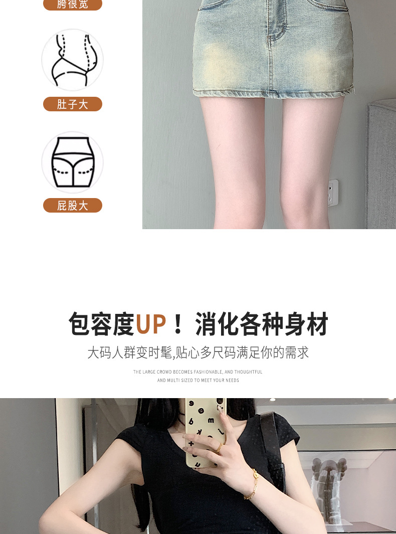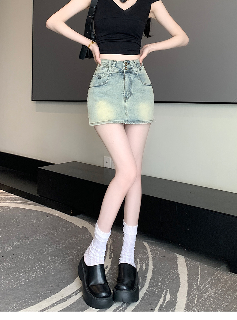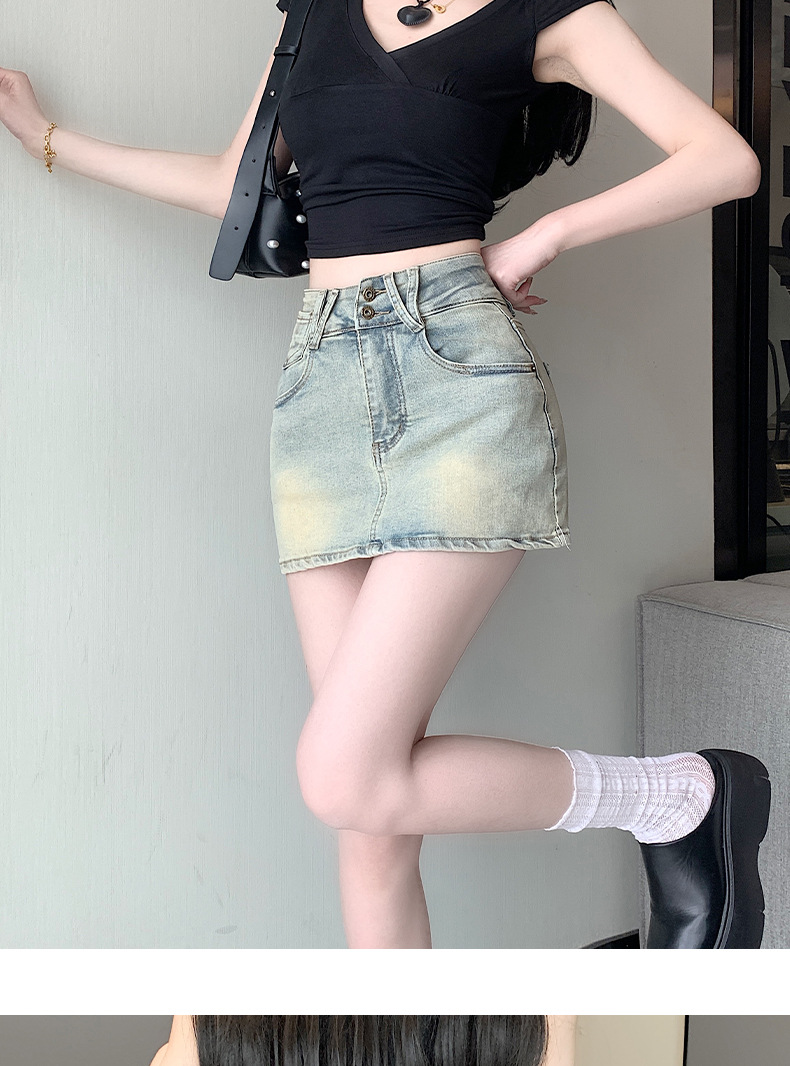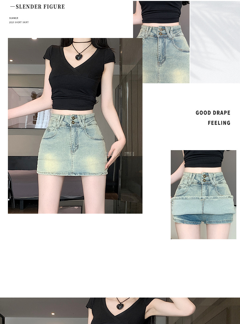 높은 허리 엉덩이 데님 치마 여성 스파이스 소녀 2025 봄/여름 작은 슬림 플러스 사이즈 안티 워킹 스커트 바지스토어 가기