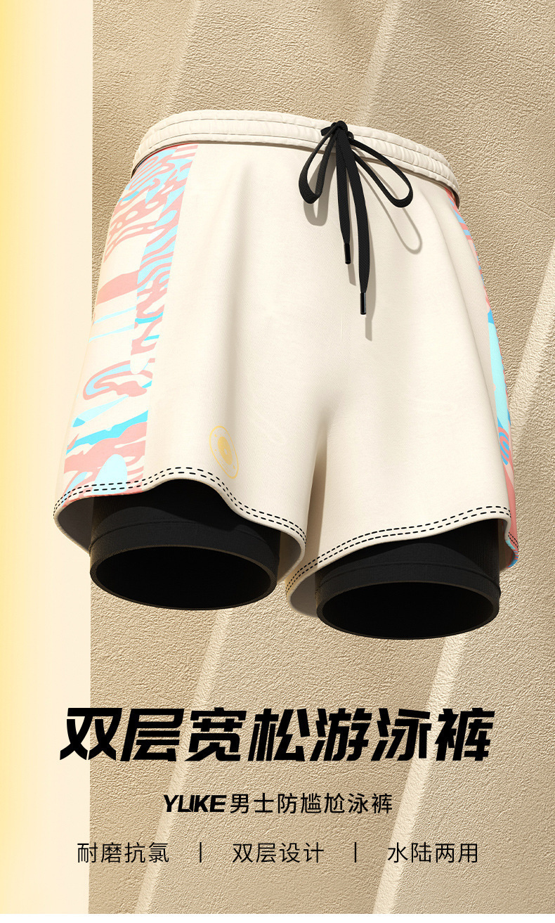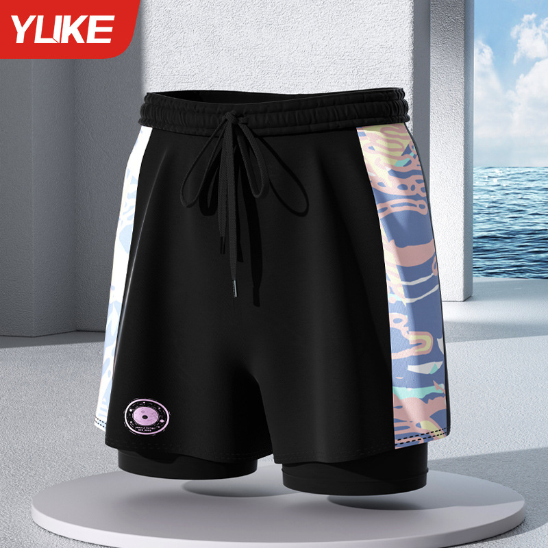 수영 트렁크 소년 새로운 더블 레이어 빠른 건조 방황 성인 패션 수영 트렁크 플러스 사이즈 남성 수영 장비 도매