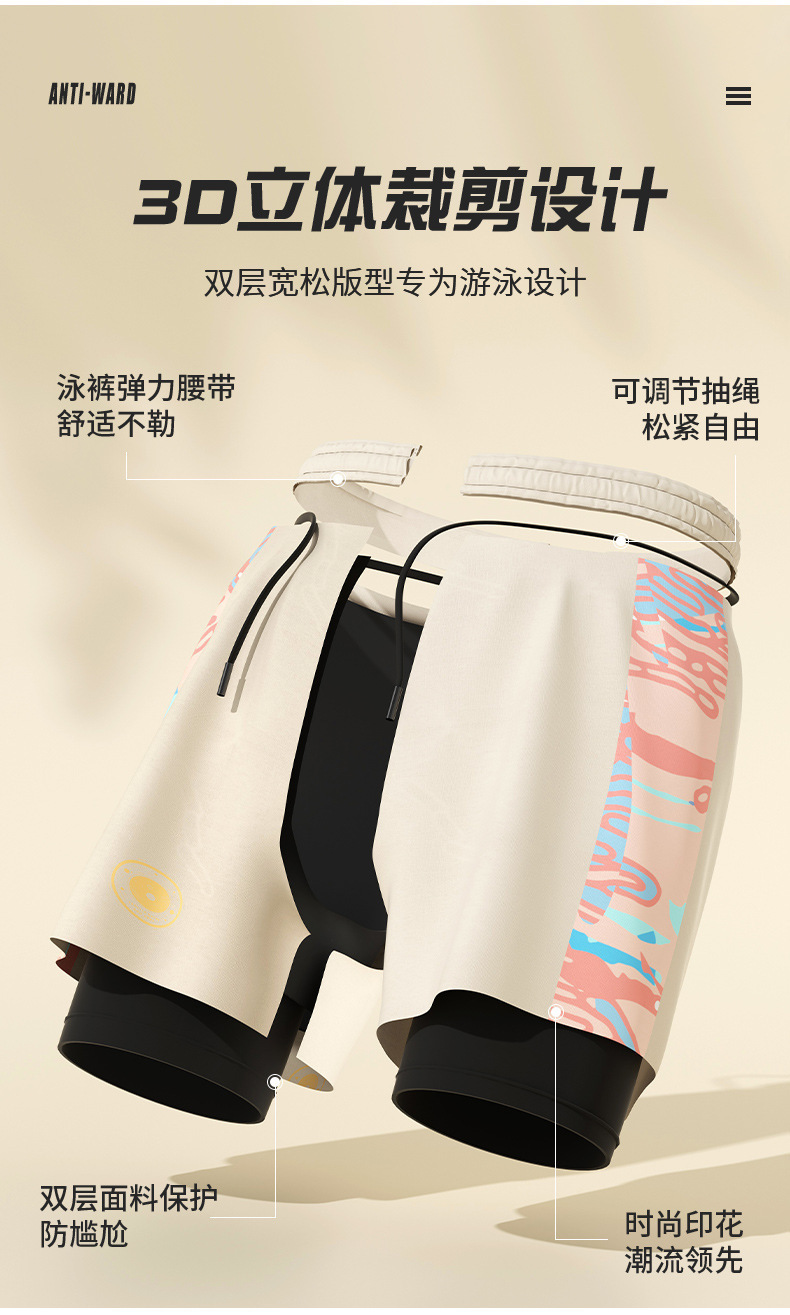 수영 트렁크 소년 새로운 더블 레이어 빠른 건조 방황 성인 패션 수영 트렁크 플러스 사이즈 남성 수영 장비 도매스토어 가기