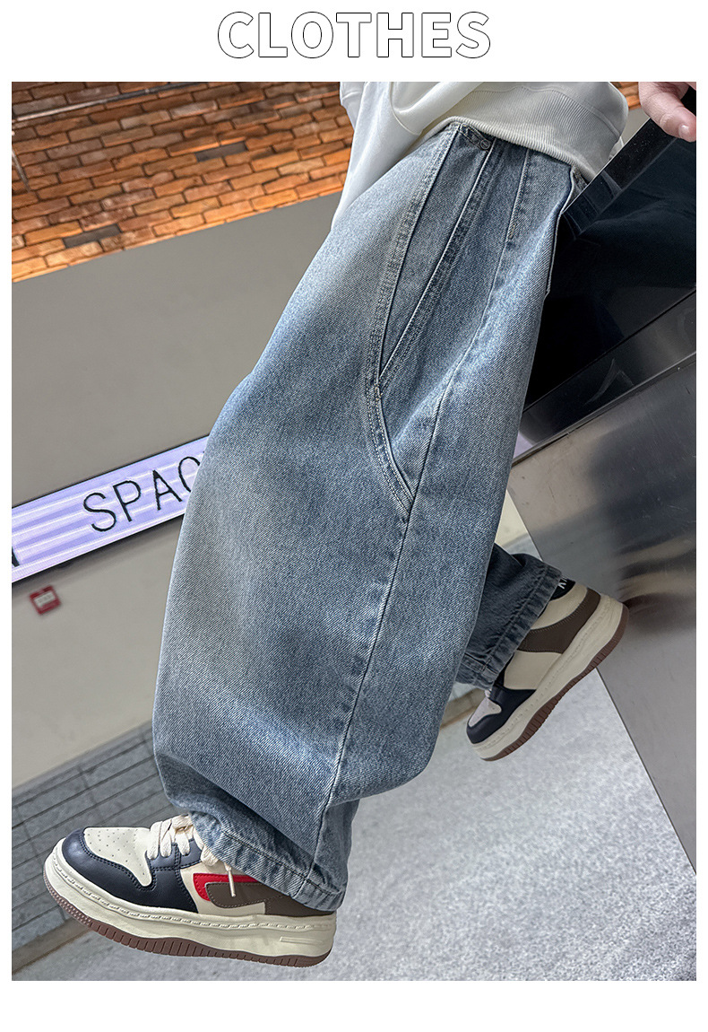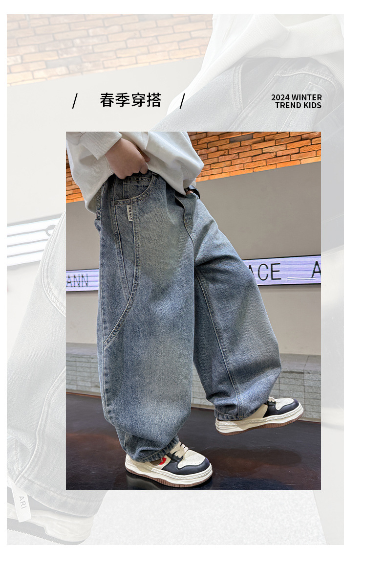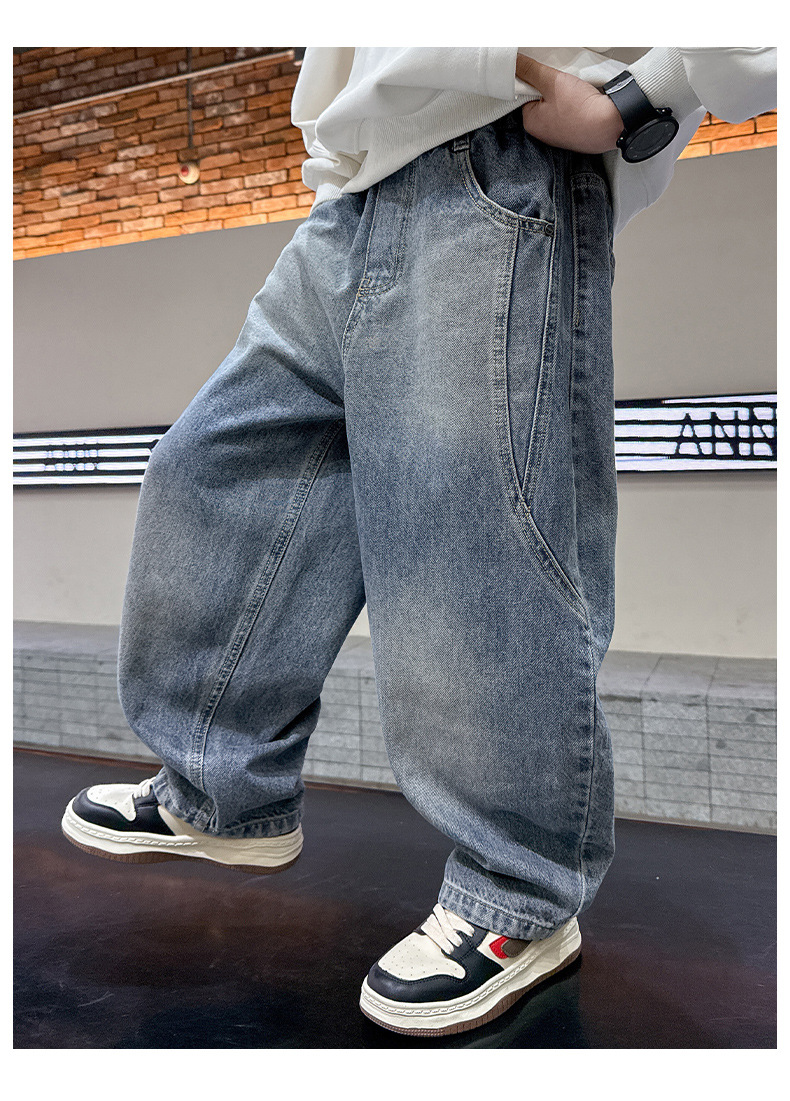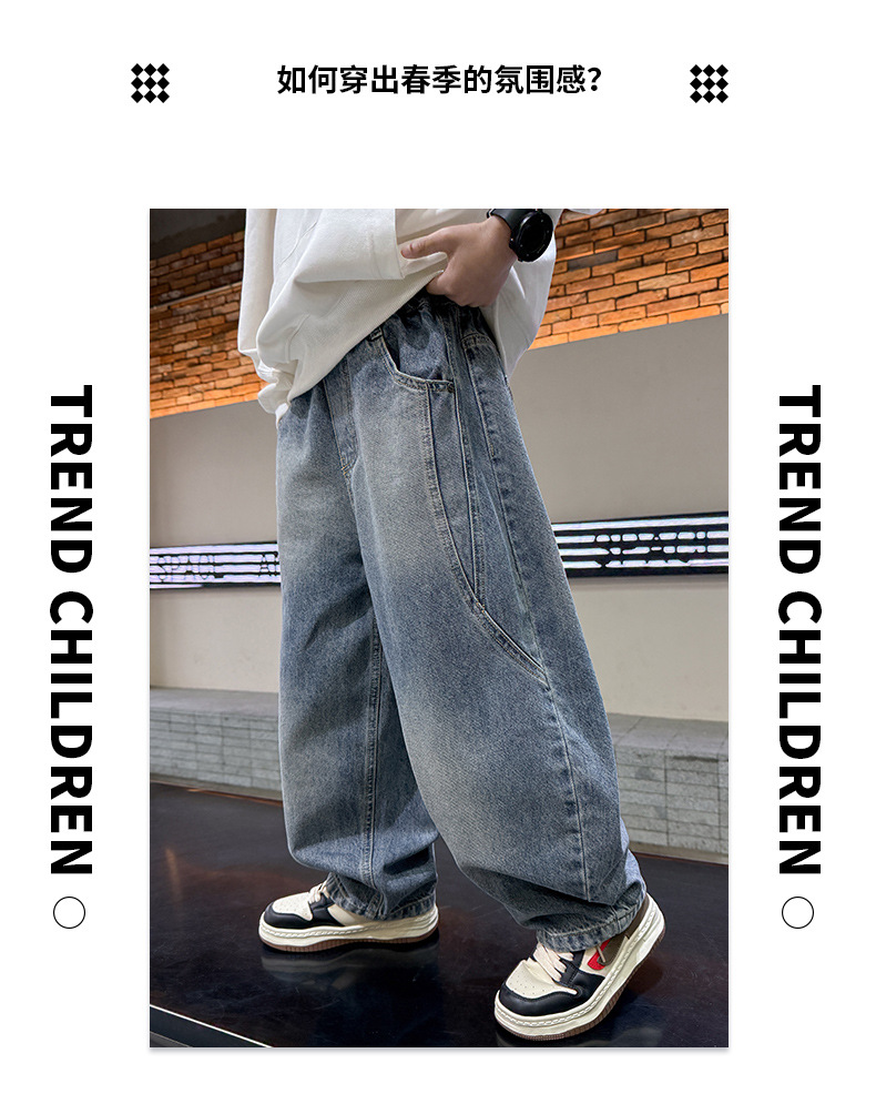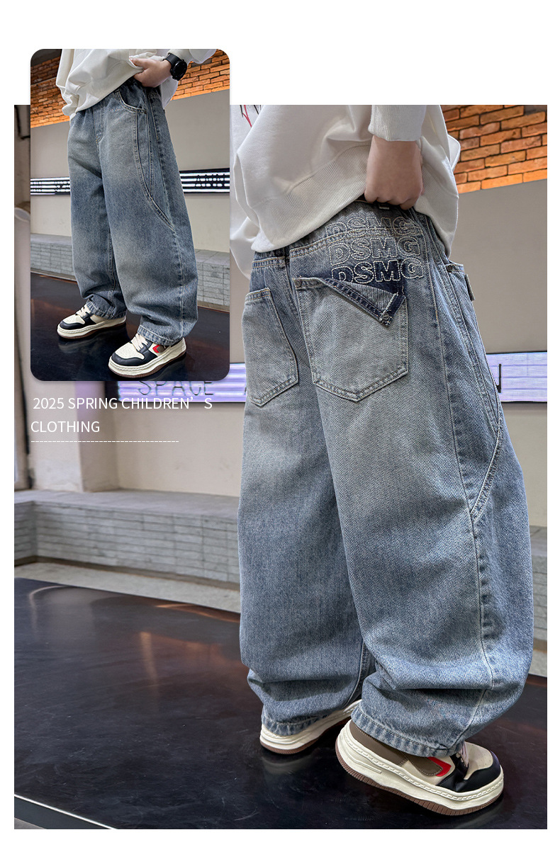 소년 스트레이트 청바지 봄, 가을 2025 새로운 어린이 가을 바지 중대형 어린이 바지 가을 패션 도매스토어 가기