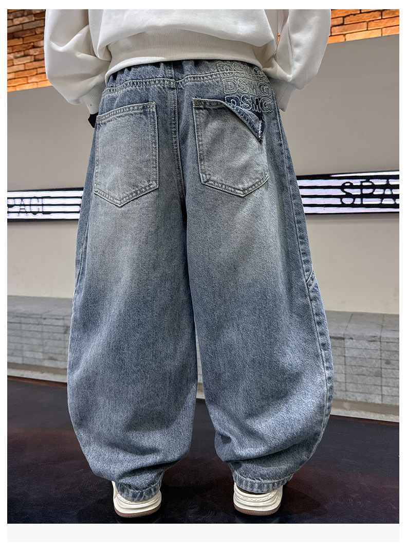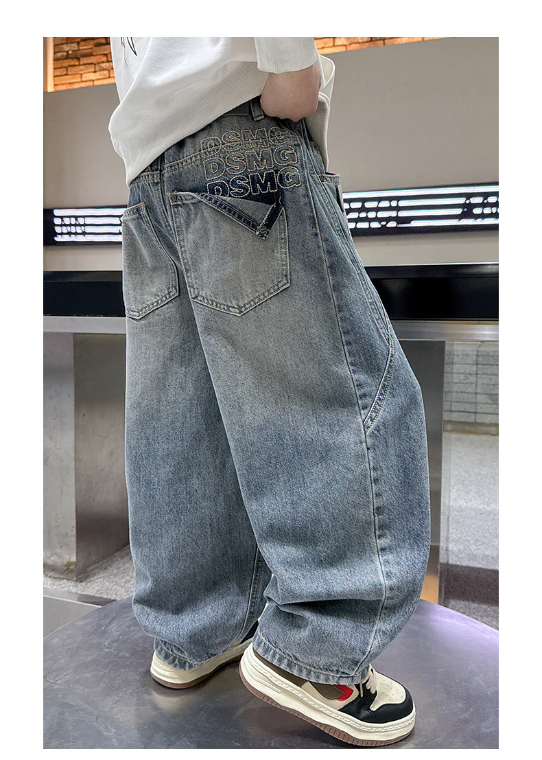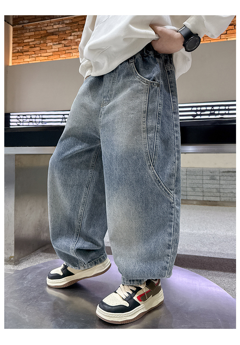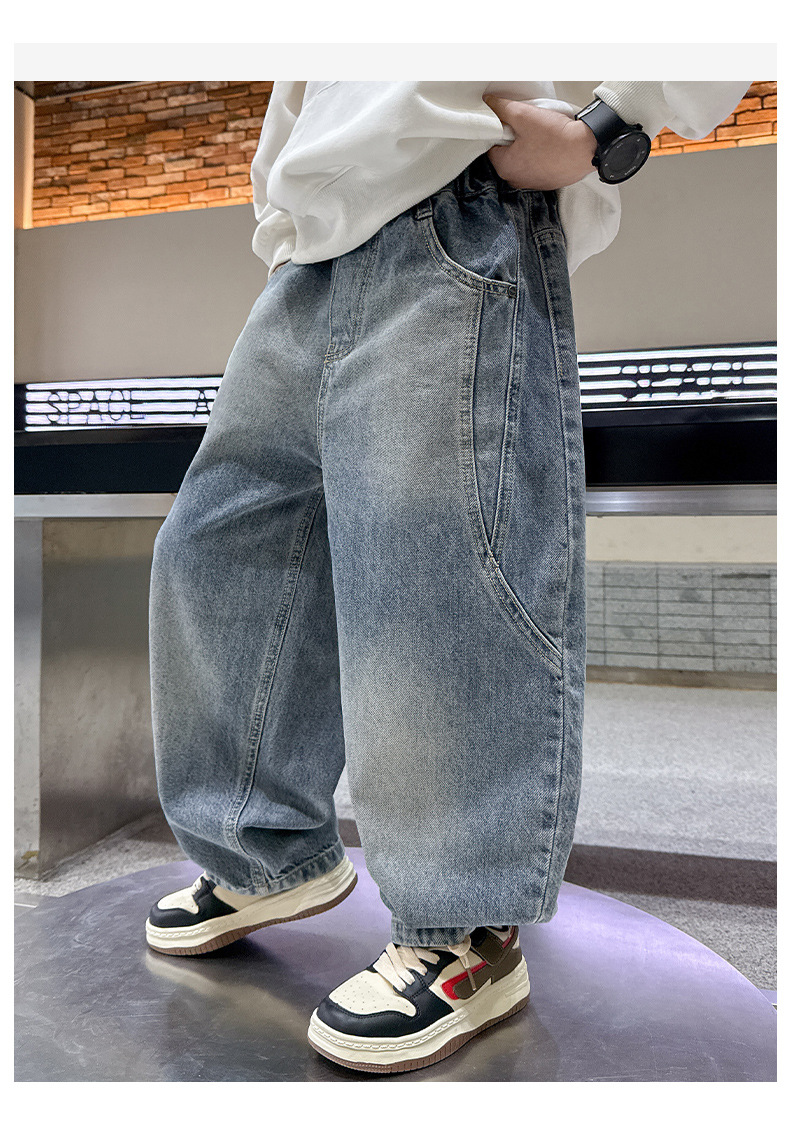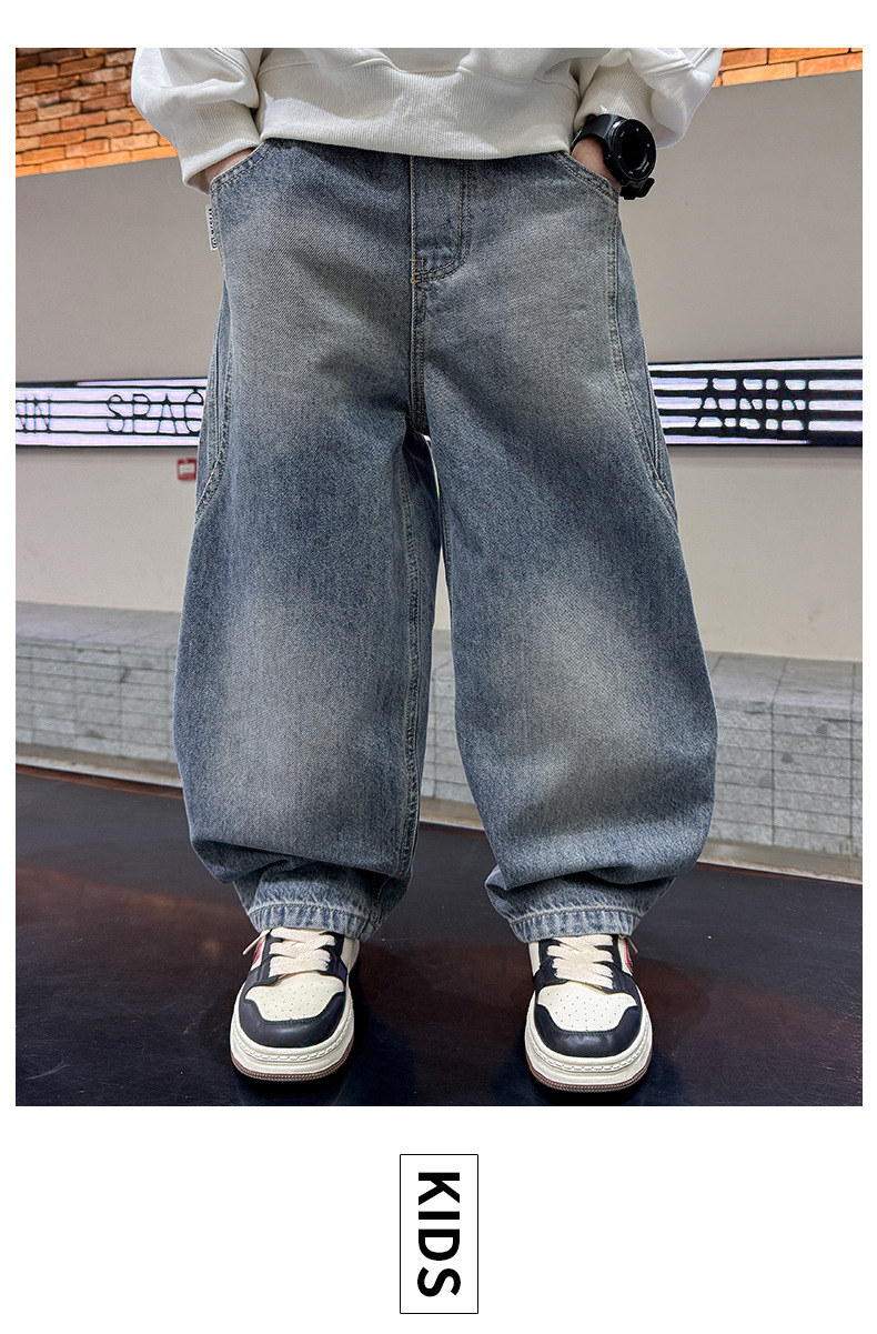 소년 스트레이트 청바지 봄, 가을 2025 새로운 어린이 가을 바지 중대형 어린이 바지 가을 패션 도매스토어 가기