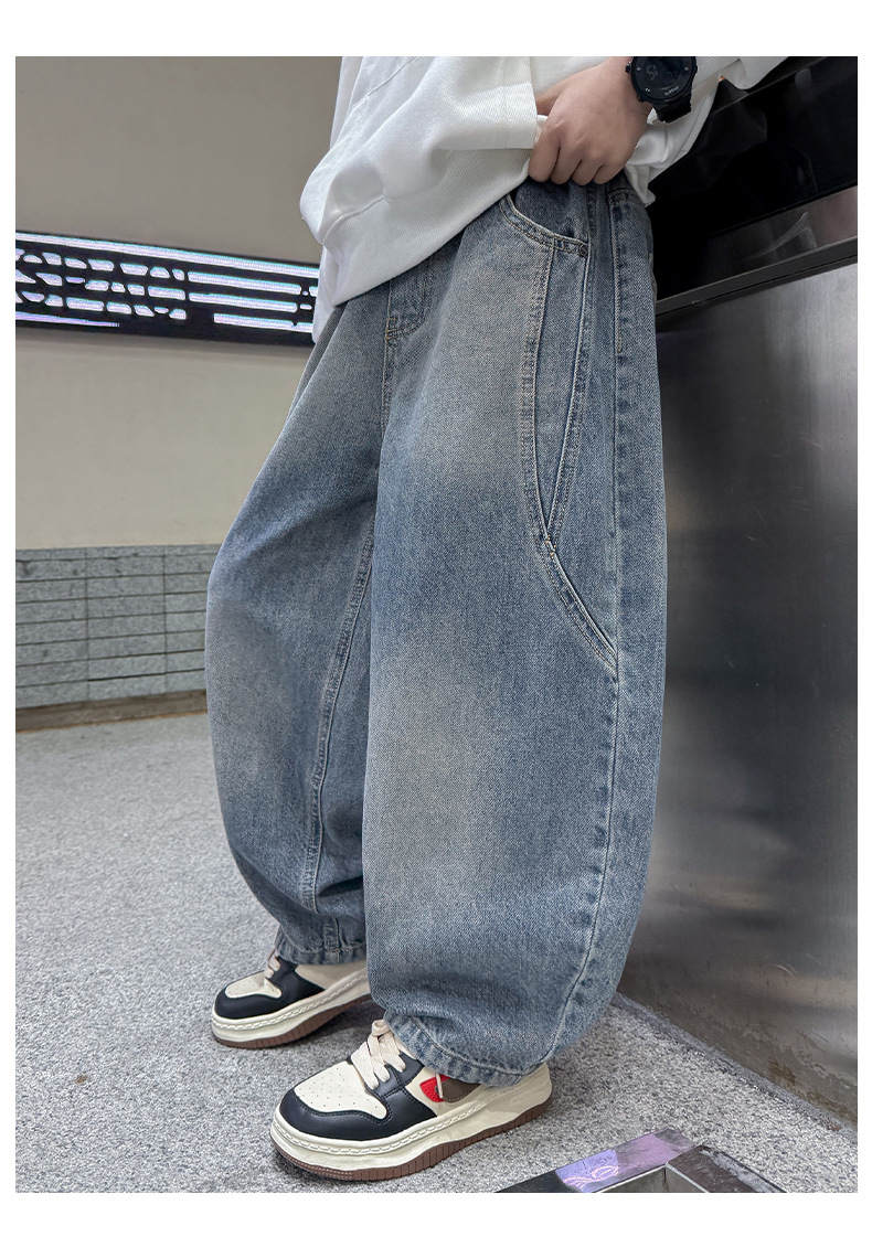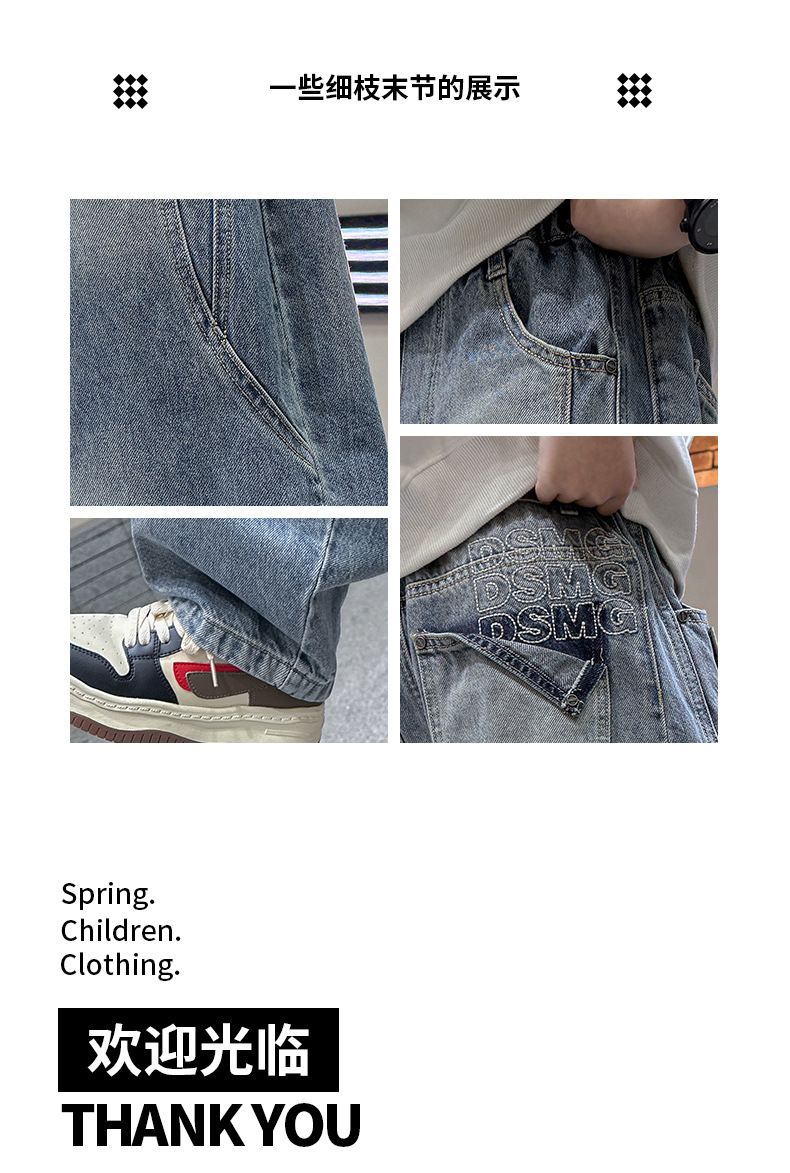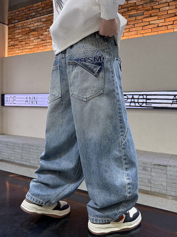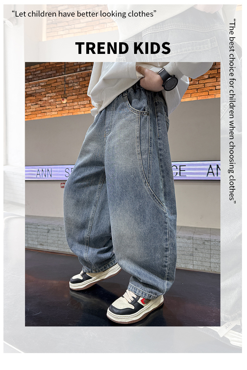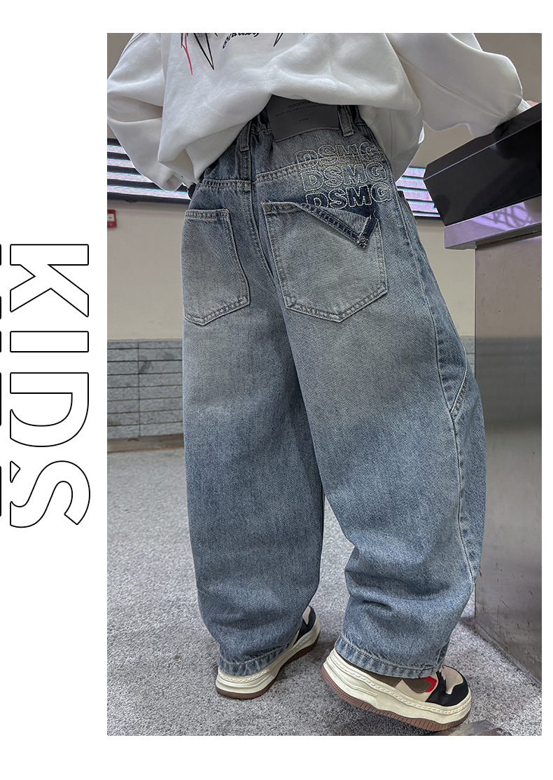 소년 스트레이트 청바지 봄, 가을 2025 새로운 어린이 가을 바지 중대형 어린이 바지 가을 패션 도매스토어 가기