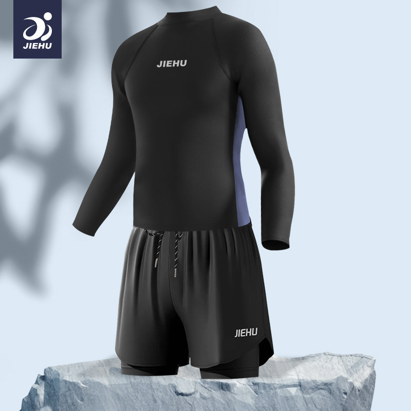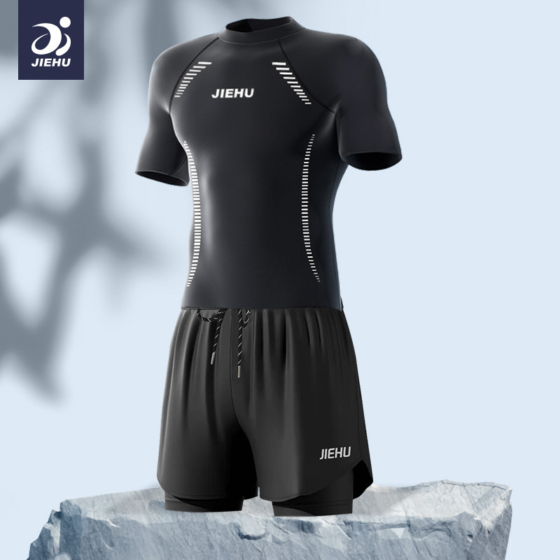 수영복 남자 수영복 더블 레이어 수영 트렁크 세트 안티 당황스러운 수영 트렁크 남성 캐주얼 느슨한 복서 수영복 수영 트렁크 세트