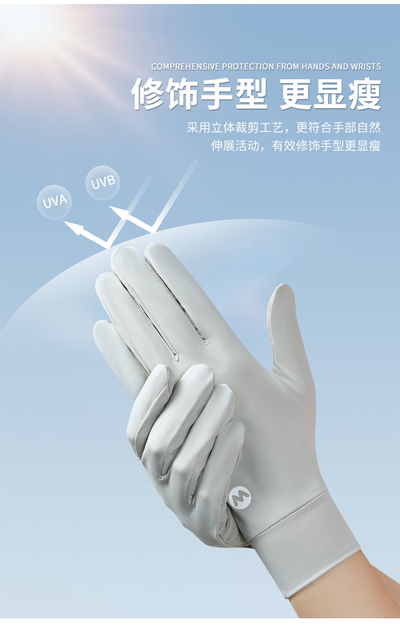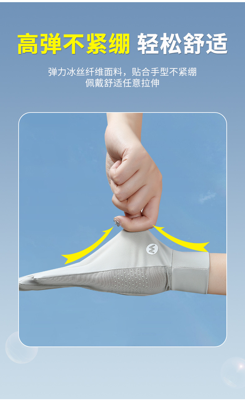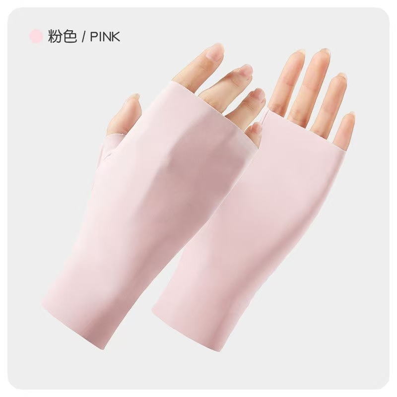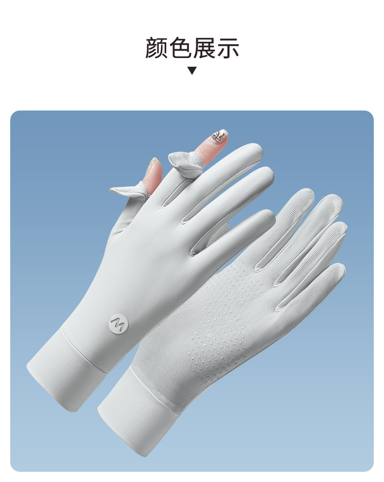 여름 태양 보호 장갑 여성용 아이스 실크 라이딩 얇은 미끄럼 통기성 야외 안티 자외선 노출 손가락 여름 운전스토어 가기