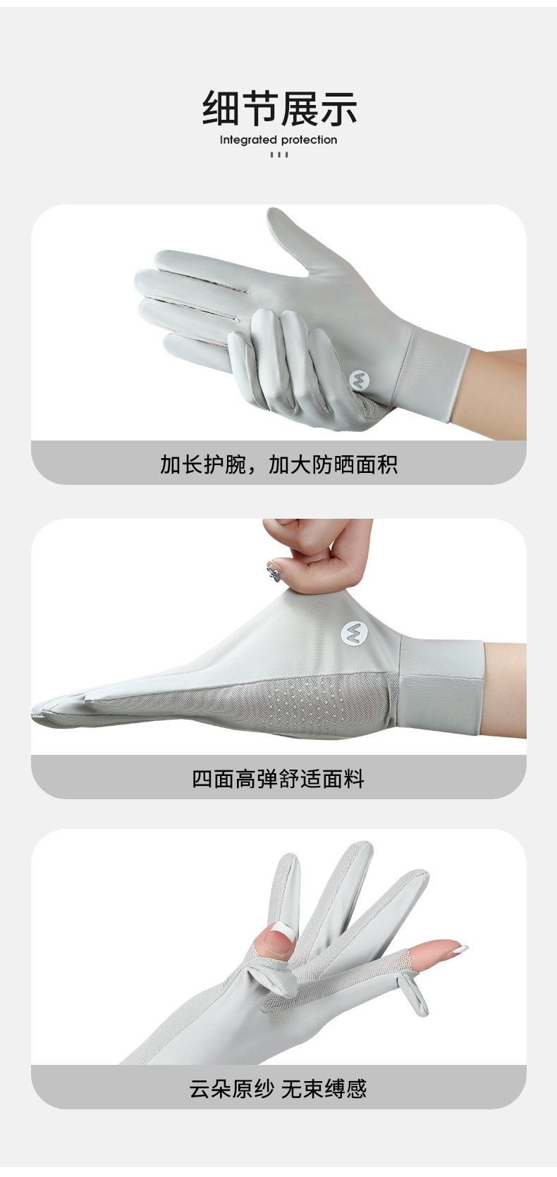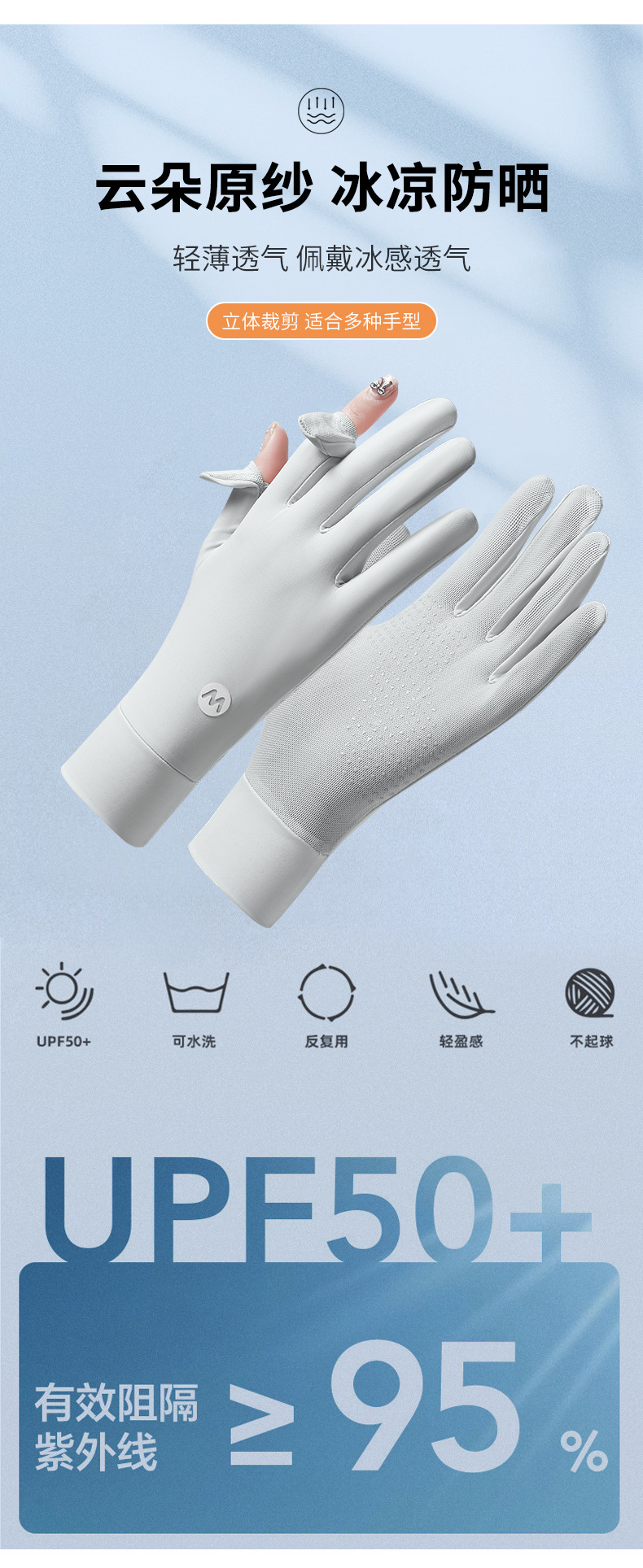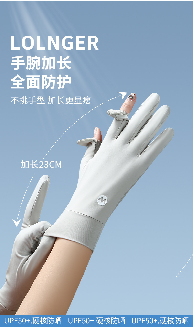 여름 태양 보호 장갑 여성용 아이스 실크 라이딩 얇은 미끄럼 통기성 야외 안티 자외선 노출 손가락 여름 운전스토어 가기