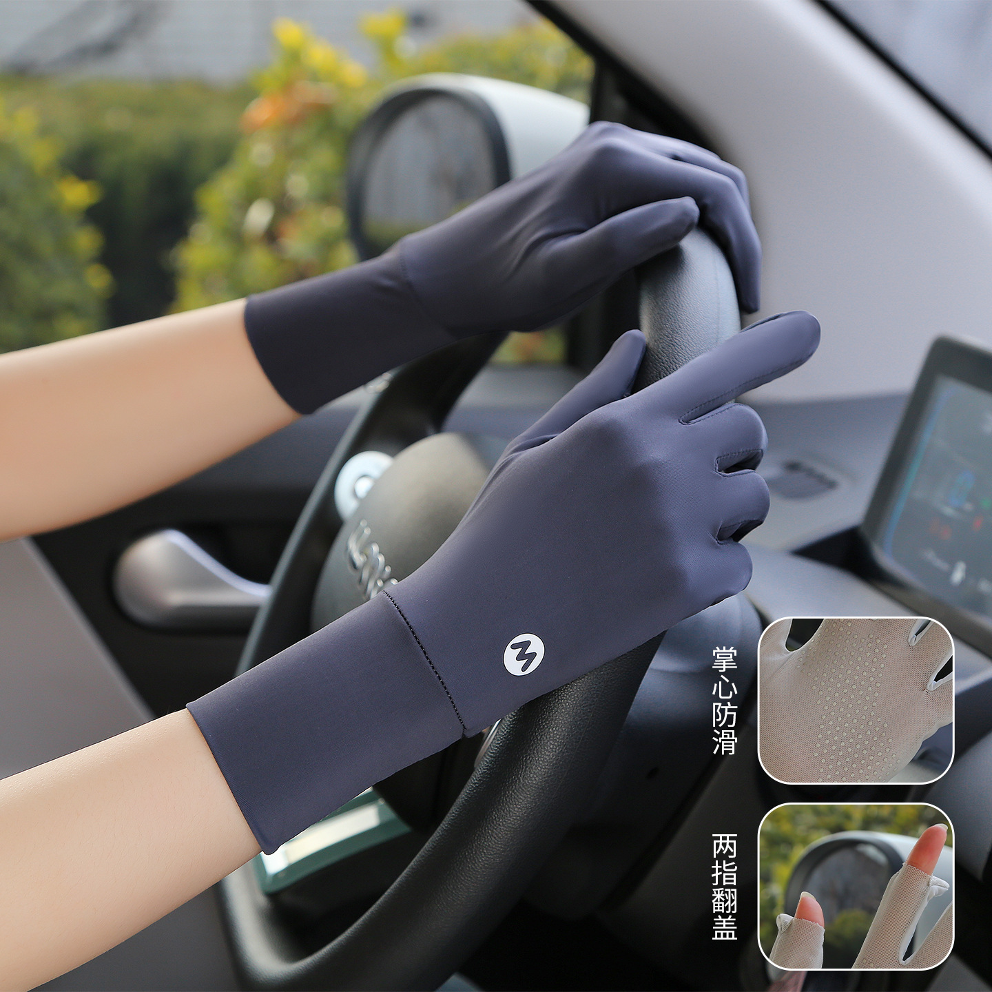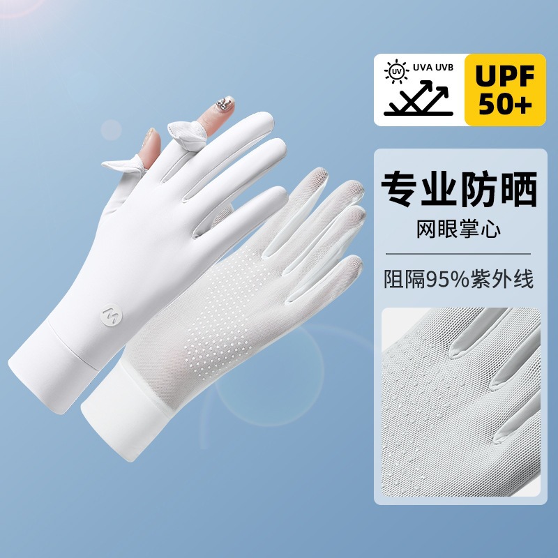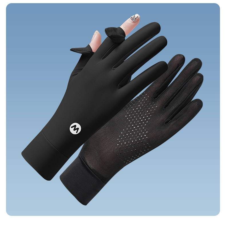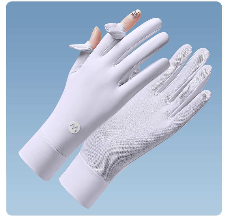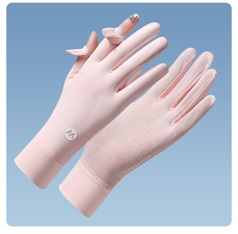여름 태양 보호 장갑 여성용 아이스 실크 라이딩 얇은 미끄럼 통기성 야외 안티 자외선 노출 손가락 여름 운전