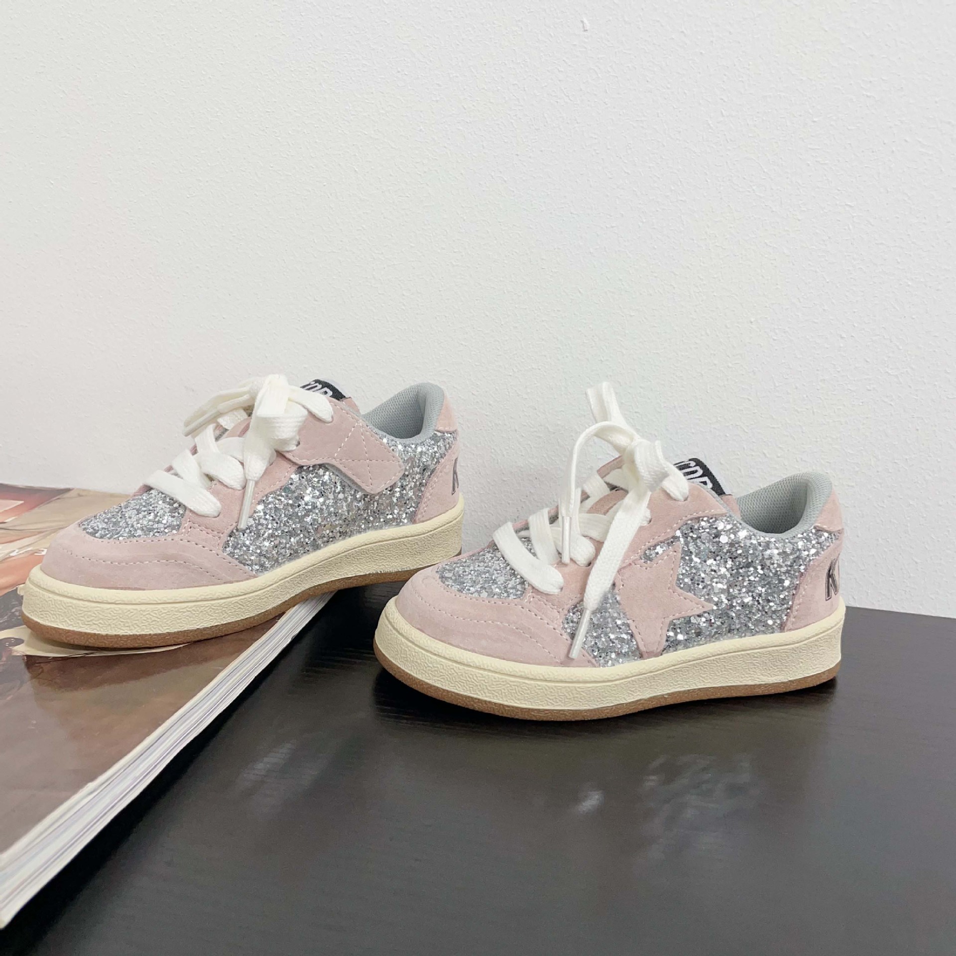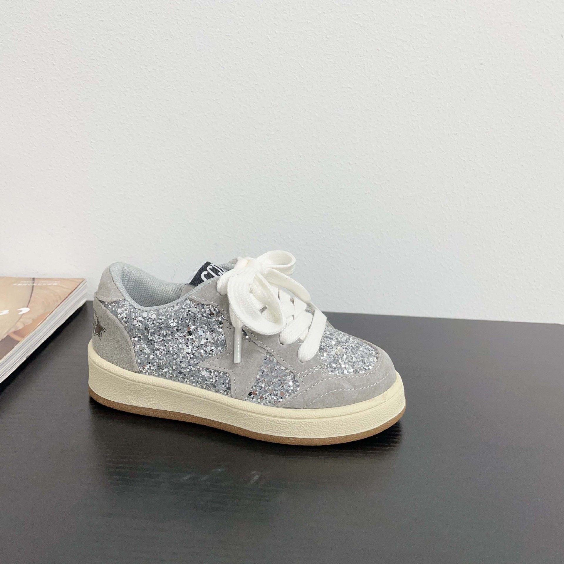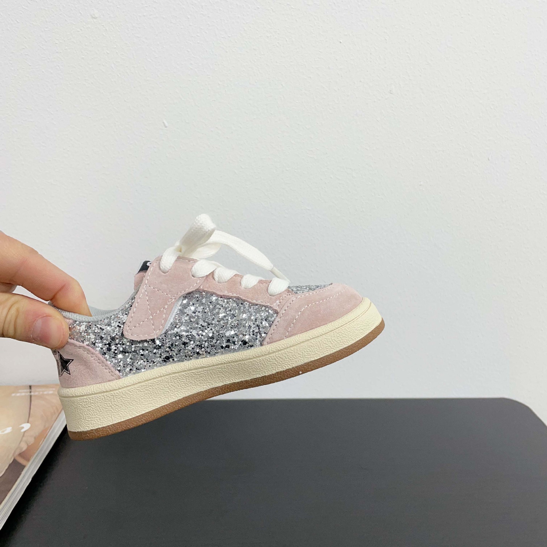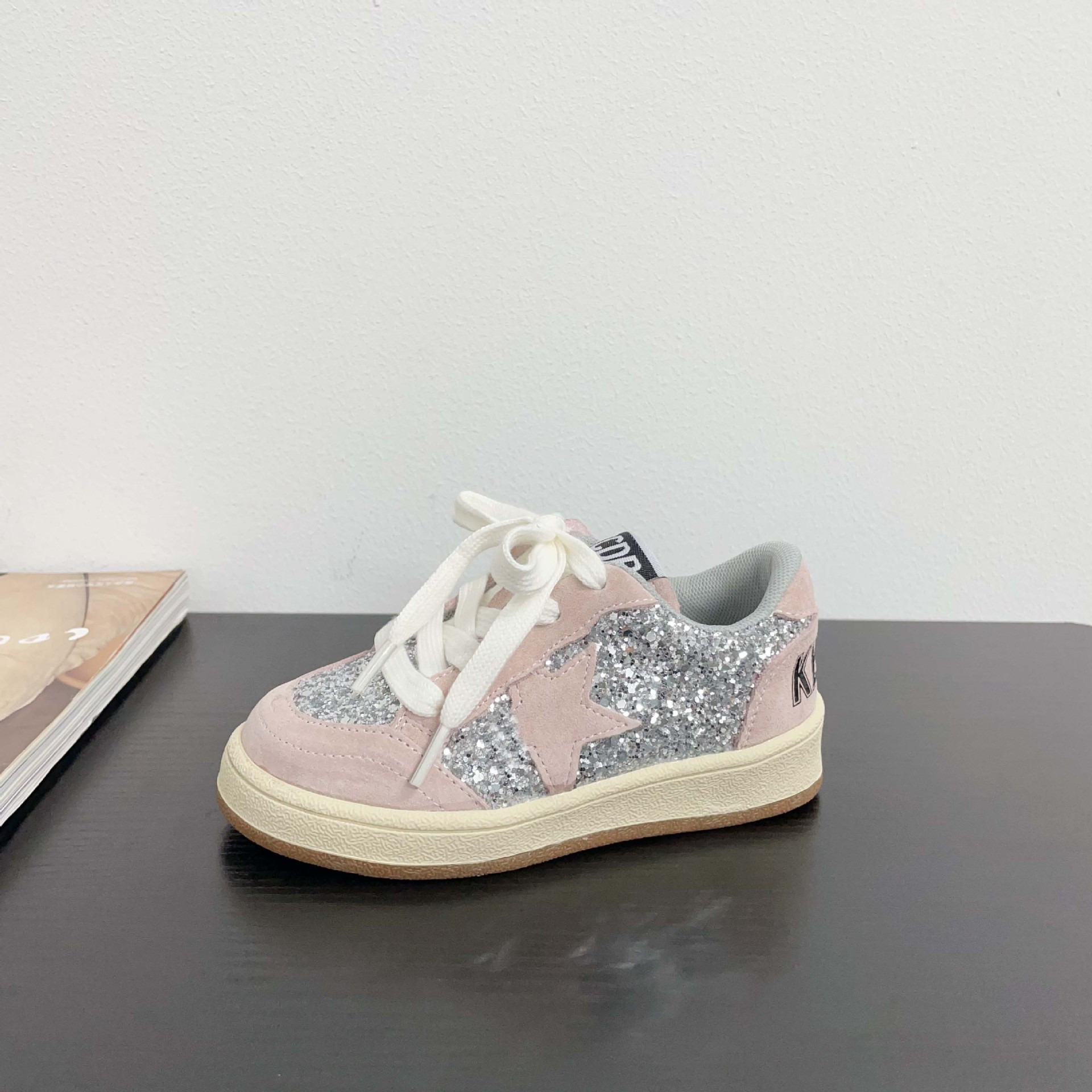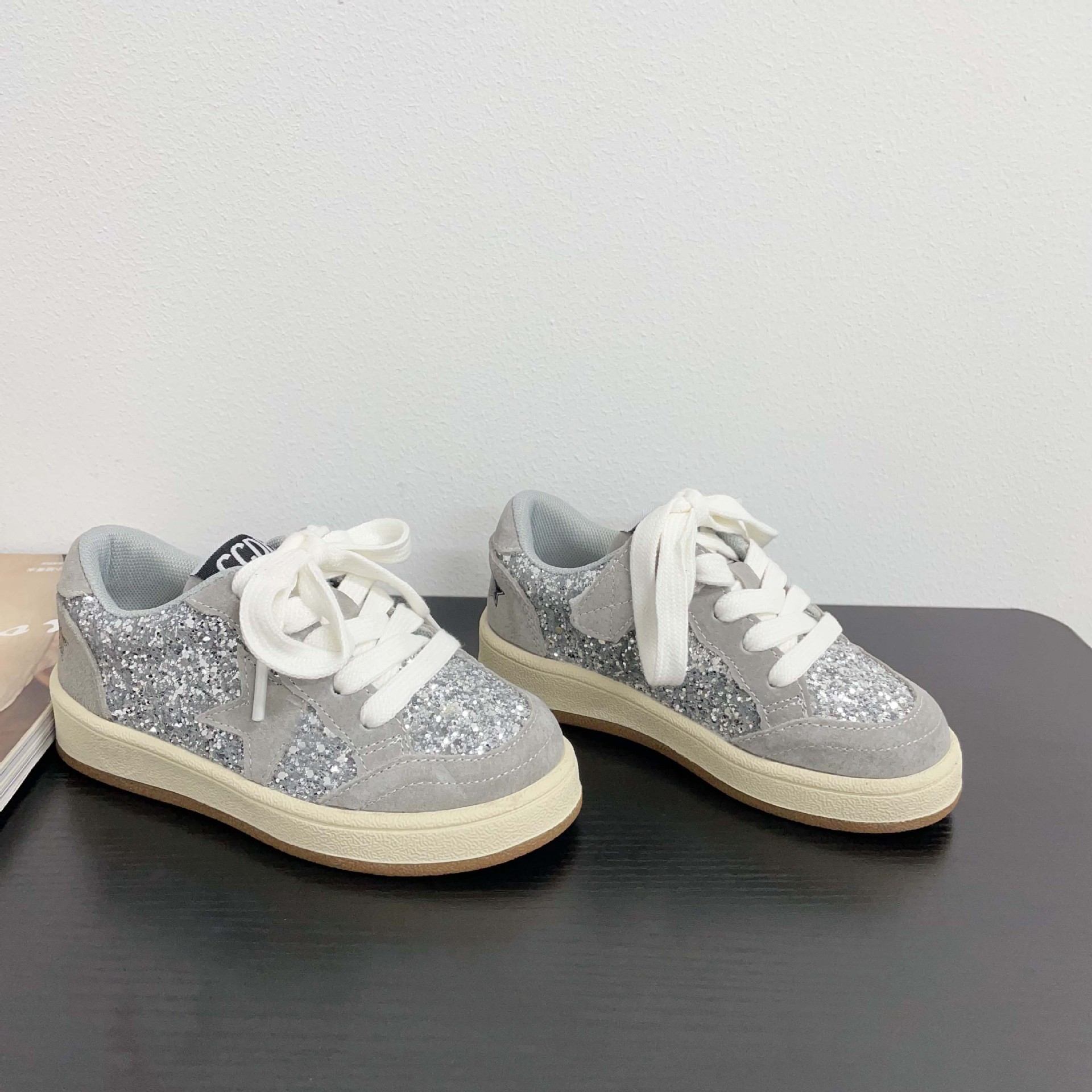 어린이 패션 올 매치 풀 슈즈 스퀸 장식 한 팬 펑 로우 탑 보드 슈즈 2025 봄 소년 소녀를위한 작은 싱글 슈즈
