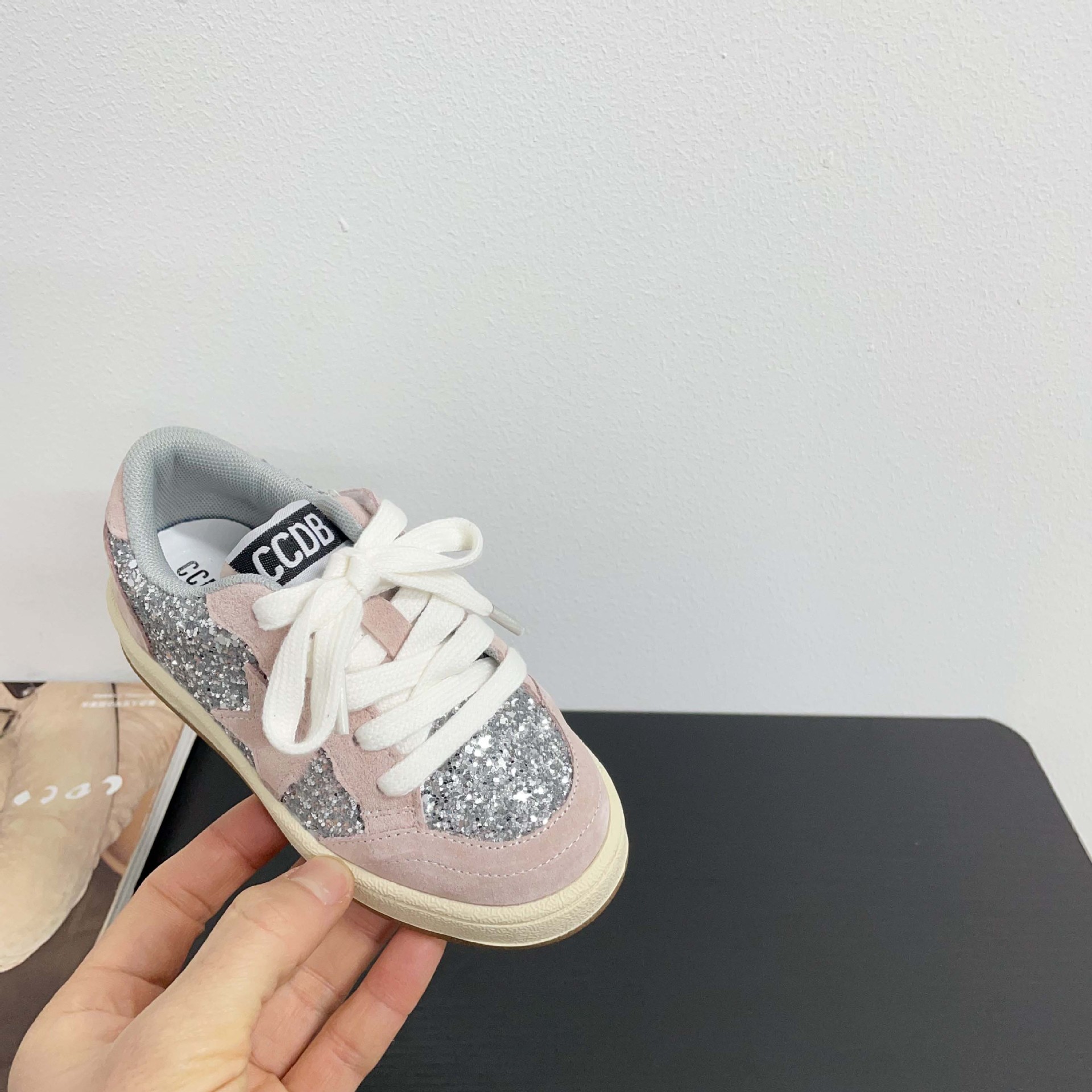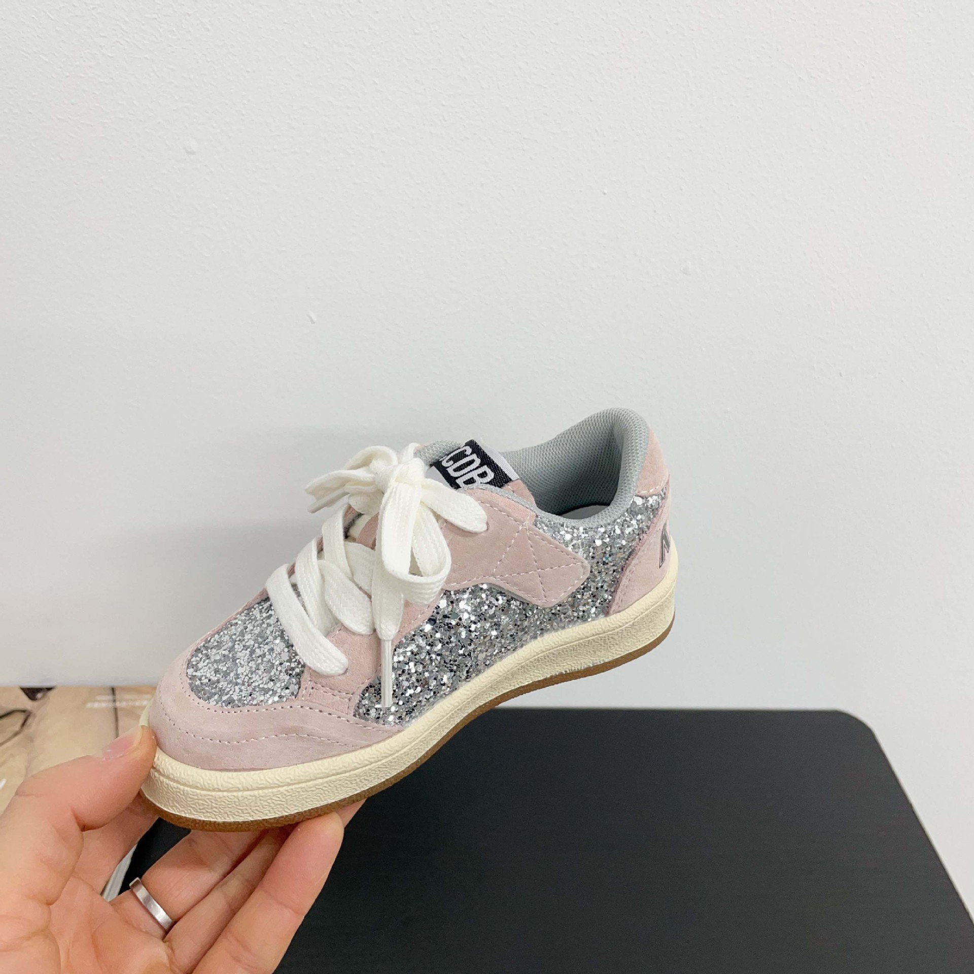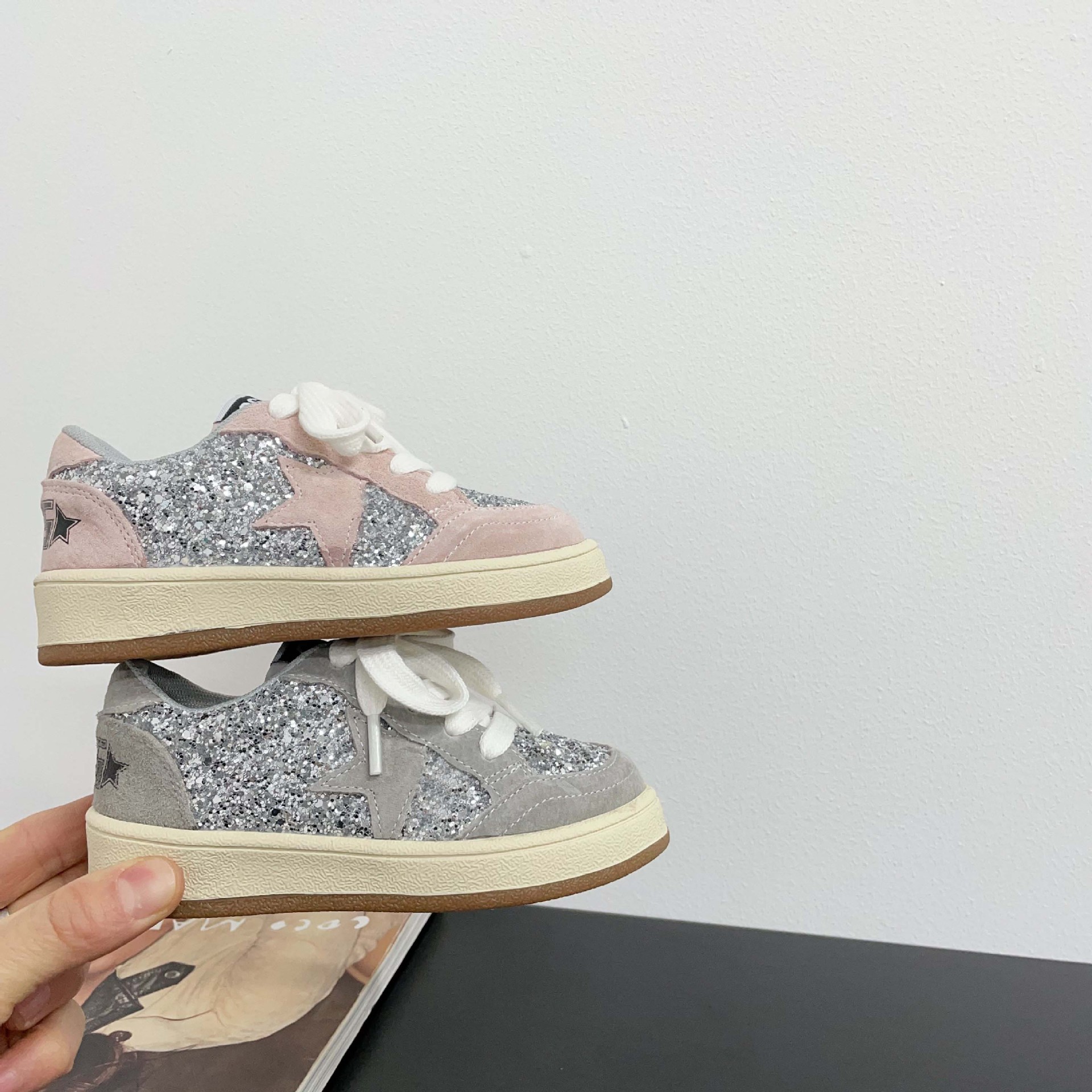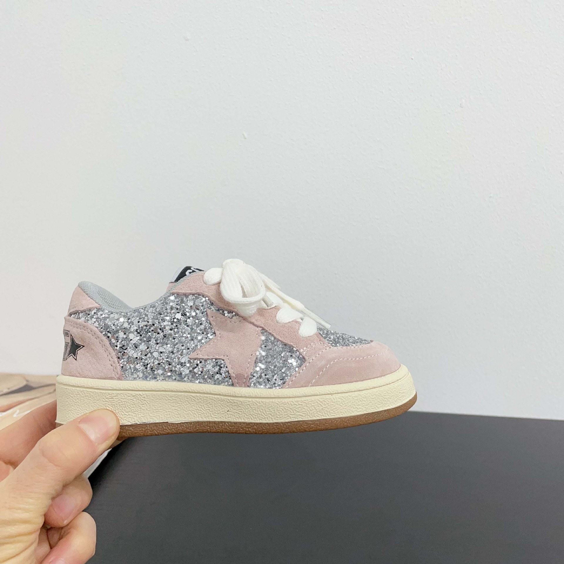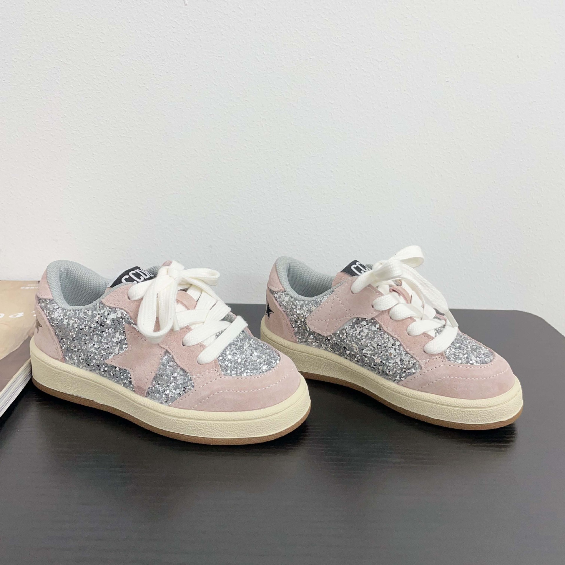 어린이 패션 올 매치 풀 슈즈 스퀸 장식 한 팬 펑 로우 탑 보드 슈즈 2025 봄 소년 소녀를위한 작은 싱글 슈즈