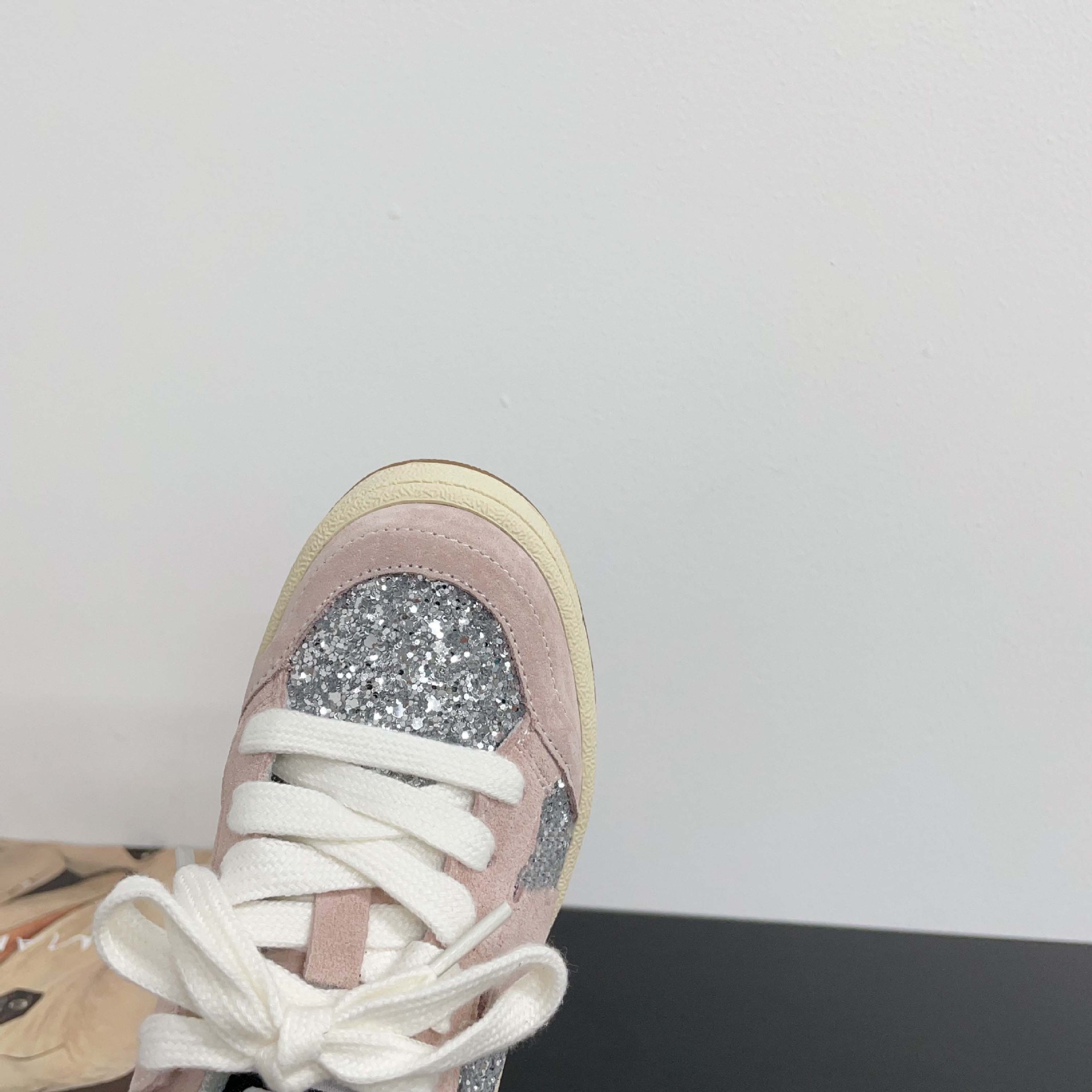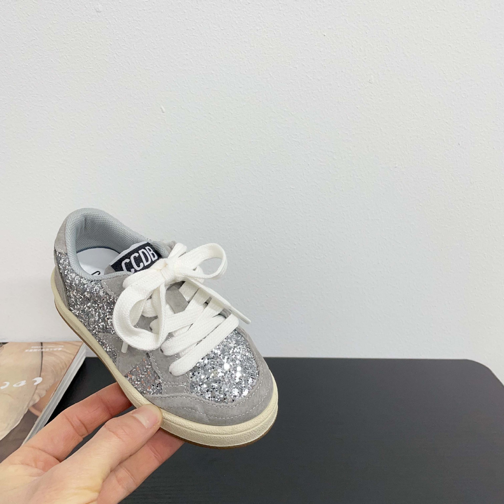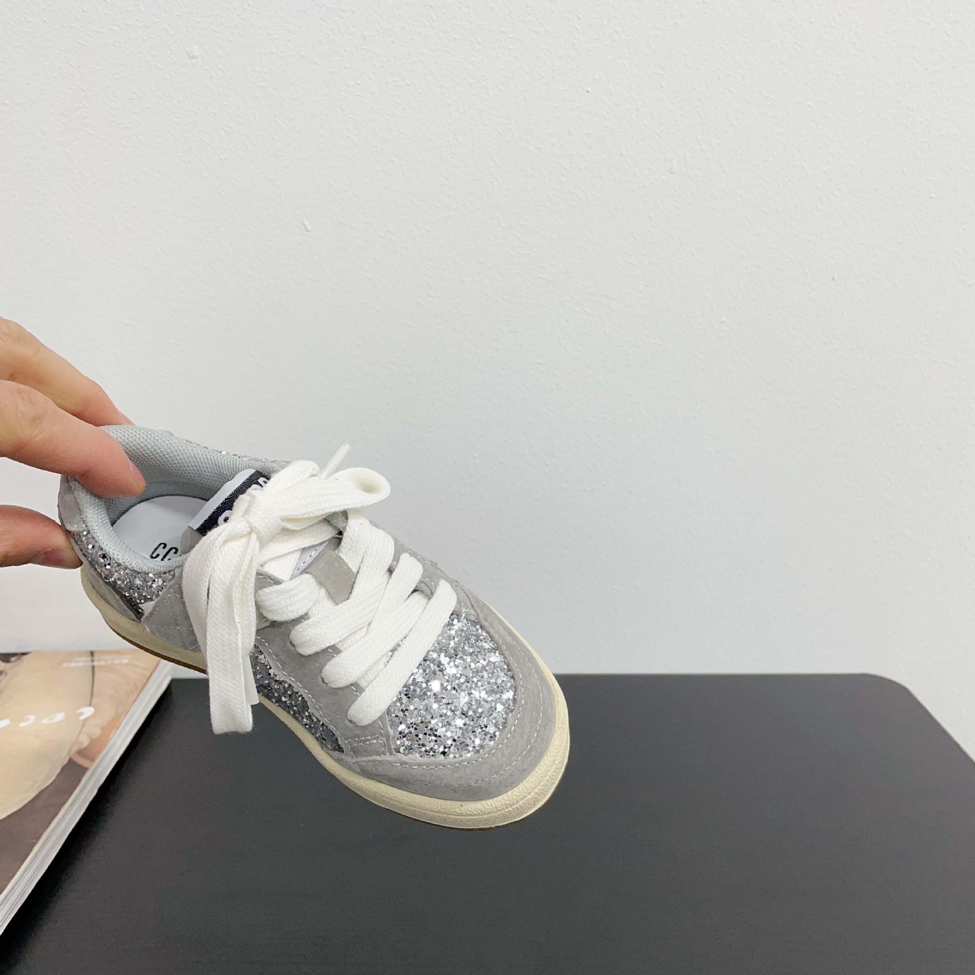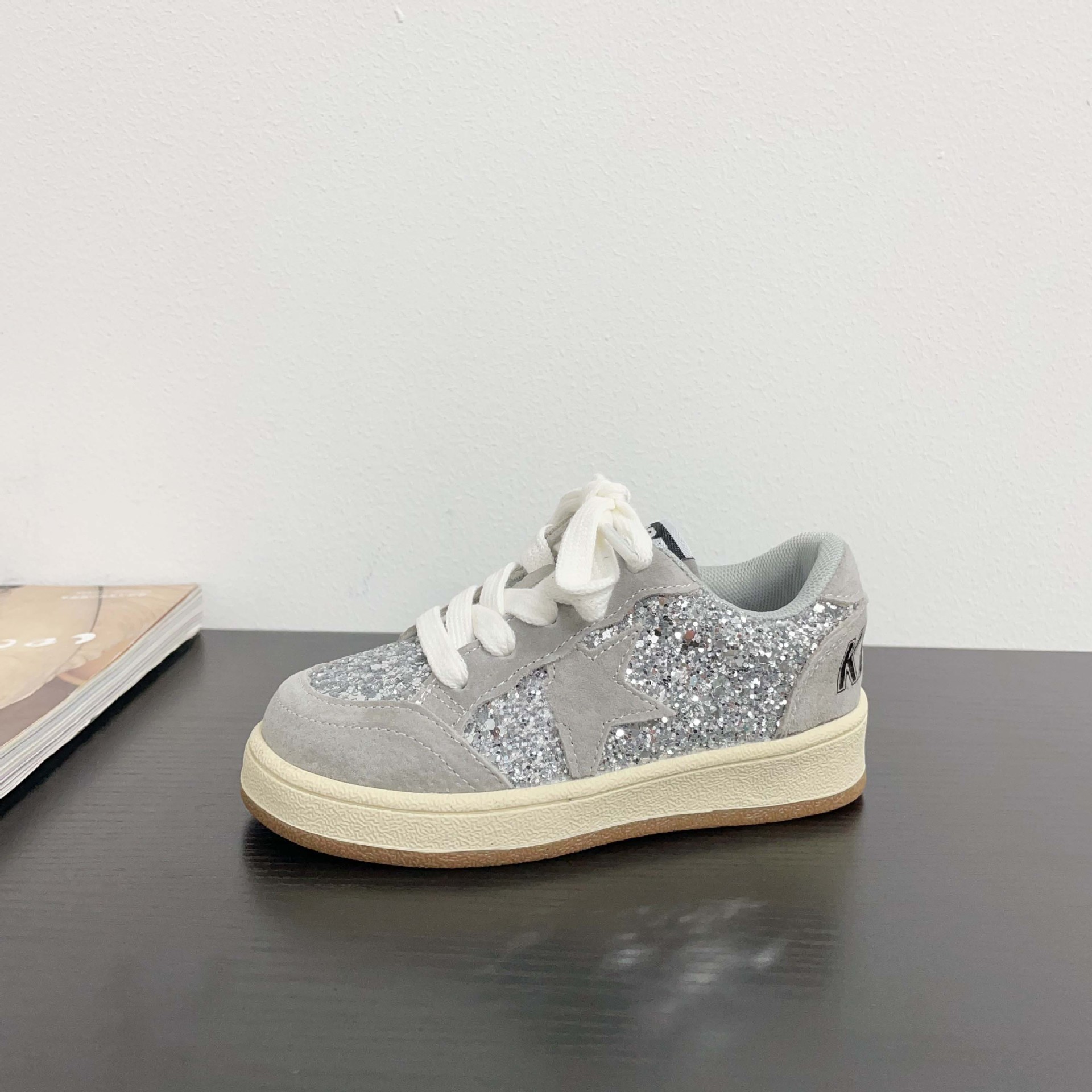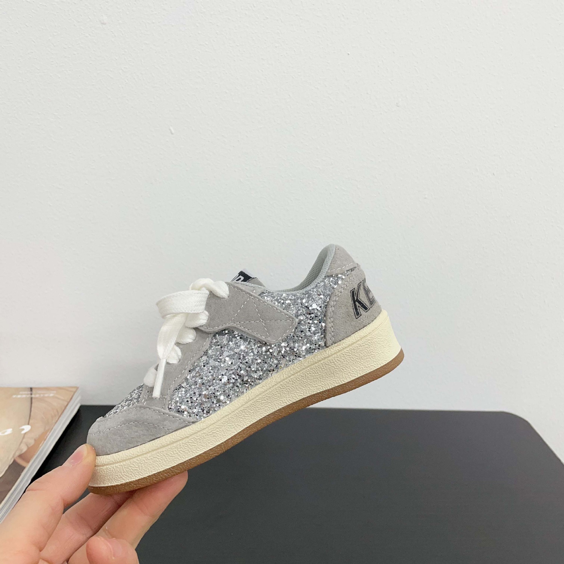 어린이 패션 올 매치 풀 슈즈 스퀸 장식 한 팬 펑 로우 탑 보드 슈즈 2025 봄 소년 소녀를위한 작은 싱글 슈즈스토어 가기