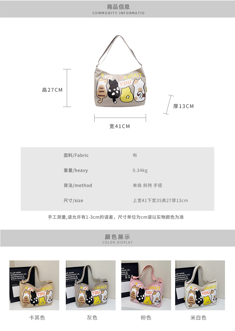 Ins 귀여운 인쇄 캔버스 가방 만화 고양이 카피 발라 소녀 심장 학생 보관 어깨 가방 트렌디스토어 가기
