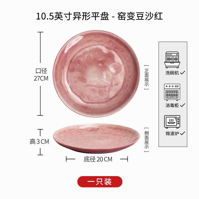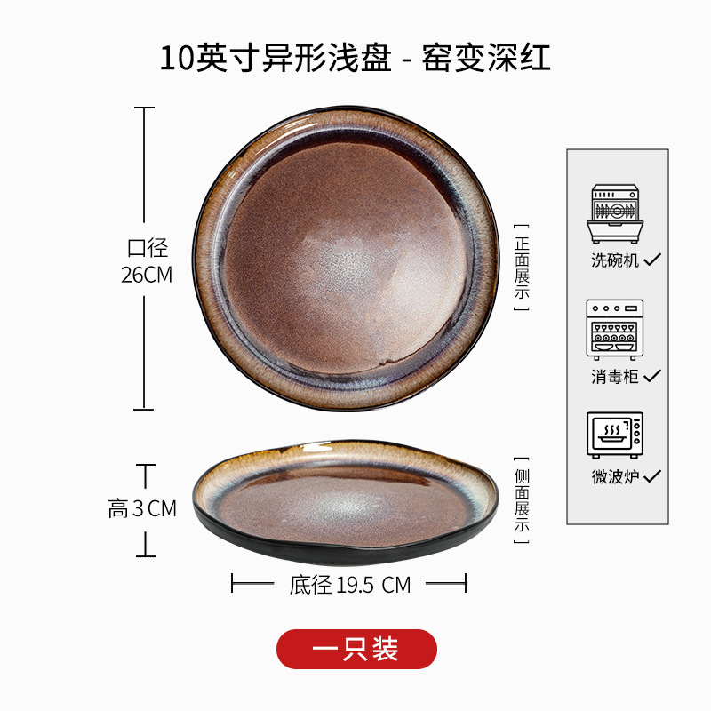 • D1D- 10inch 특수 모양의 얕은 판 - 가마가 진한 빨간색으로 변합니다.