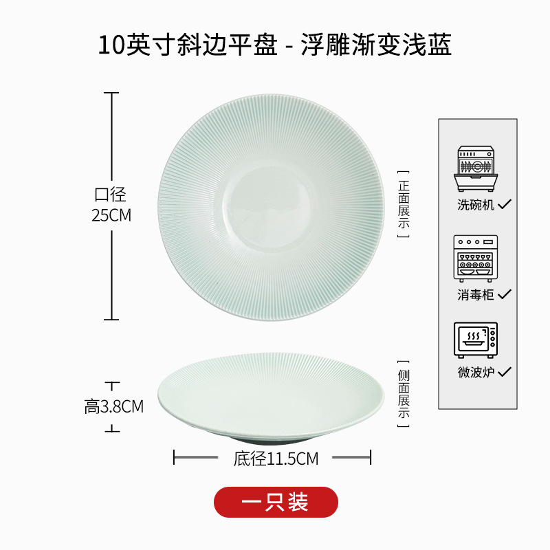 • 10inch 베벨 플랫 플레이트 - 엠보싱 그라데이션 라이트 블루